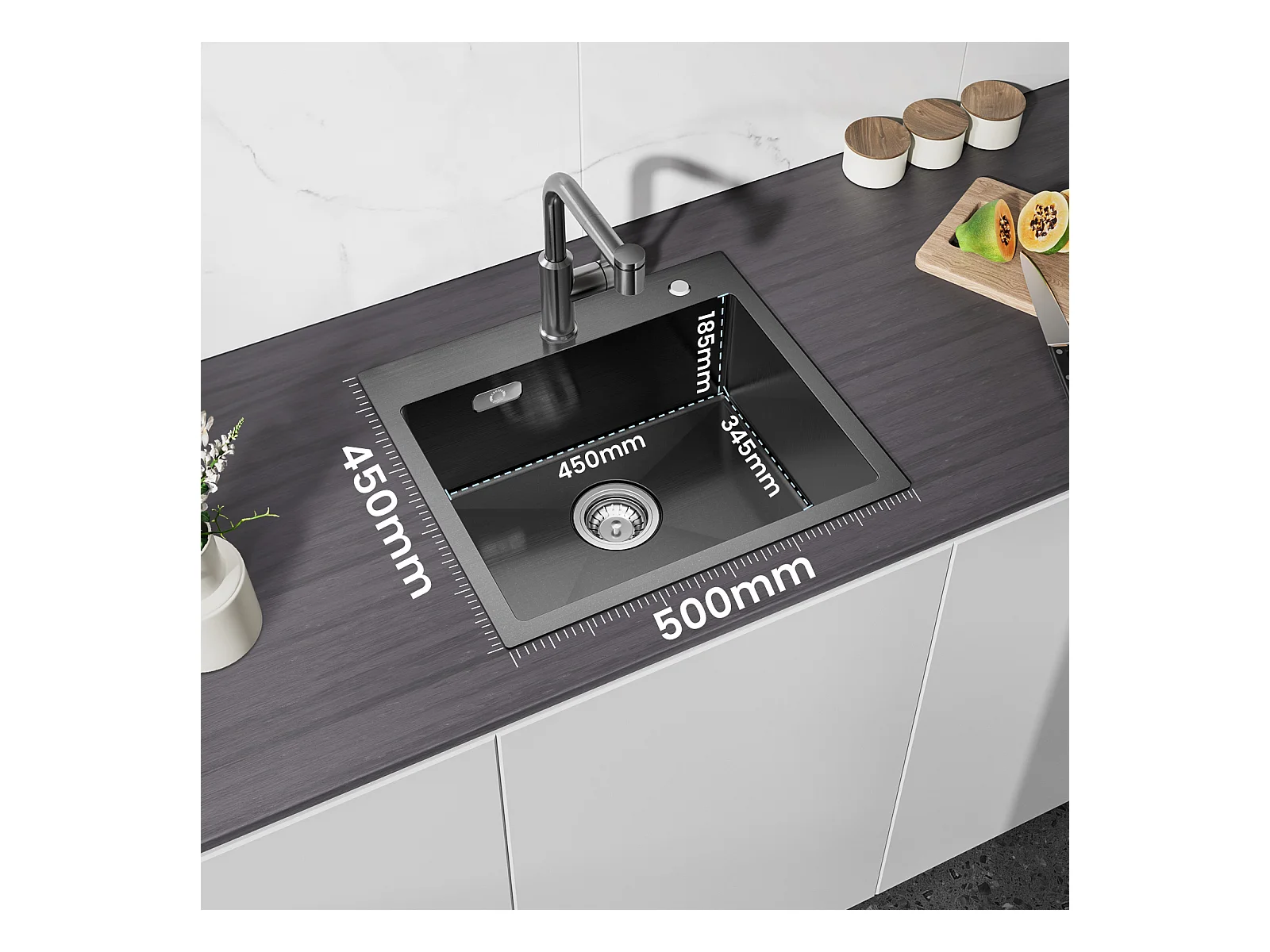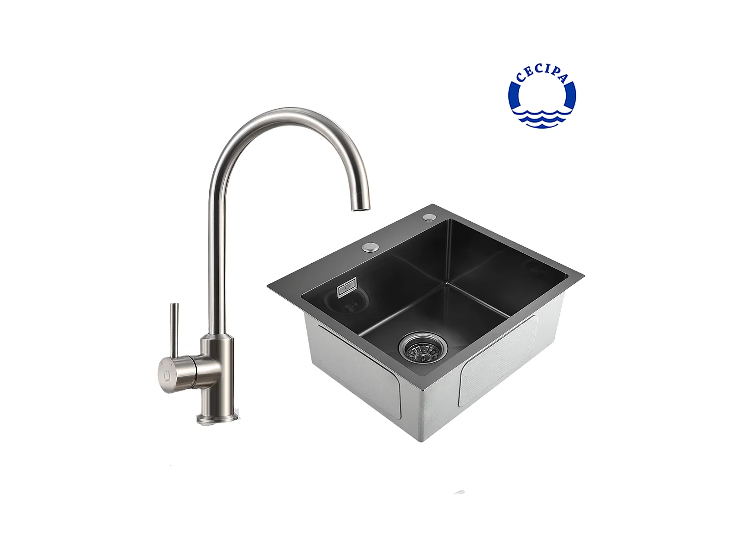 Cecipa max 2 in 1 Einzelspüle Schwarz Grau 50*45*18,5cm + Einhebel-Küchenarmatur, 360° Drehbar Chrom