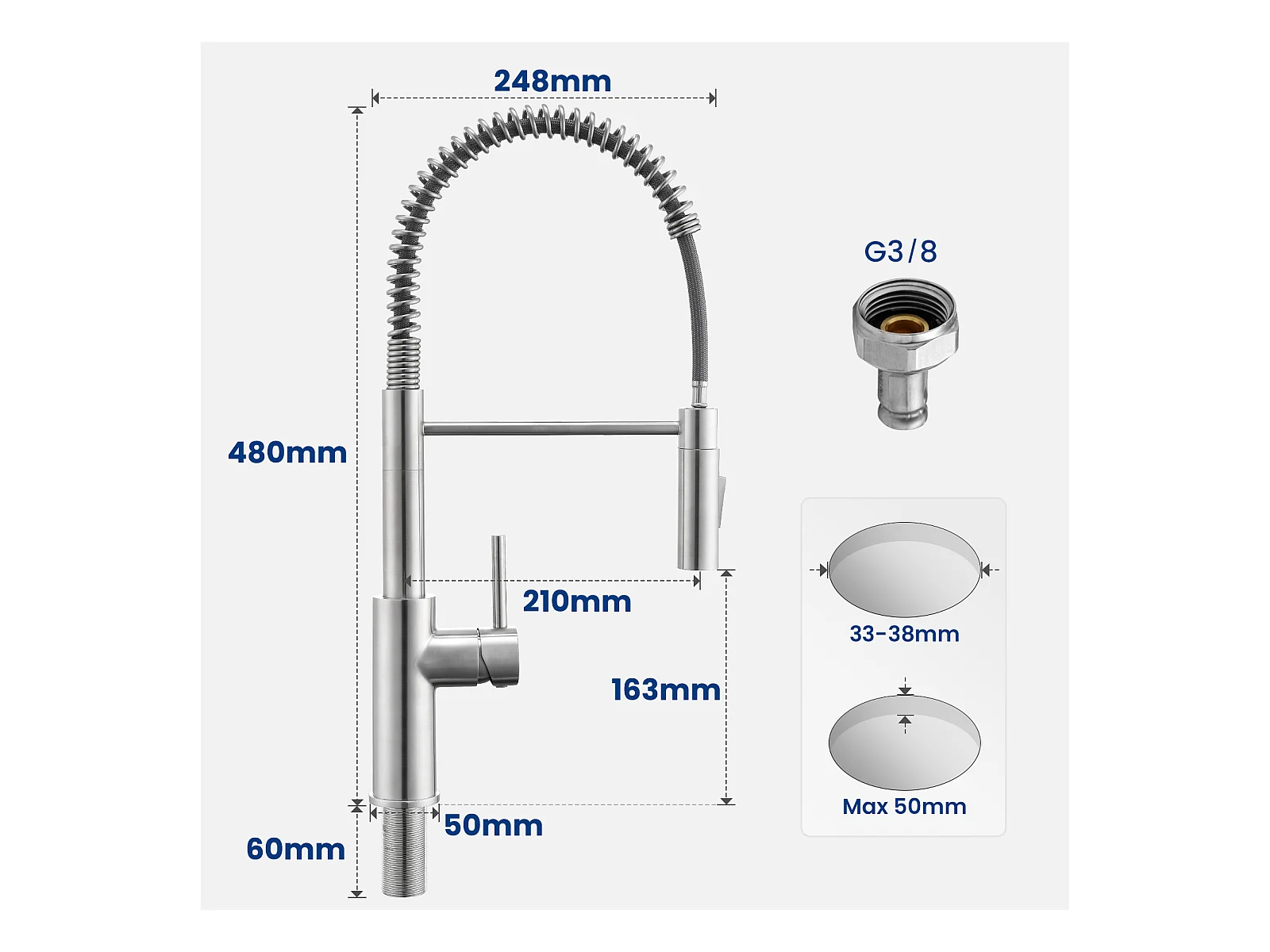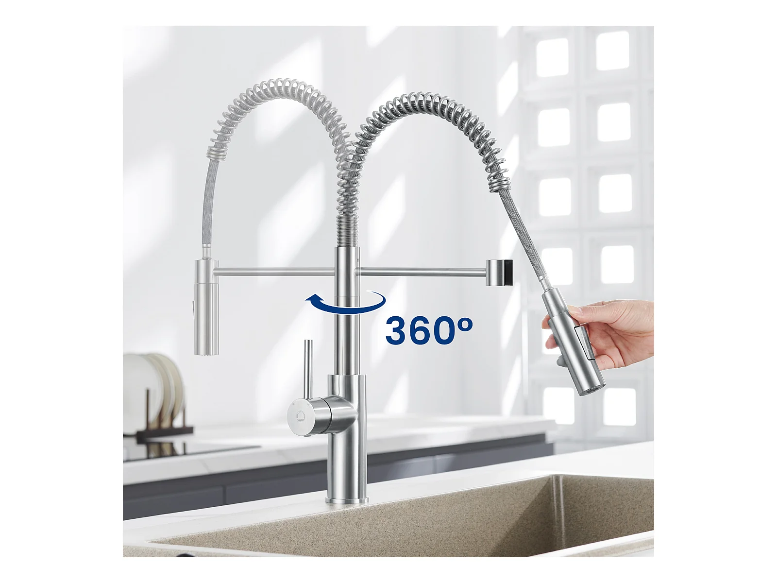 Cecipa max 78 x 45 cm, Einzelspüle mit Abtropffläche, Einbauspüle, Quarz- und Kunstharz, Schwarz + gebürstete Feder, Küchenmischbatterie mit ausziehbarer Brause