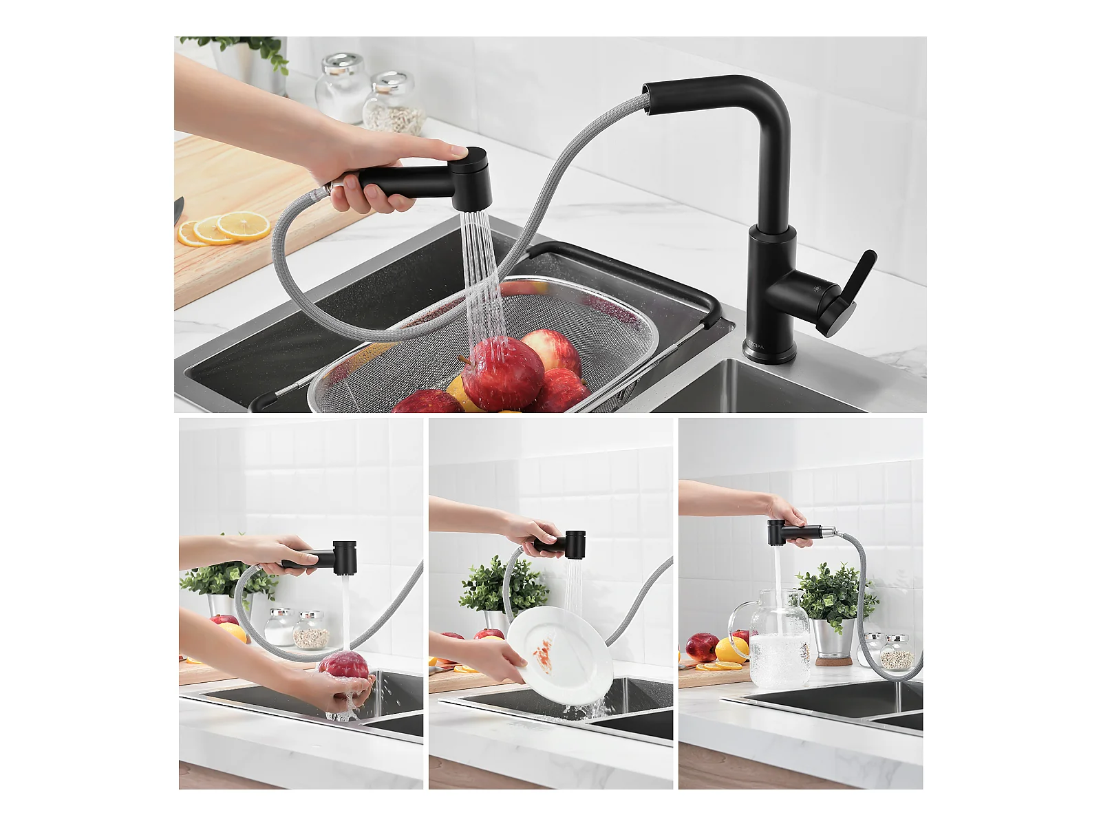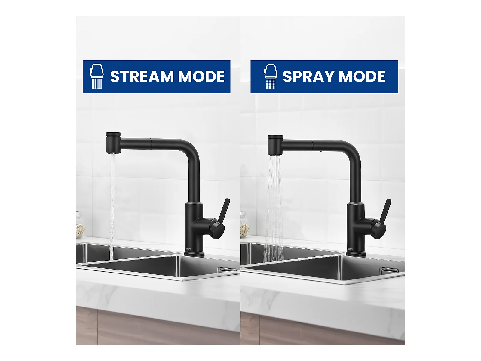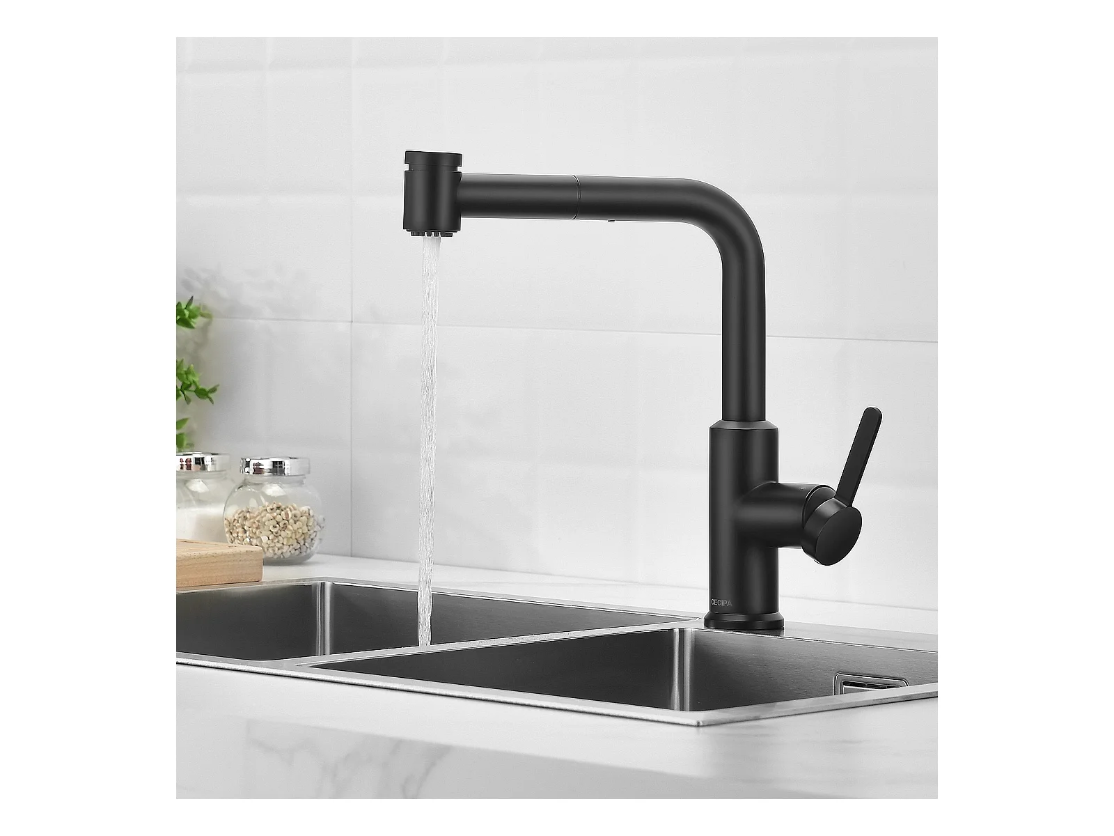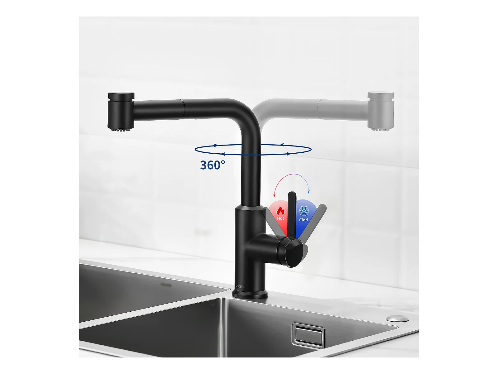 Cecipa max Ausziehbarer Küchenmischhahn - 2-Strahl 360 Grad drehbarer Küchenhahn - Spültischarmatur mit schwarzem Sprüher, EU-Modell