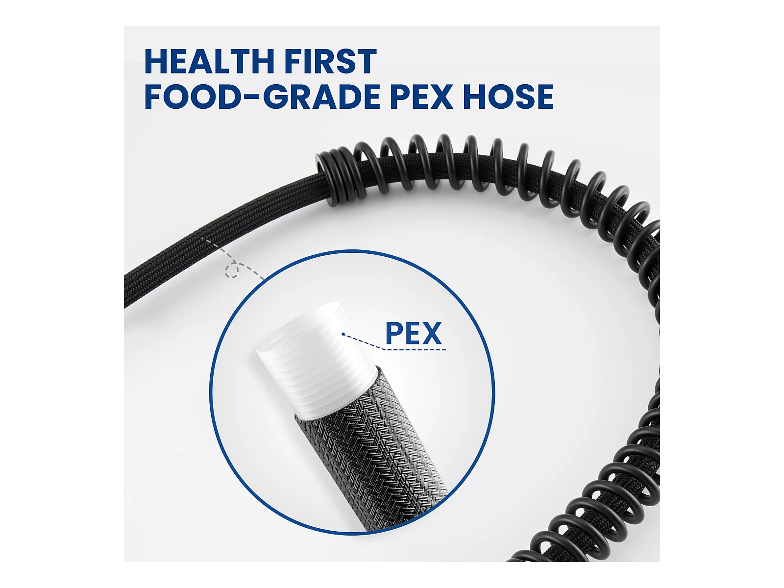 Cecipa max Schwarzer Feder-Küchenhahn mit ausziehbarer Brause, 360° drehbarer Spültischhahn, Federmischbatterie mit 2 Funktionen, EU-Modell