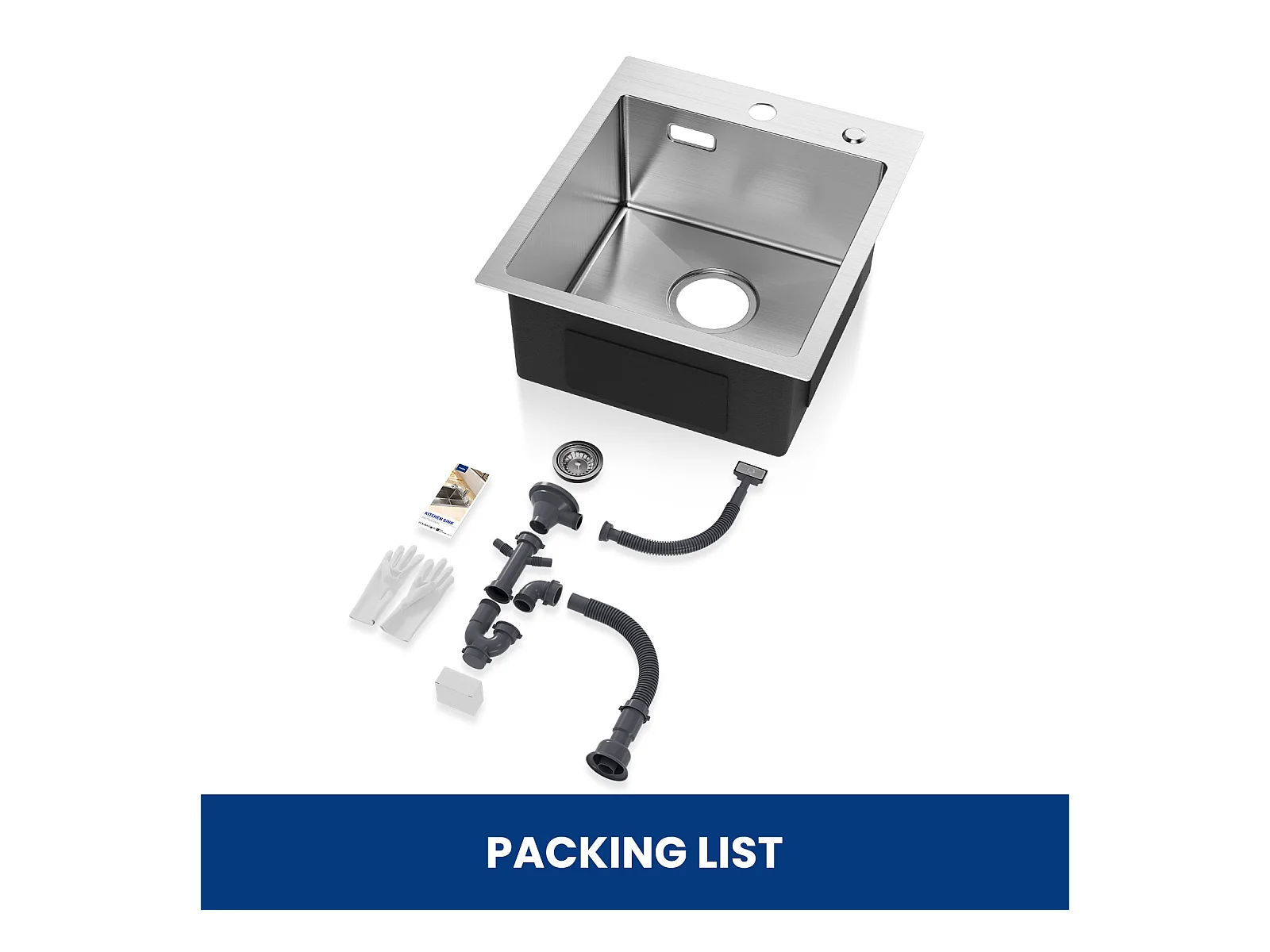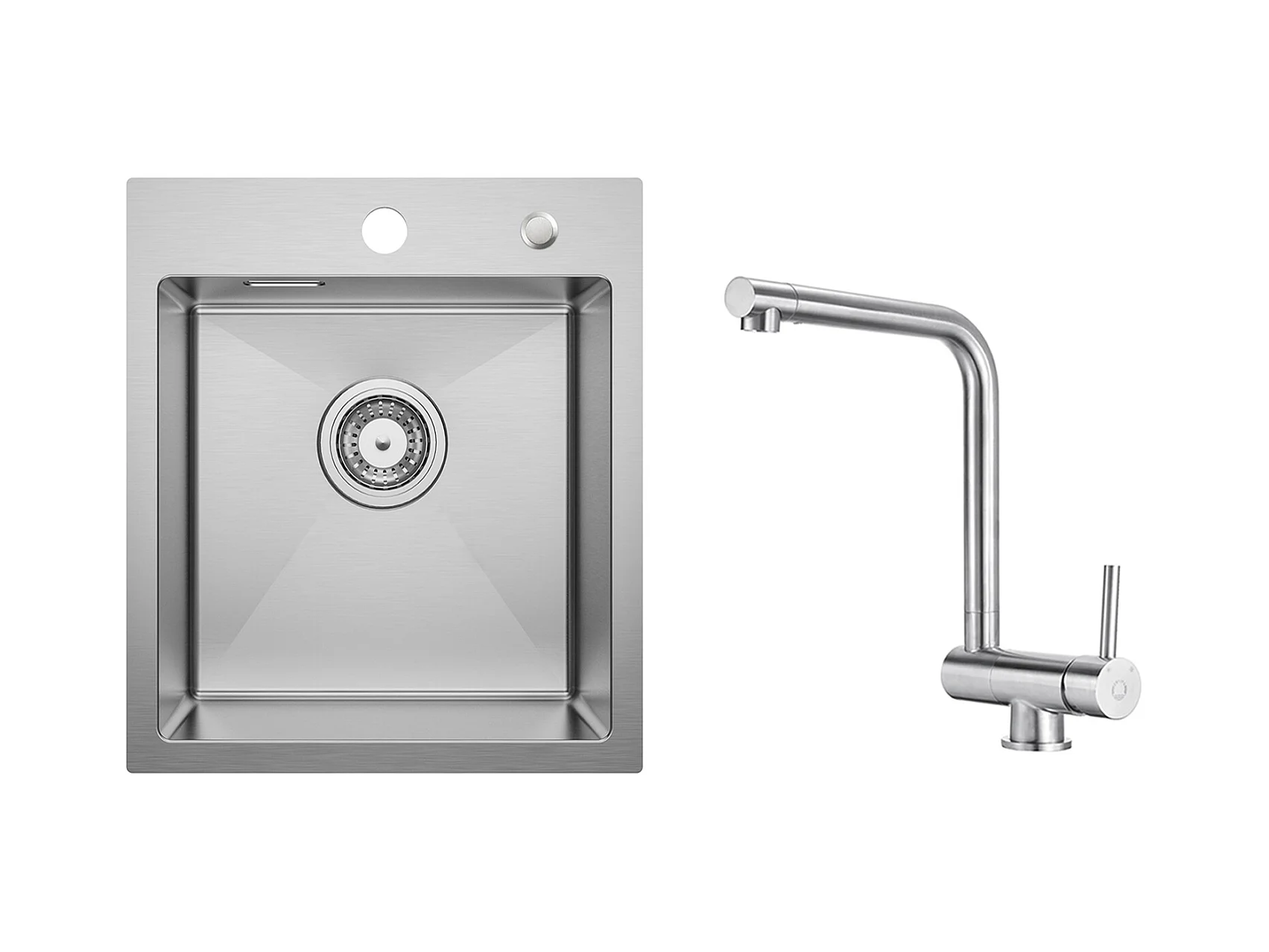 Cecipa MAX Einzelbecken Küchenspüle 40×45 cm Spüle aus gebürstetem Edelstahl + gebürstete klappbare Küchenmischbatterie