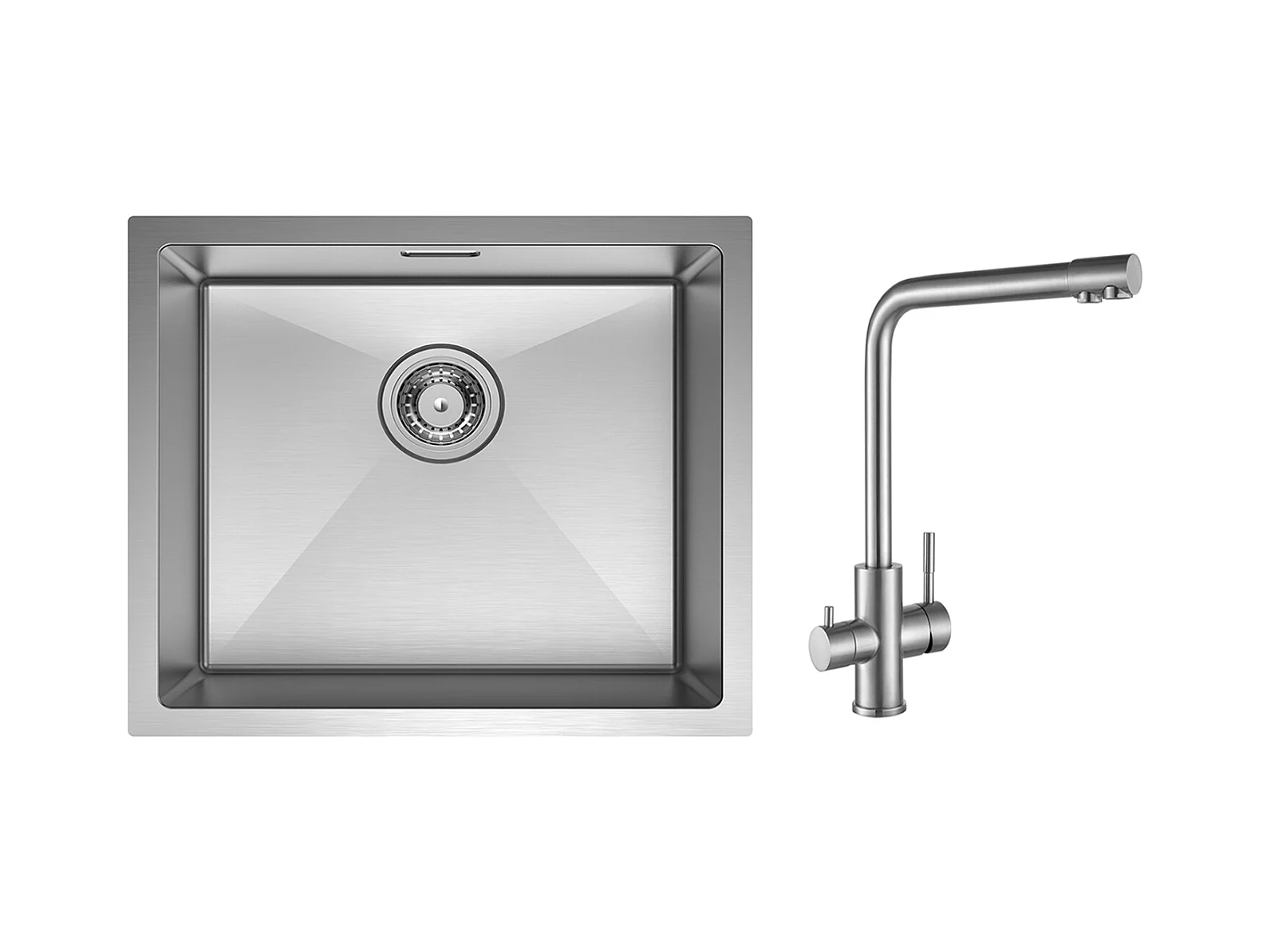 CECIPA MAX Einzelbecken Küchenspüle gebürstet Edelstahlspüle 50*44CM + Küchenmixer für Osmoseanlage