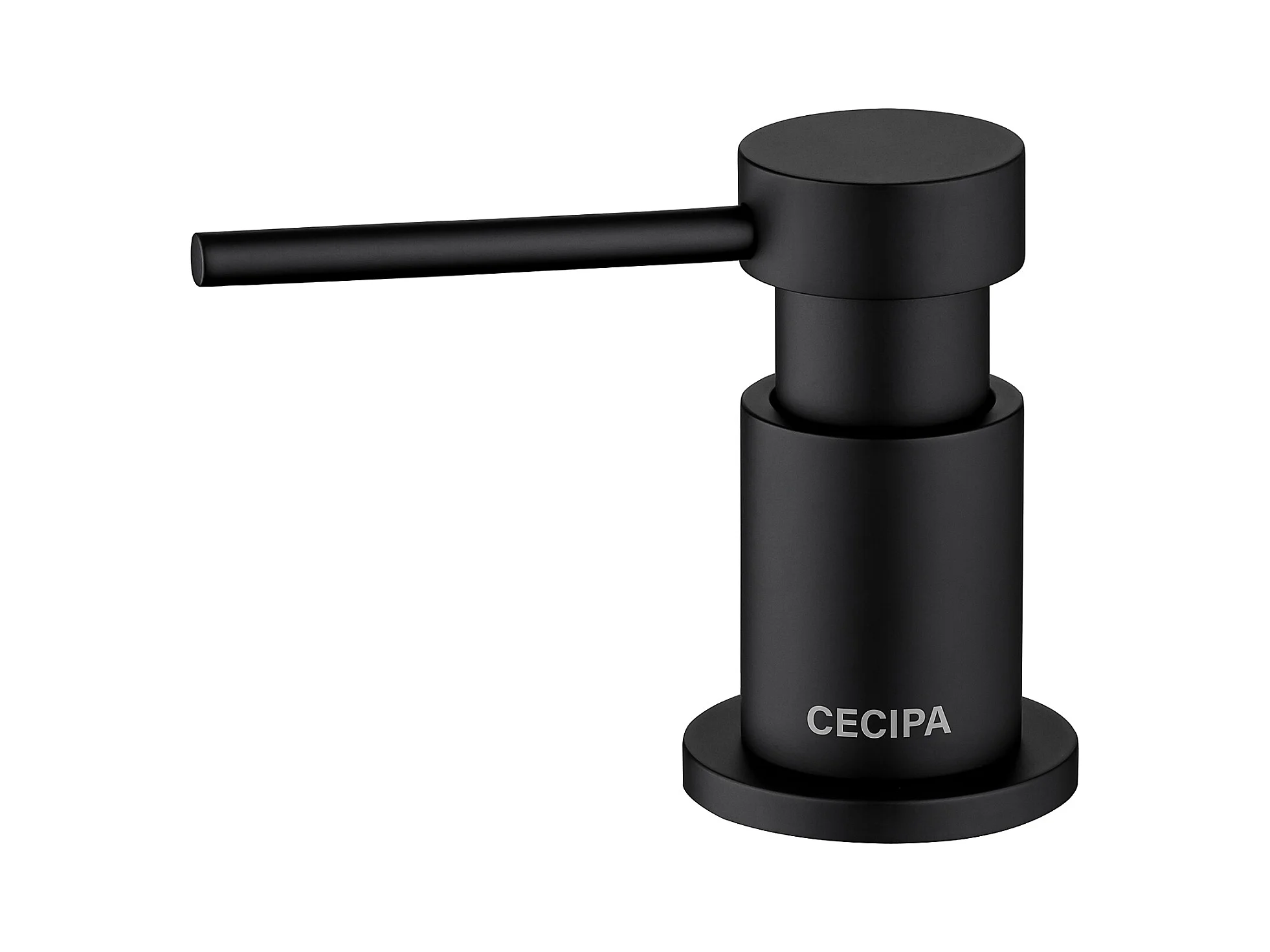Cecipa MAX Küchenseifenspender mit 300-ml-Behälter + 1,25 m Silikon-Verlängerungsschlauch – schwarzer Seifenspender für die Spüle