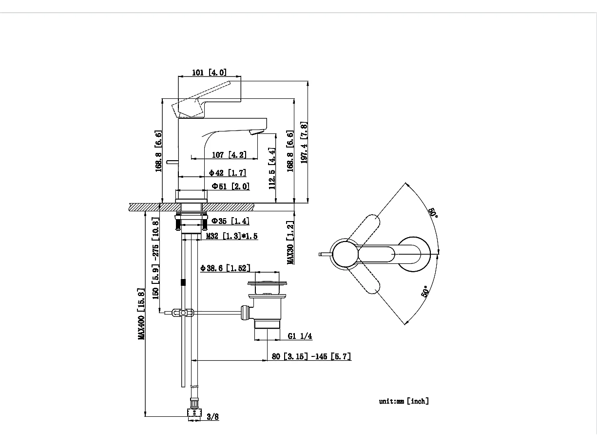 Cecipa max Waschtisch-Mischbatterie mit Zugstangen-Ablaufgarnitur, Badezimmer-Wasserhahn mit Ablaufhebel, normaler Wasserhahn, Schwarz, EU-Modell