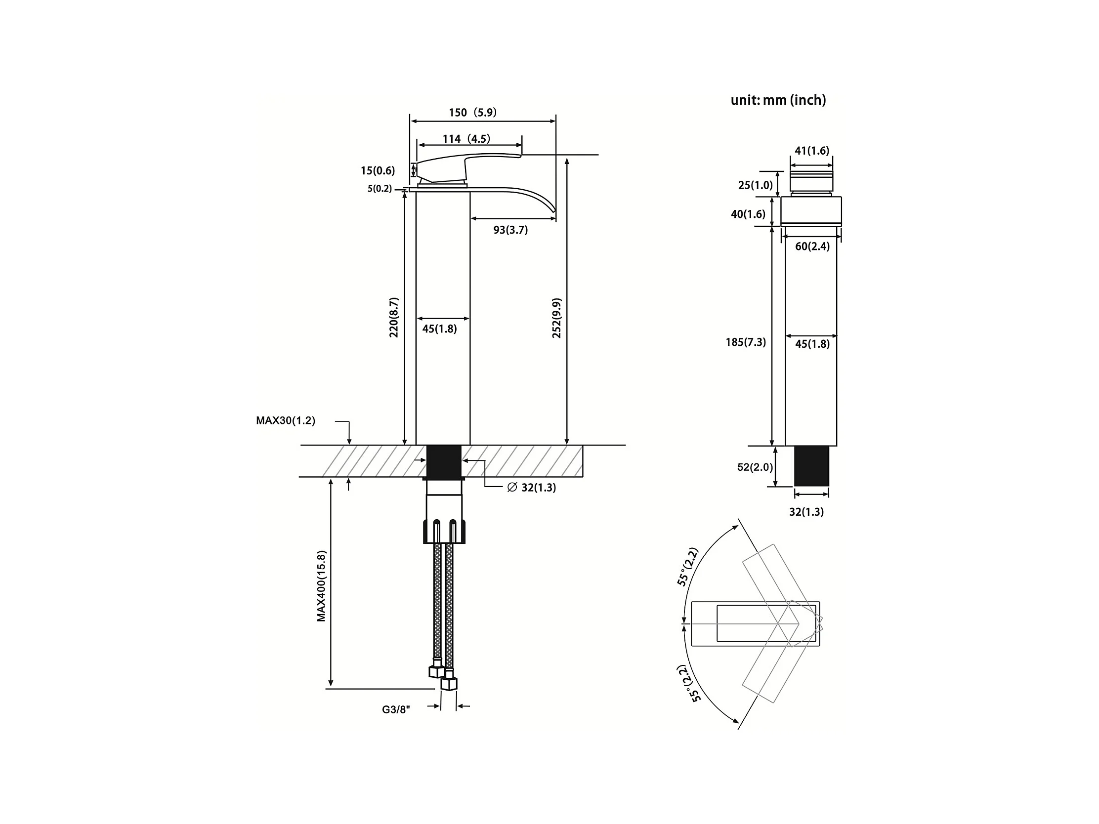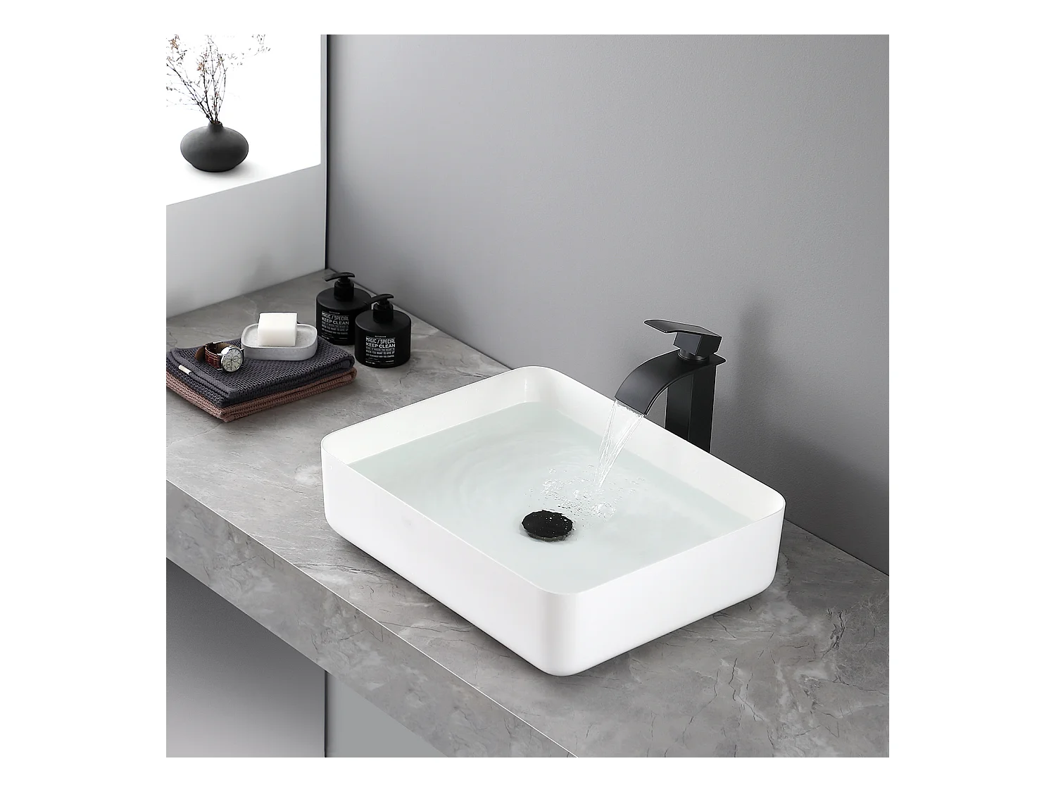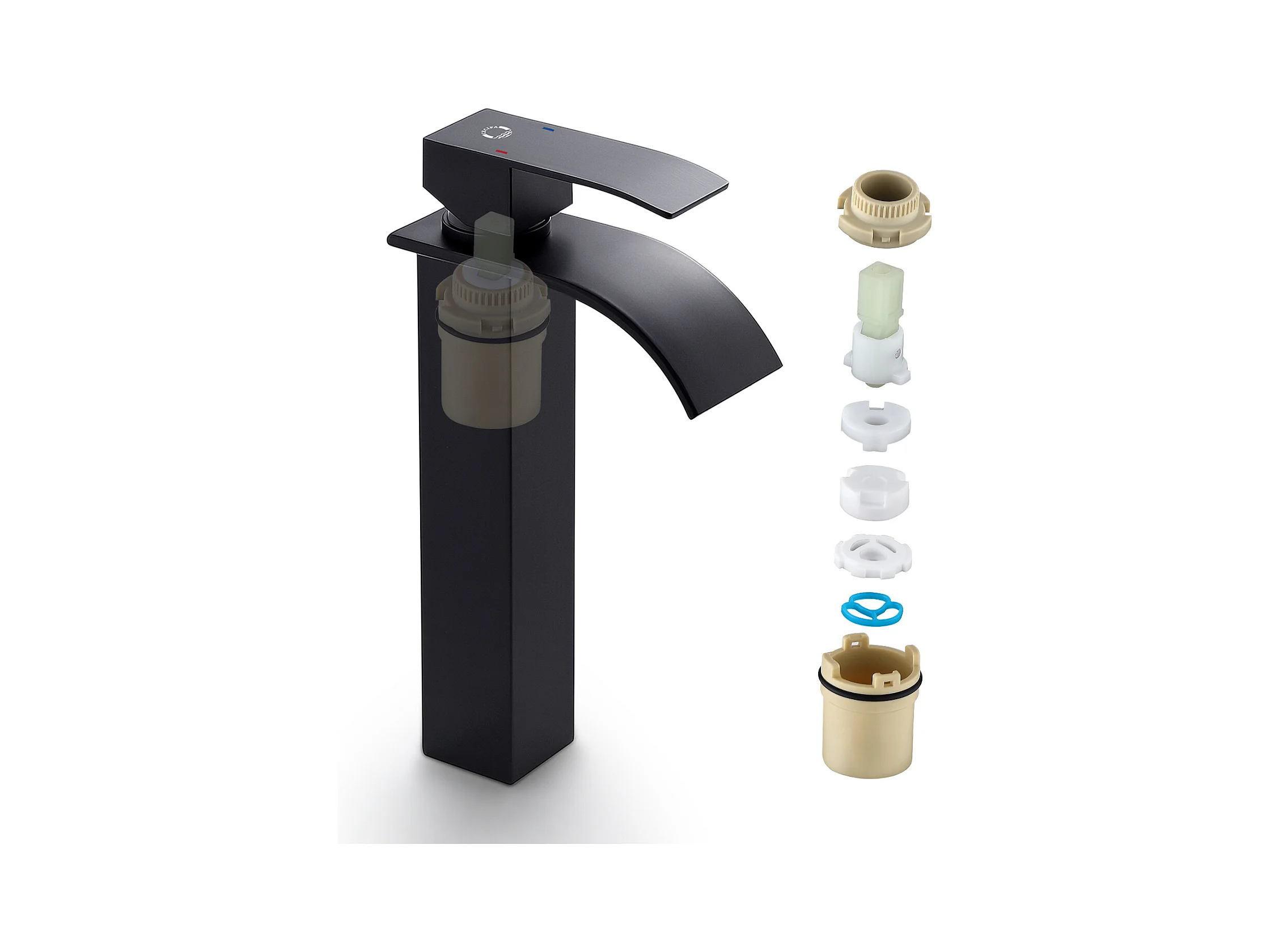 Cecipa max Wasserfall-Wasserhahn mit hohem Auslauf, Einloch-Waschtisch-Mischbatterie, Einhebel-Handwaschbecken-Wasserhahn aus Kupfer, EU-Modell