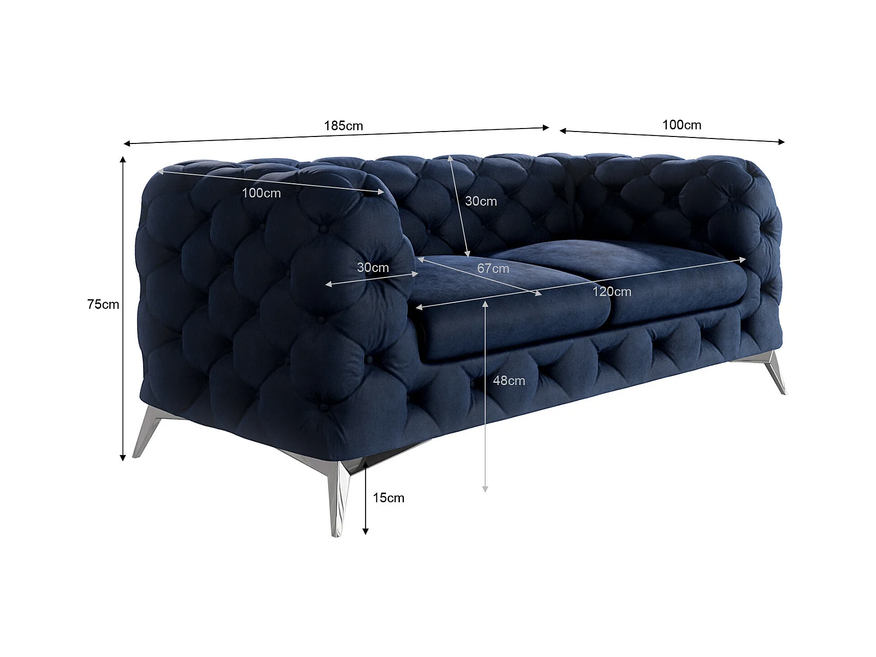 Celeste 2-Sitzer Chesterfield Sofa mit Silber Metall Füßen