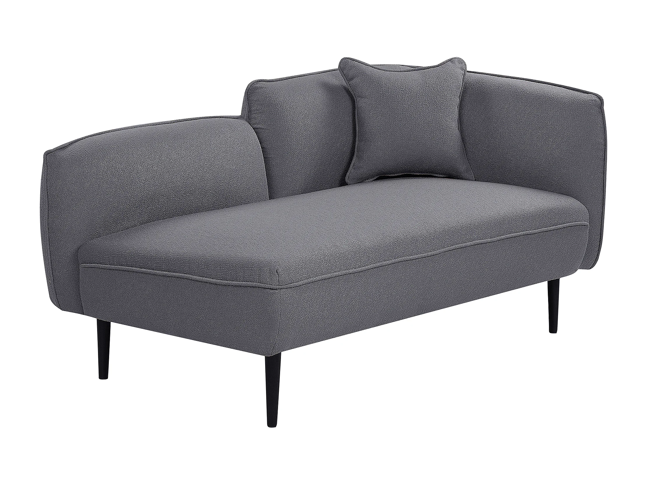 Chaiselongue Bouclé grau rechtsseitig mit Kissen Metallgestell modern Chevannes