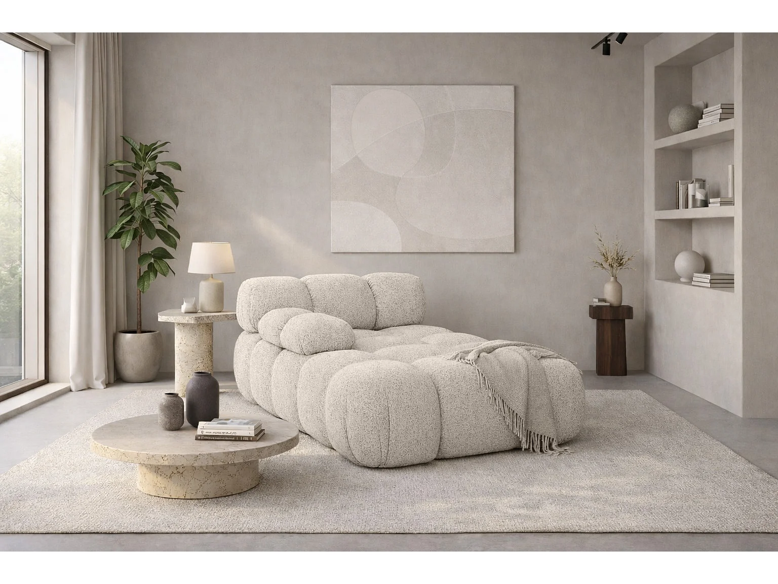Chaiselongue modular, Bouclé-Stoff Abriamo, Beige, Links, Selia