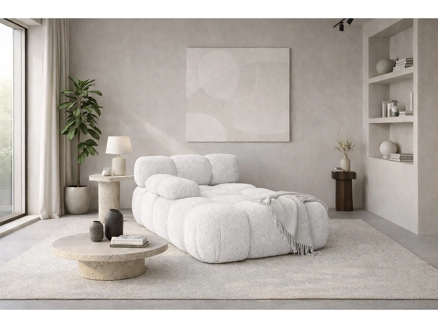 Chaiselongue modular, Bouclé-Stoff Abriamo, Ecru, Links, Selia