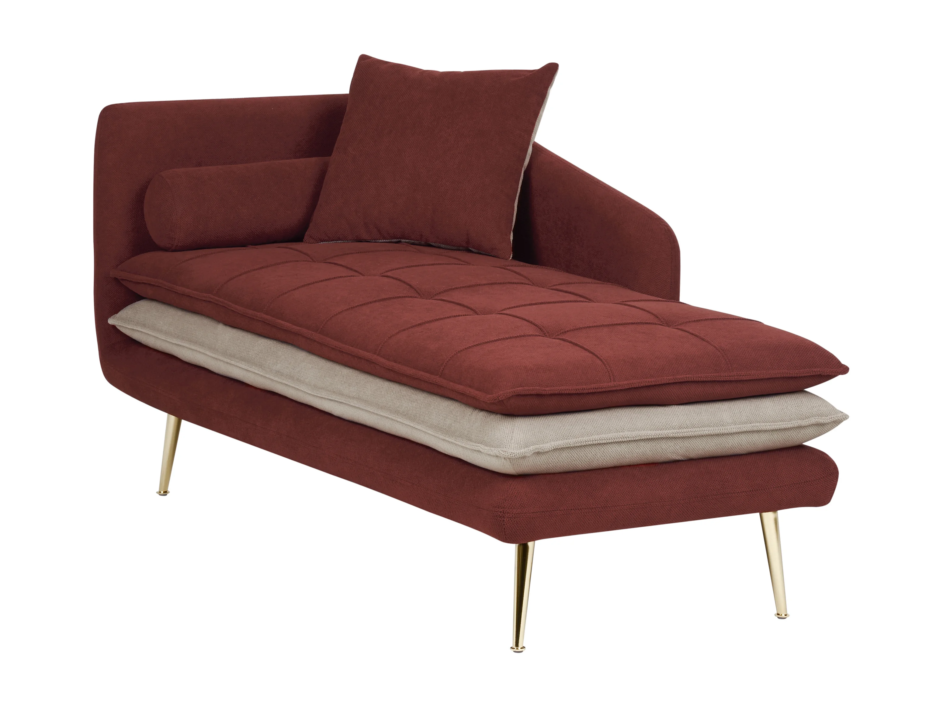Ré­ca­mi­e­re Stoffbezug rot und beige mit goldenen Beinen linksseitig Gonesse