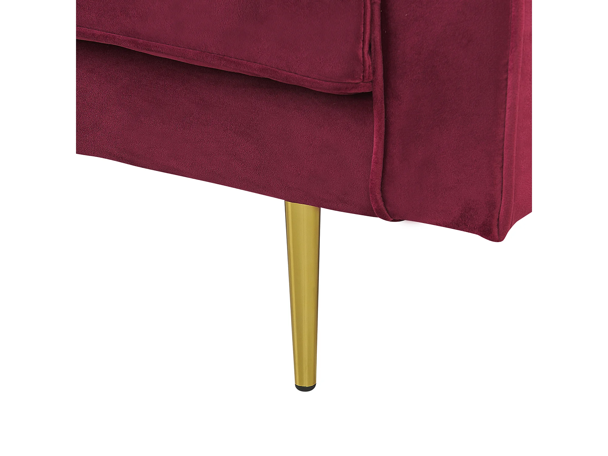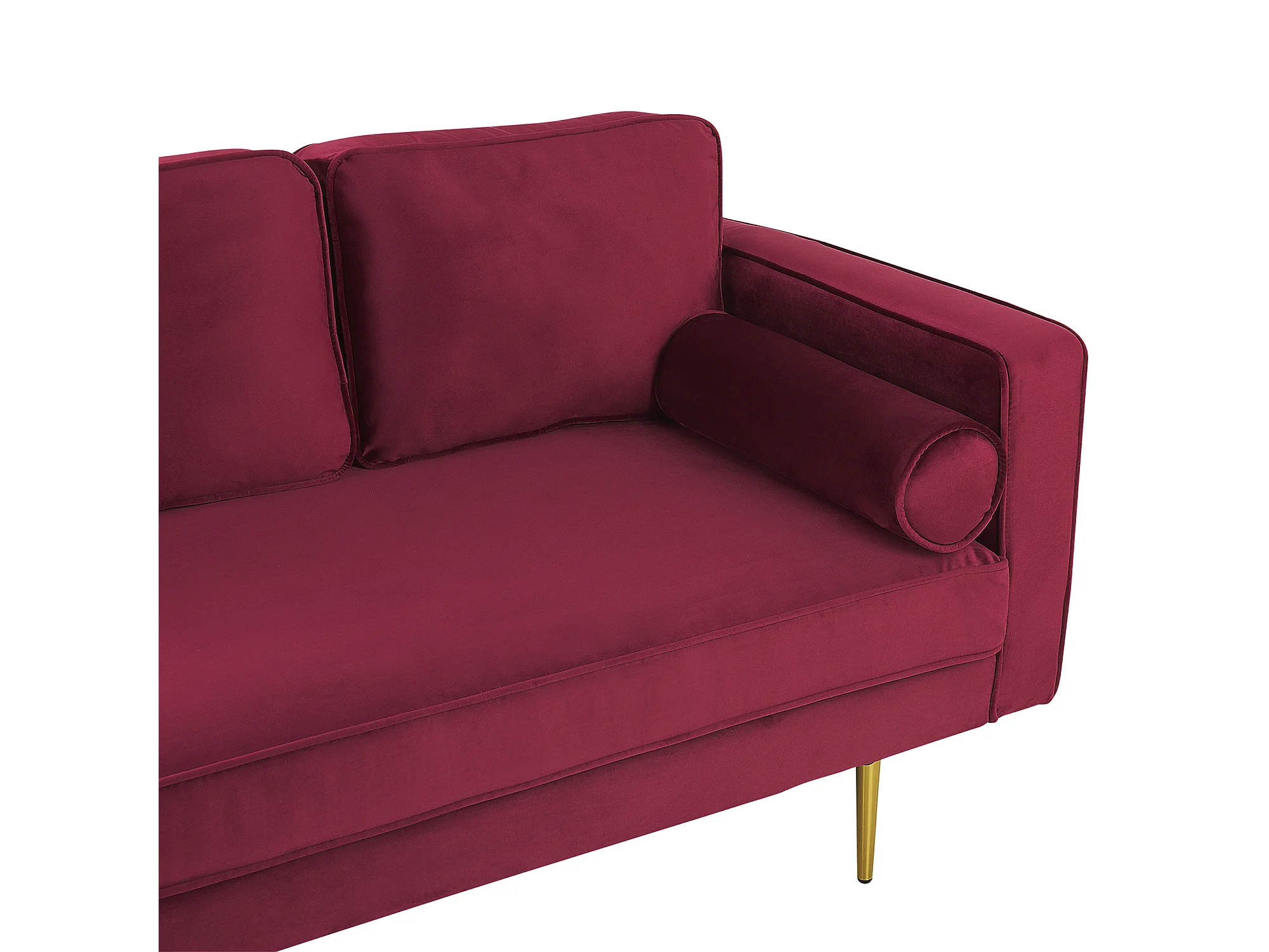 Chaiselongue Samt rot rechts goldenes Gestell mit Nackenrolle modern Miramas