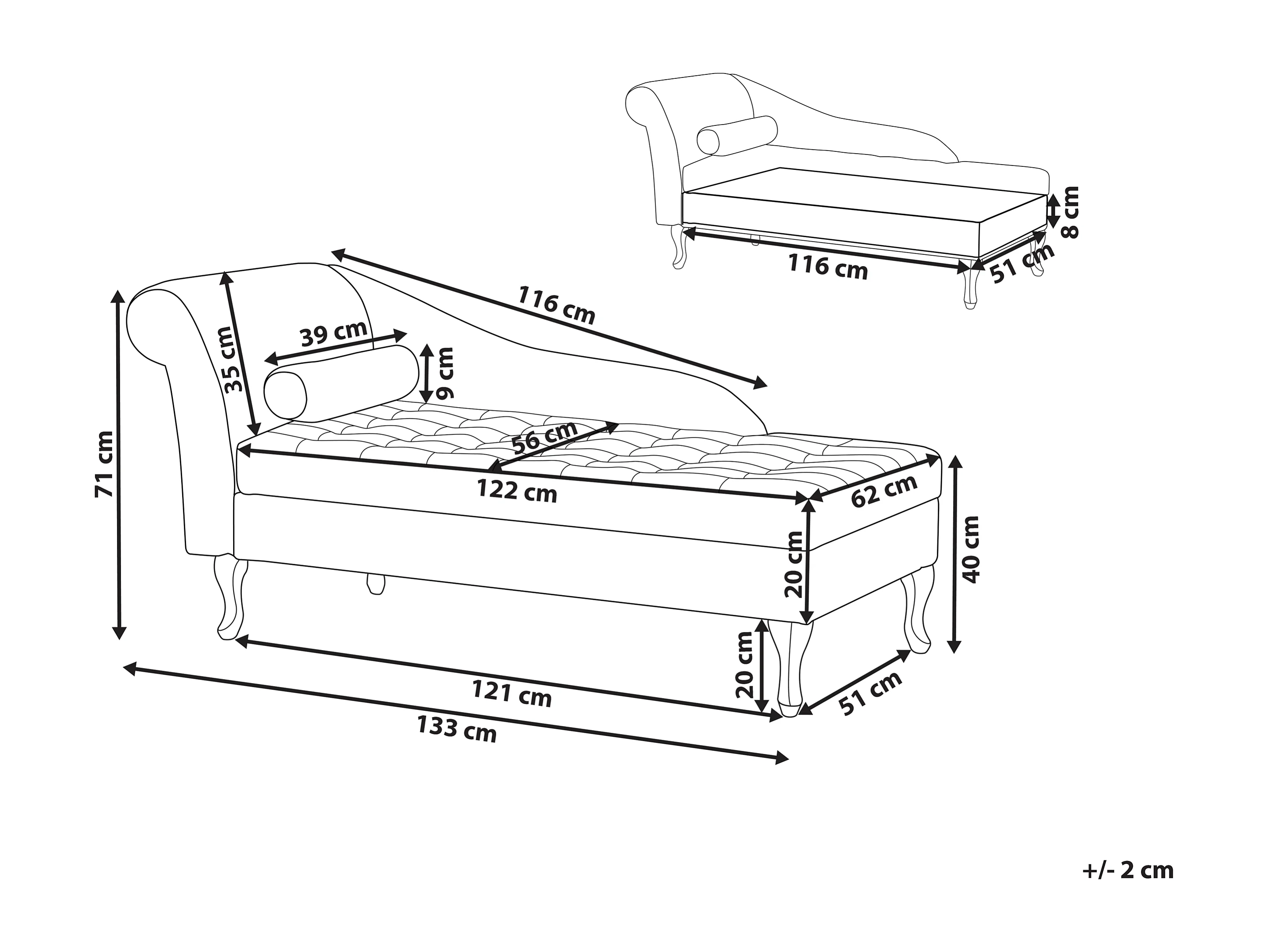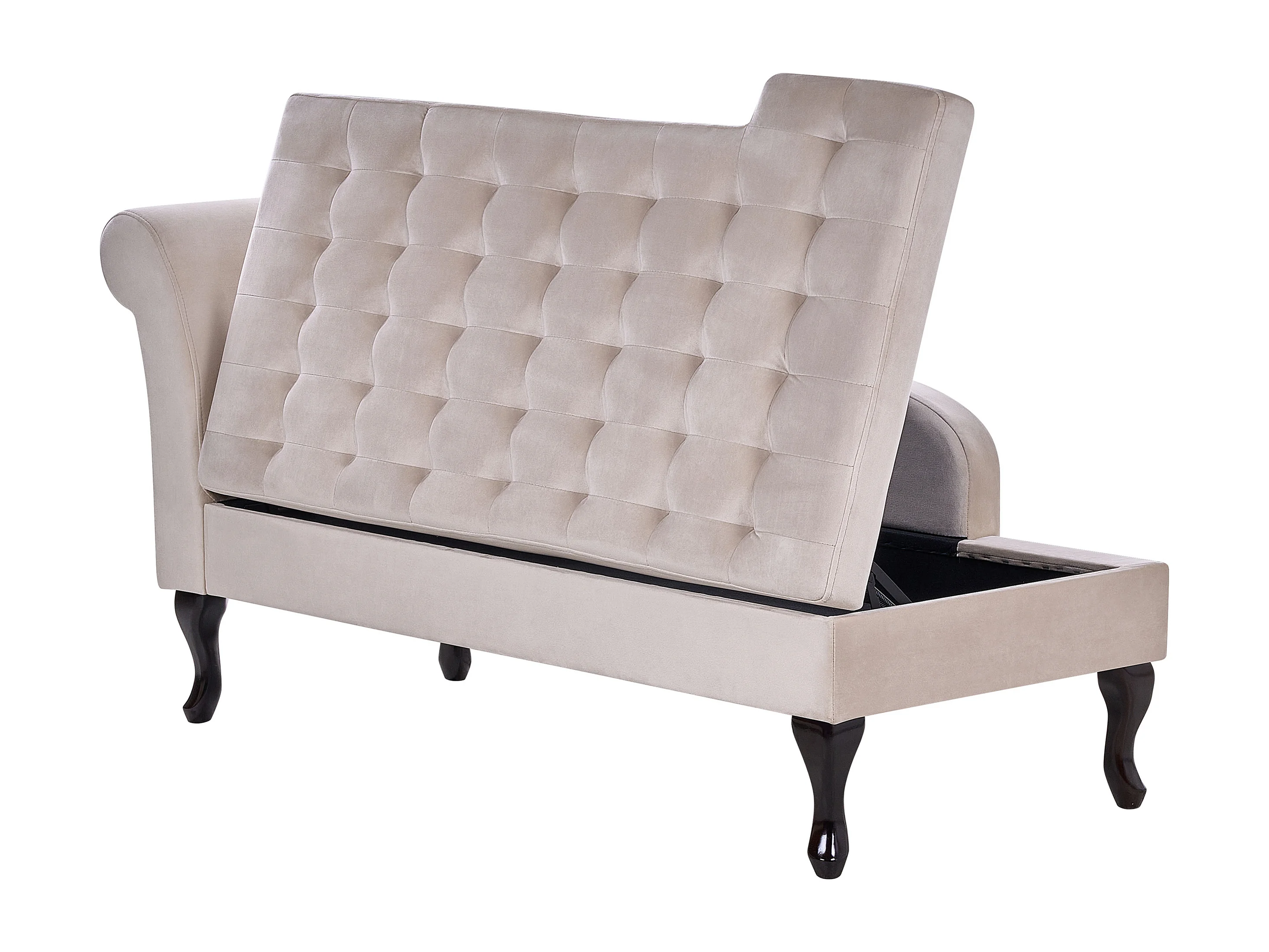 Chaiselongue linksseitig Samt beige mit Lehne Bettkasten Dekokissen Pessac