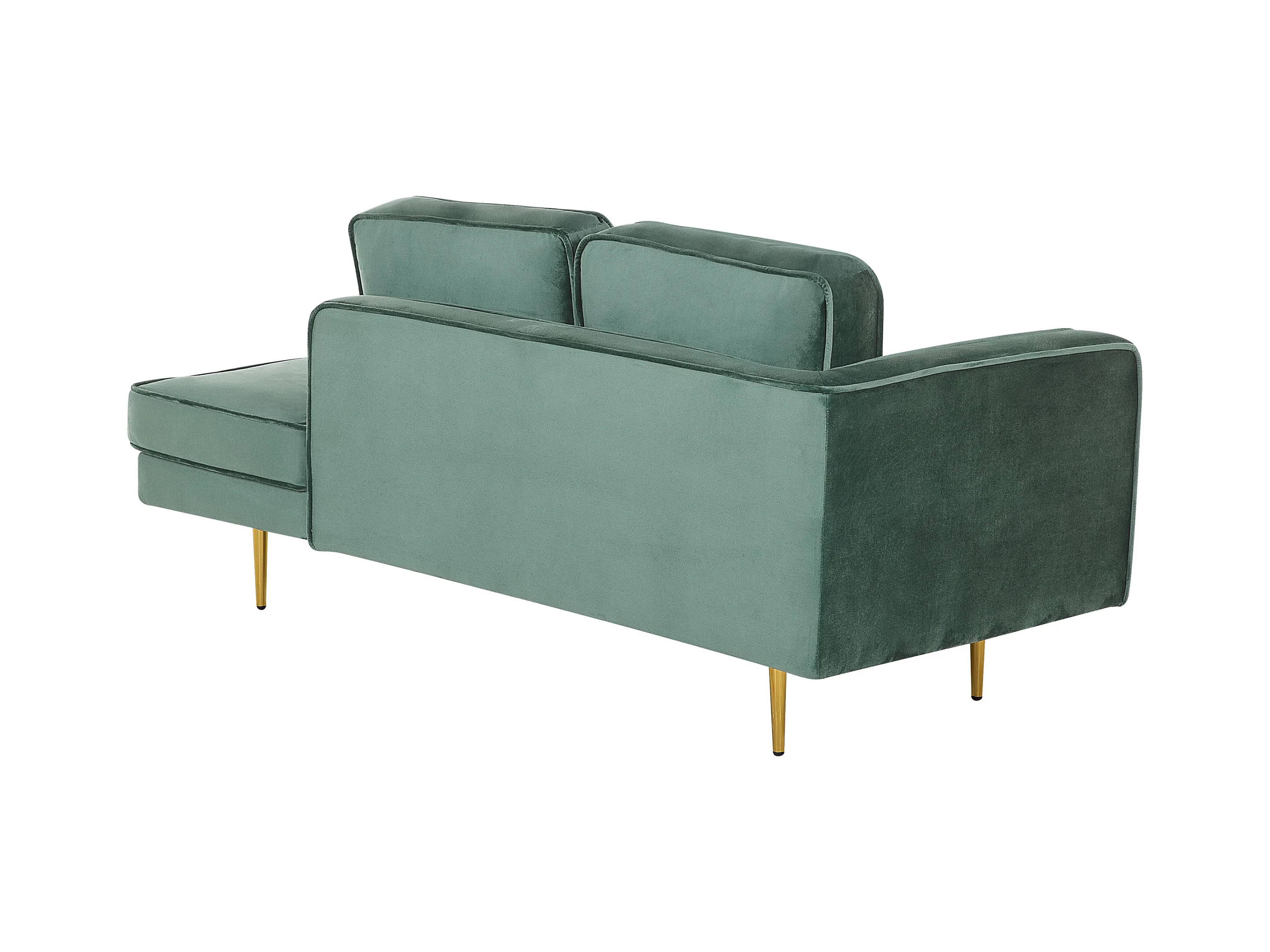 Chaiselongue Samt mintgrün links goldenes Gestell mit Nackenrolle Miramas