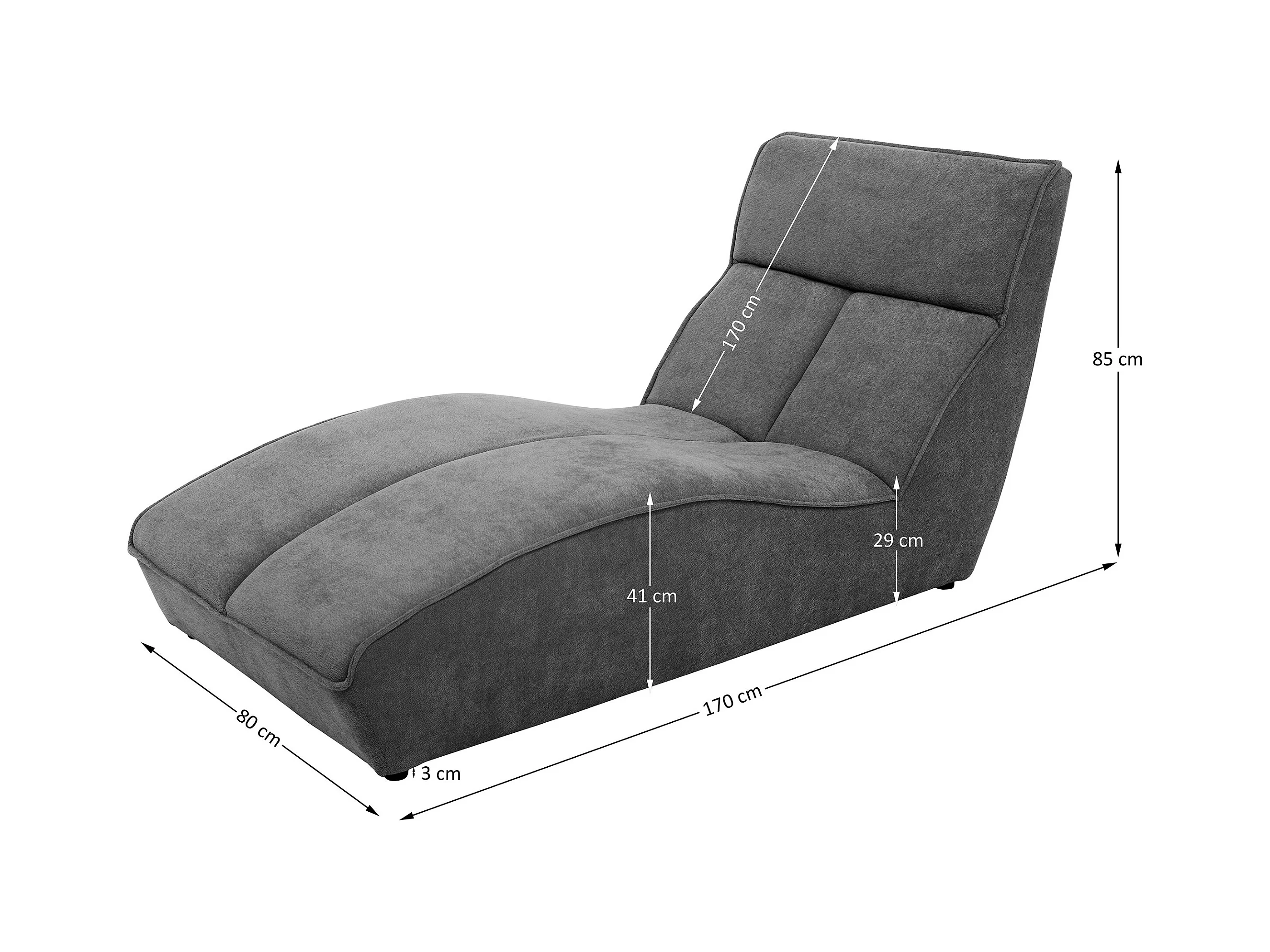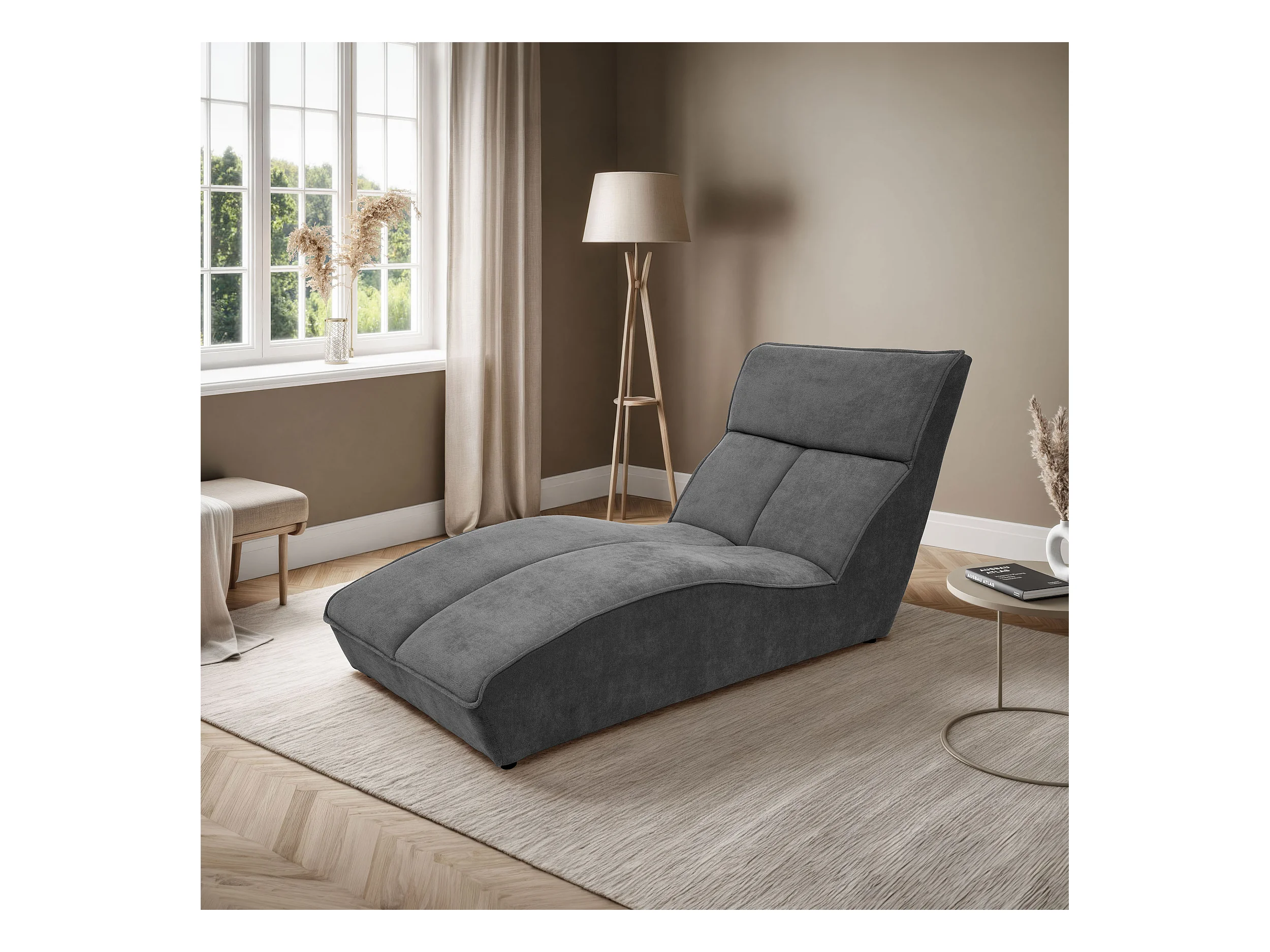 Chaiselongue SAN DIEGO im Velours Grau