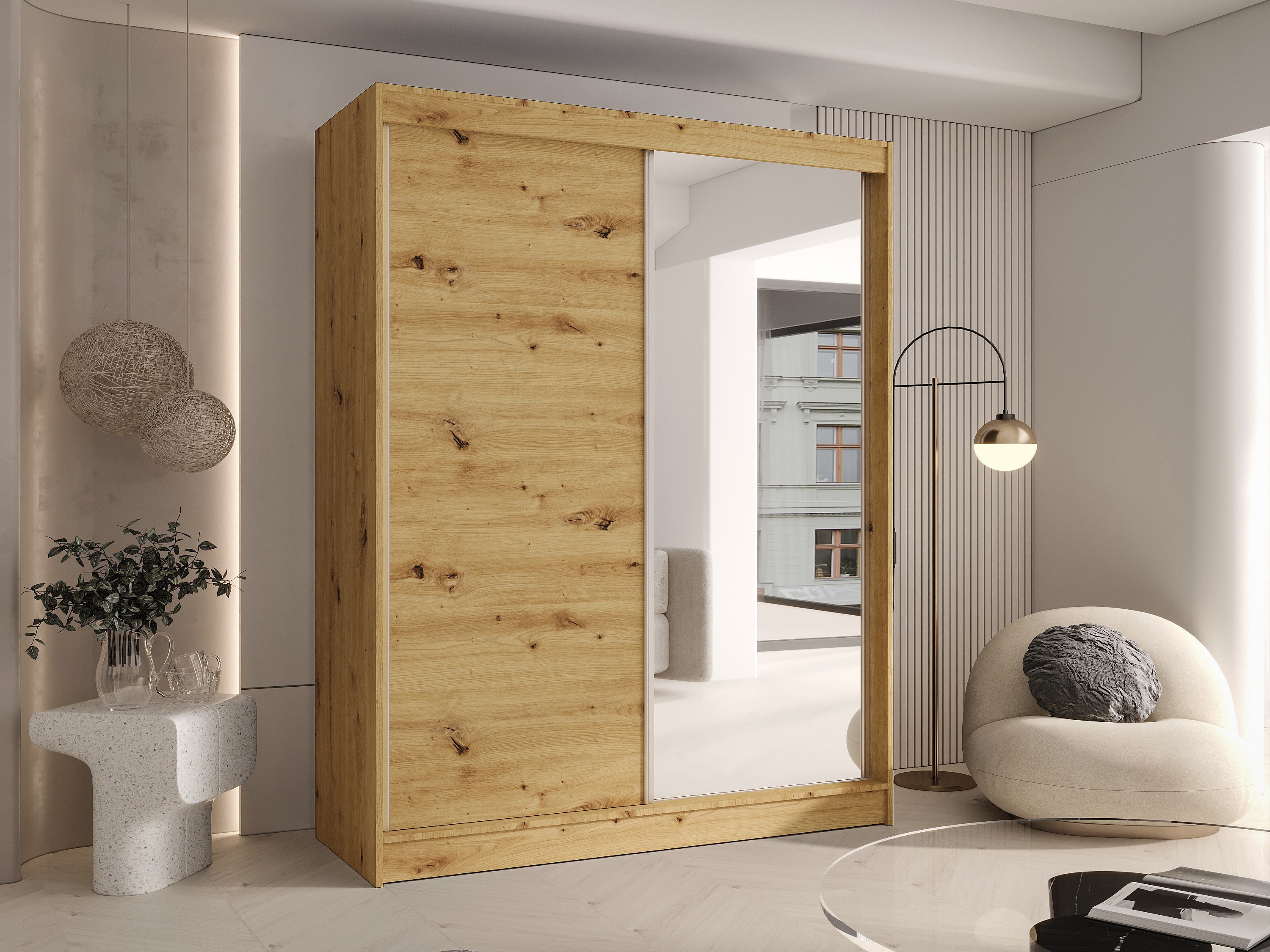 CHARLOTTE C1 Zweitüriger Schiebeschrank mit Spiegel, TOP PRODUKT 150cm Garderobe mit Kleiderstange/Regalböden, Verschieden Farben, Möbel vom Hersteller (Artisan)