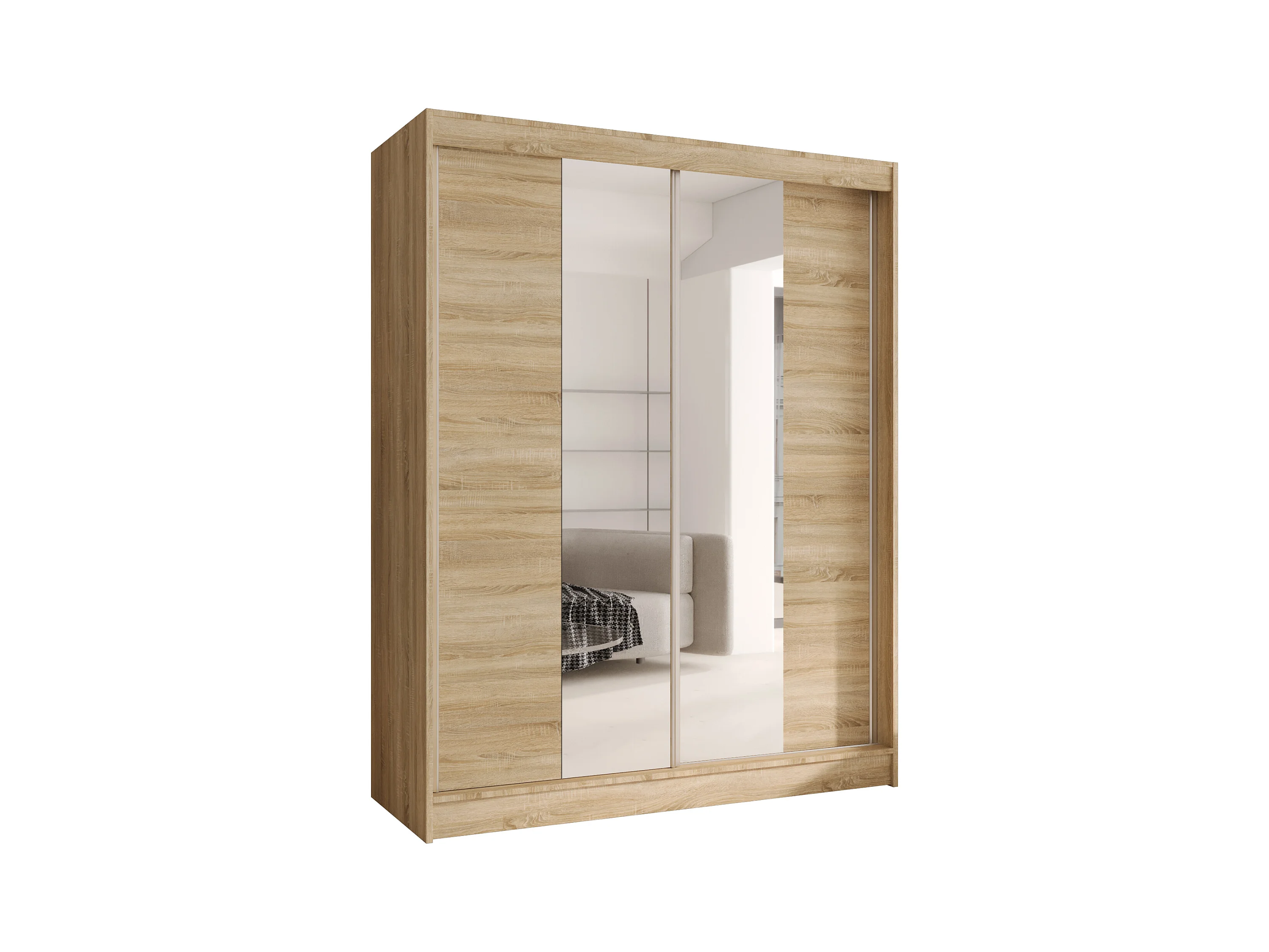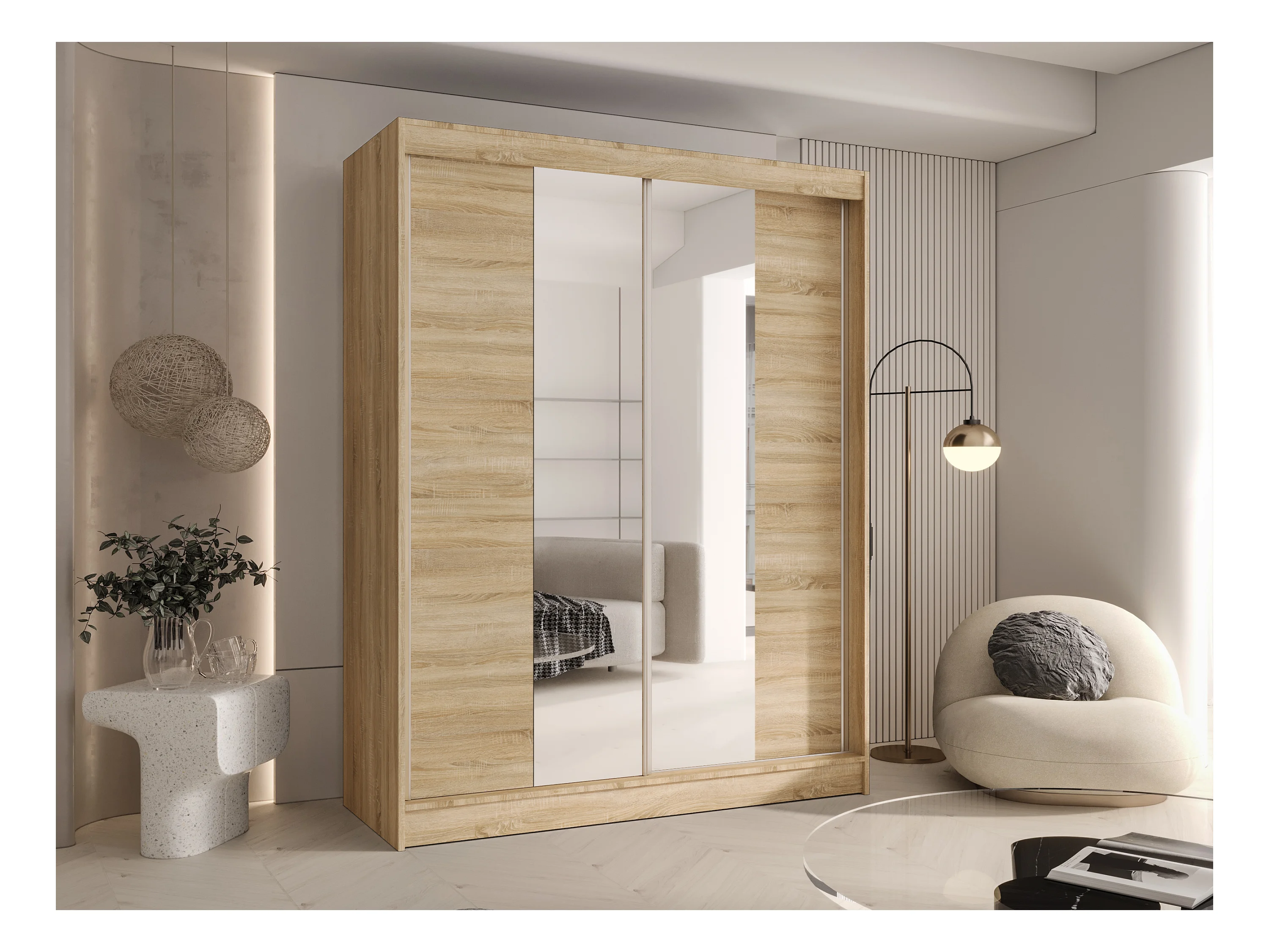 CHARLOTTE C2 Zweitüriger Schiebeschrank mit Spiegel, TOP PRODUKT 150cm Garderobe mit Kleiderstange/Regalböden, Verschieden Farben, Möbel vom Hersteller (Sonoma)