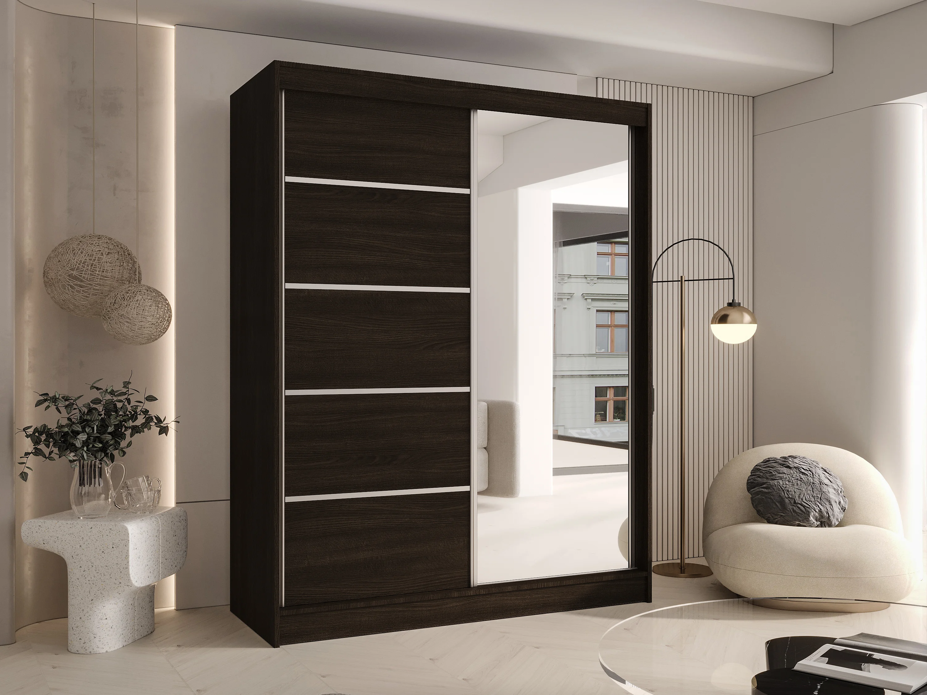 CHARLOTTE C3 Zweitüriger Schiebeschrank mit Spiegel, TOP PRODUKT 150cm Garderobe mit Kleiderstange/Regalböden, Verschieden Farben, Möbel vom Hersteller (Choco)