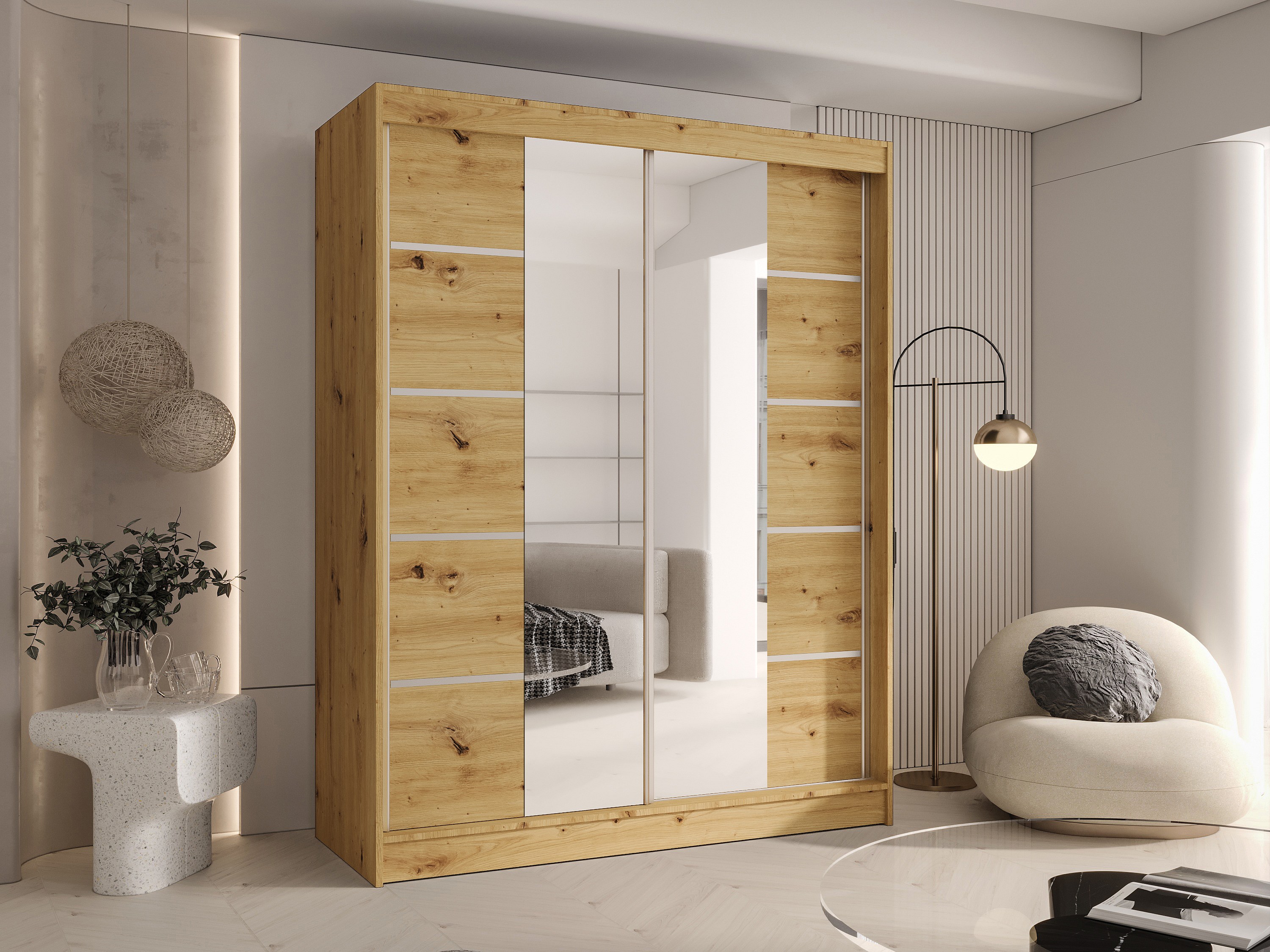 CHARLOTTE C5 Zweitüriger Schiebeschrank mit Spiegel, TOP PRODUKT 150cm Garderobe mit Kleiderstange/Regalböden, Verschieden Farben, Möbel vom Hersteller (Artisan)