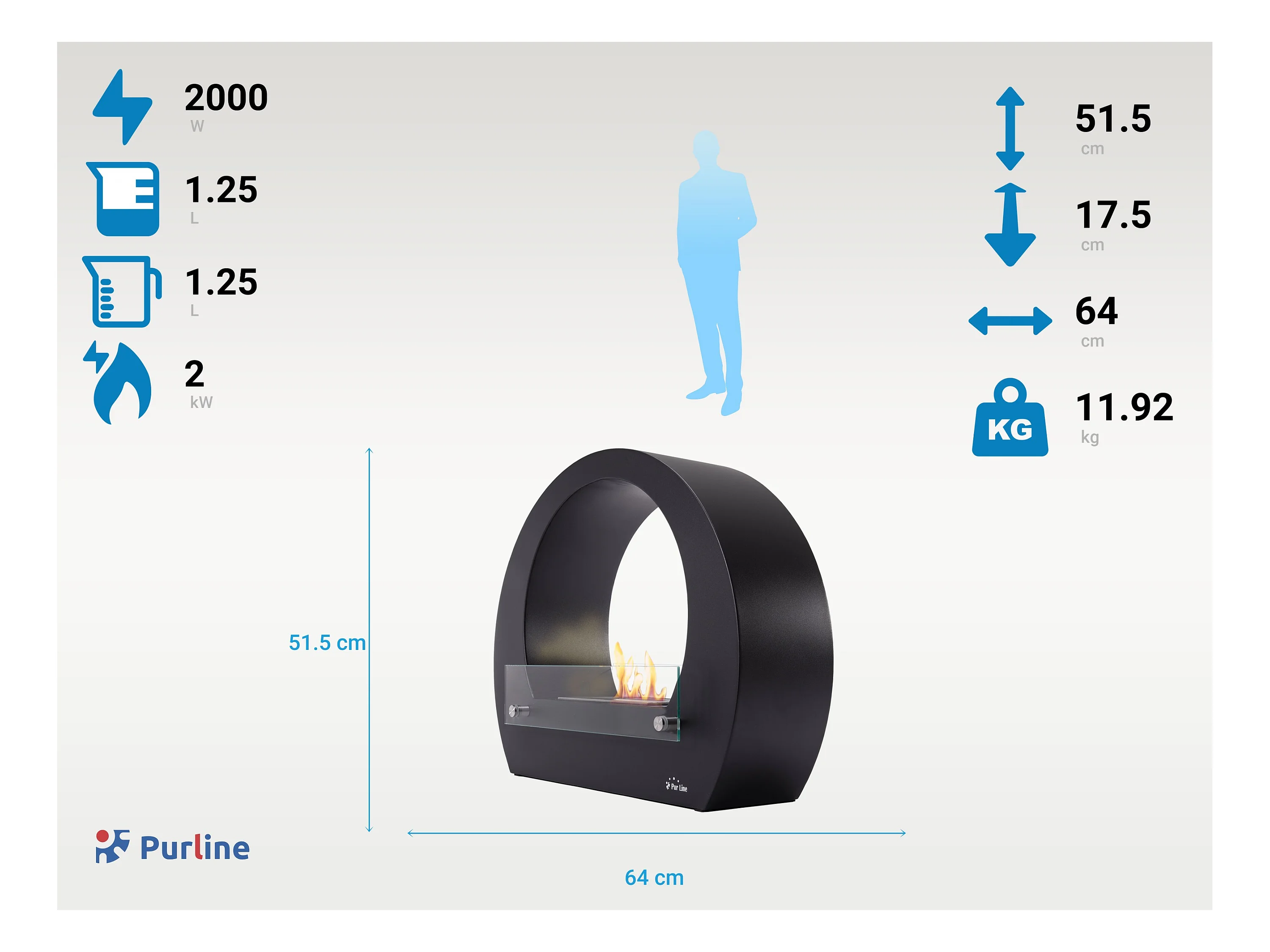 Ethanolkamin aus Stahl mit einstellbarer Flamme