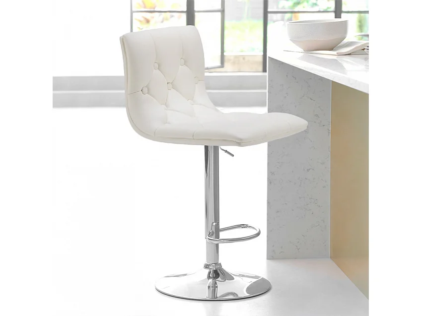 Chesterfield Kunstleder gesteppt Küche und Barhocker Design Honolulu - Weiß