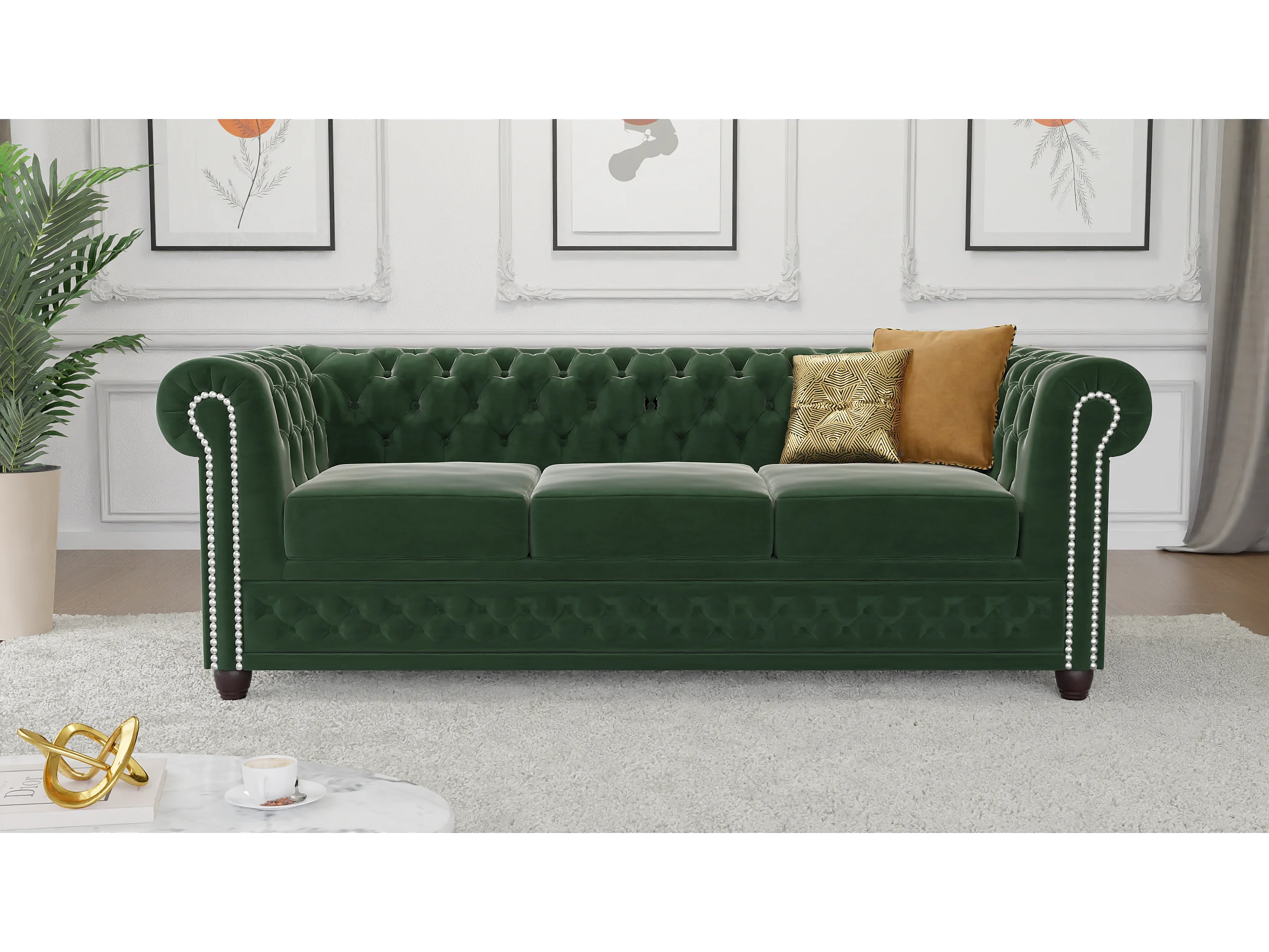 Chesterfield Liv Polstergarnitur 3+2+1 Samt Bezug