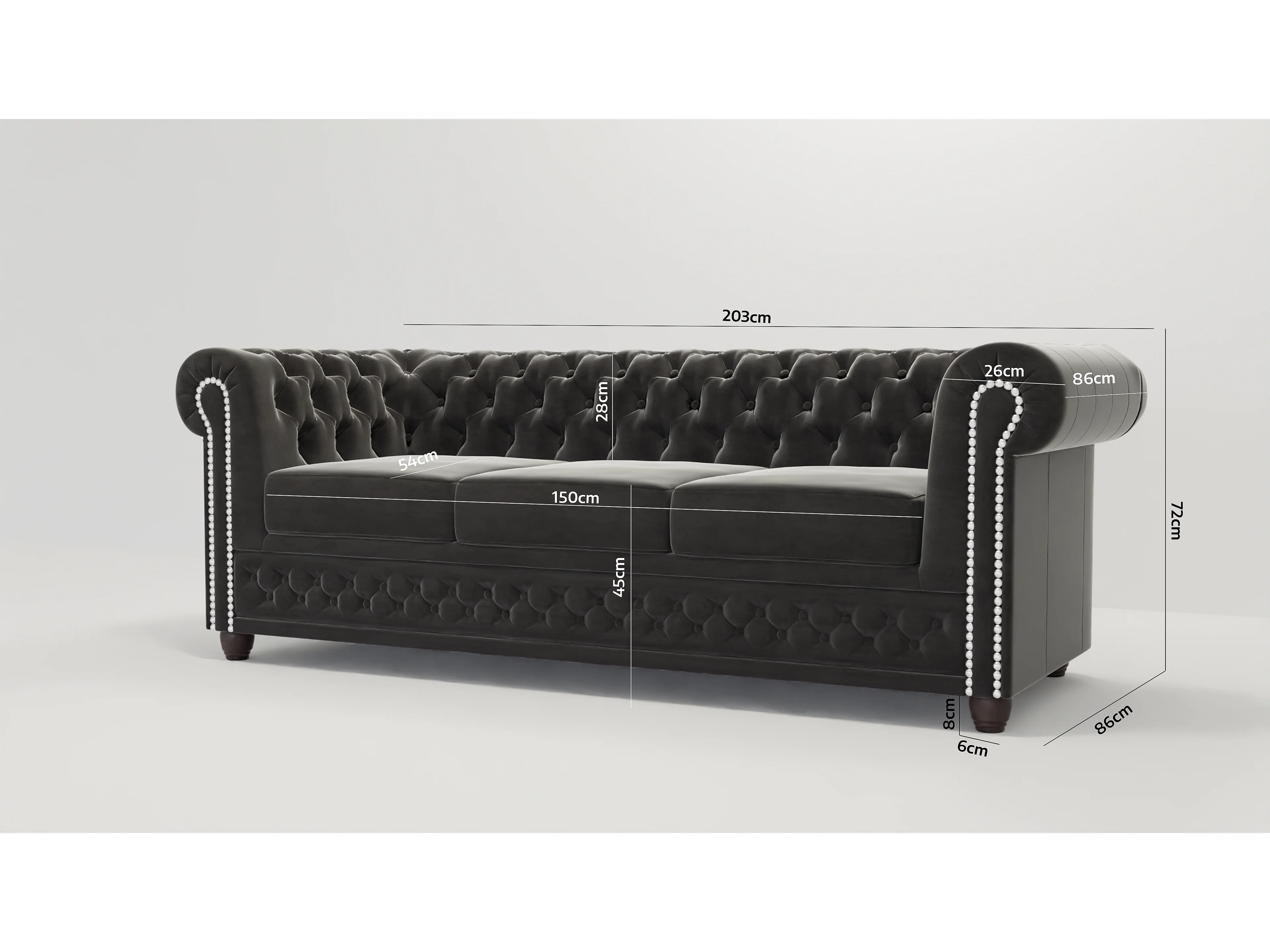 Chesterfield Liv Polstergarnitur mit Schlaffunktion 3+2+1 Samt Bezug