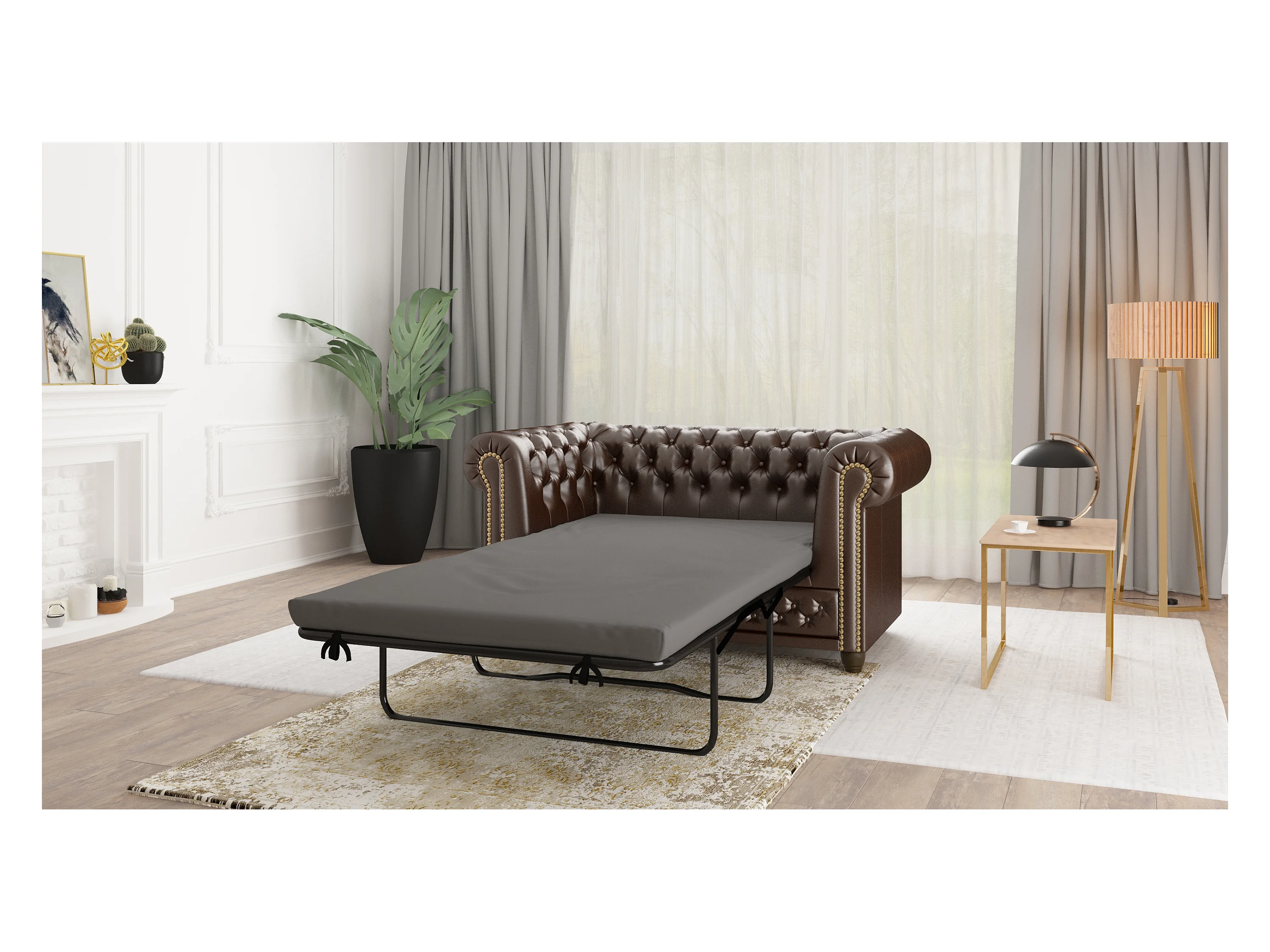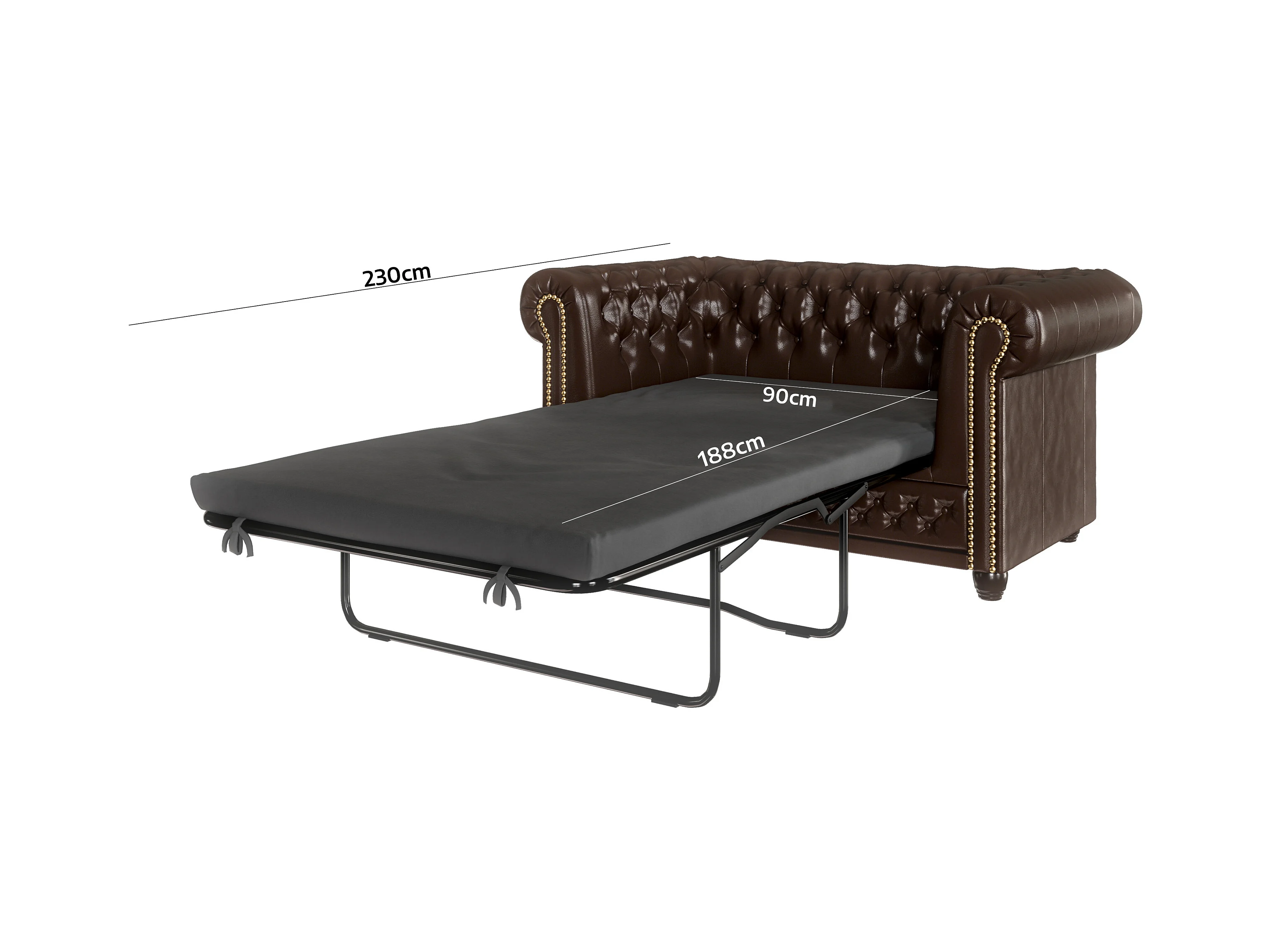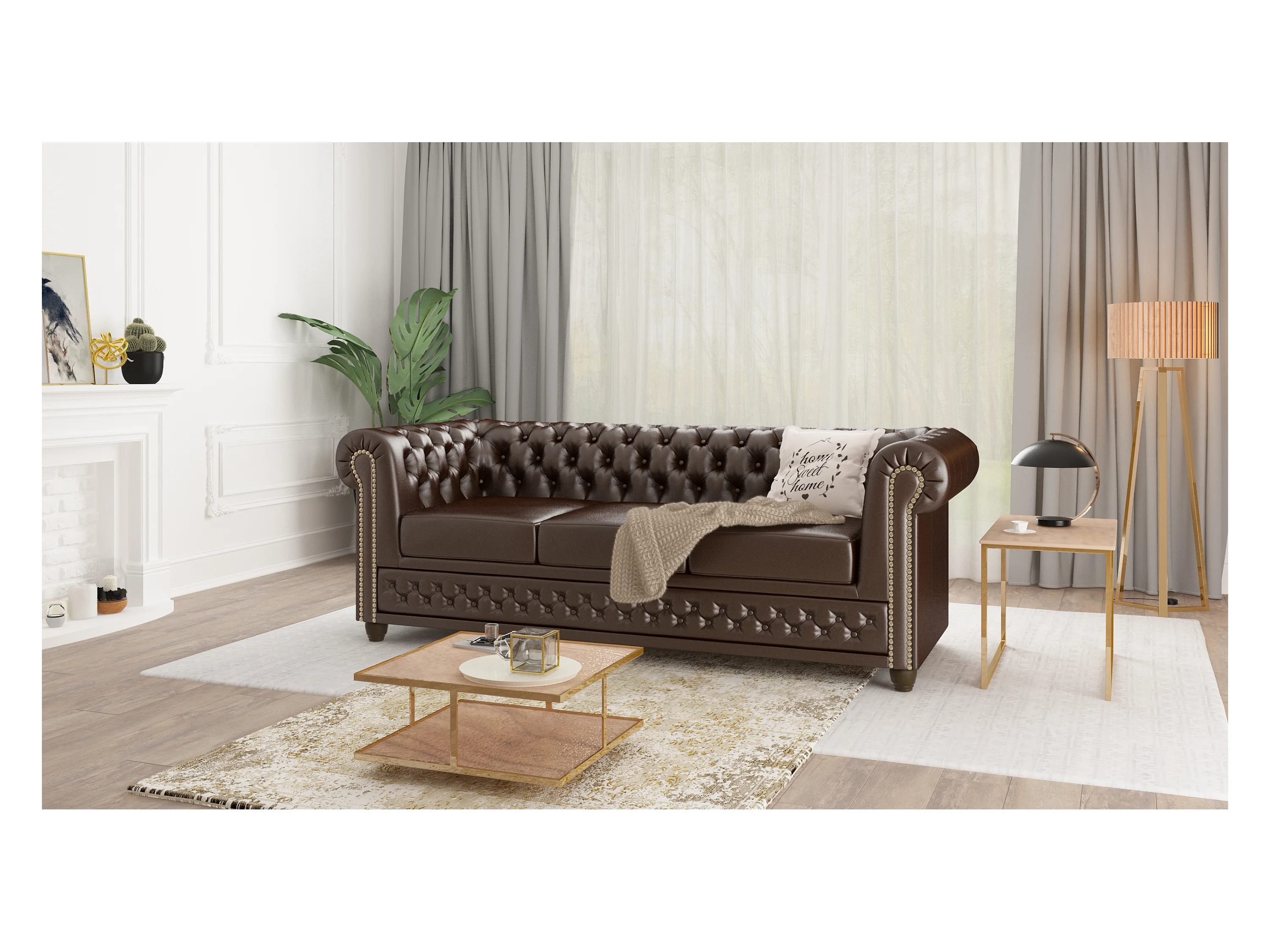 Chesterfield Polstergarnitur 3+2+1 mit Schlaffunktion aus veganem Leder mit Holzbeinen - Rex