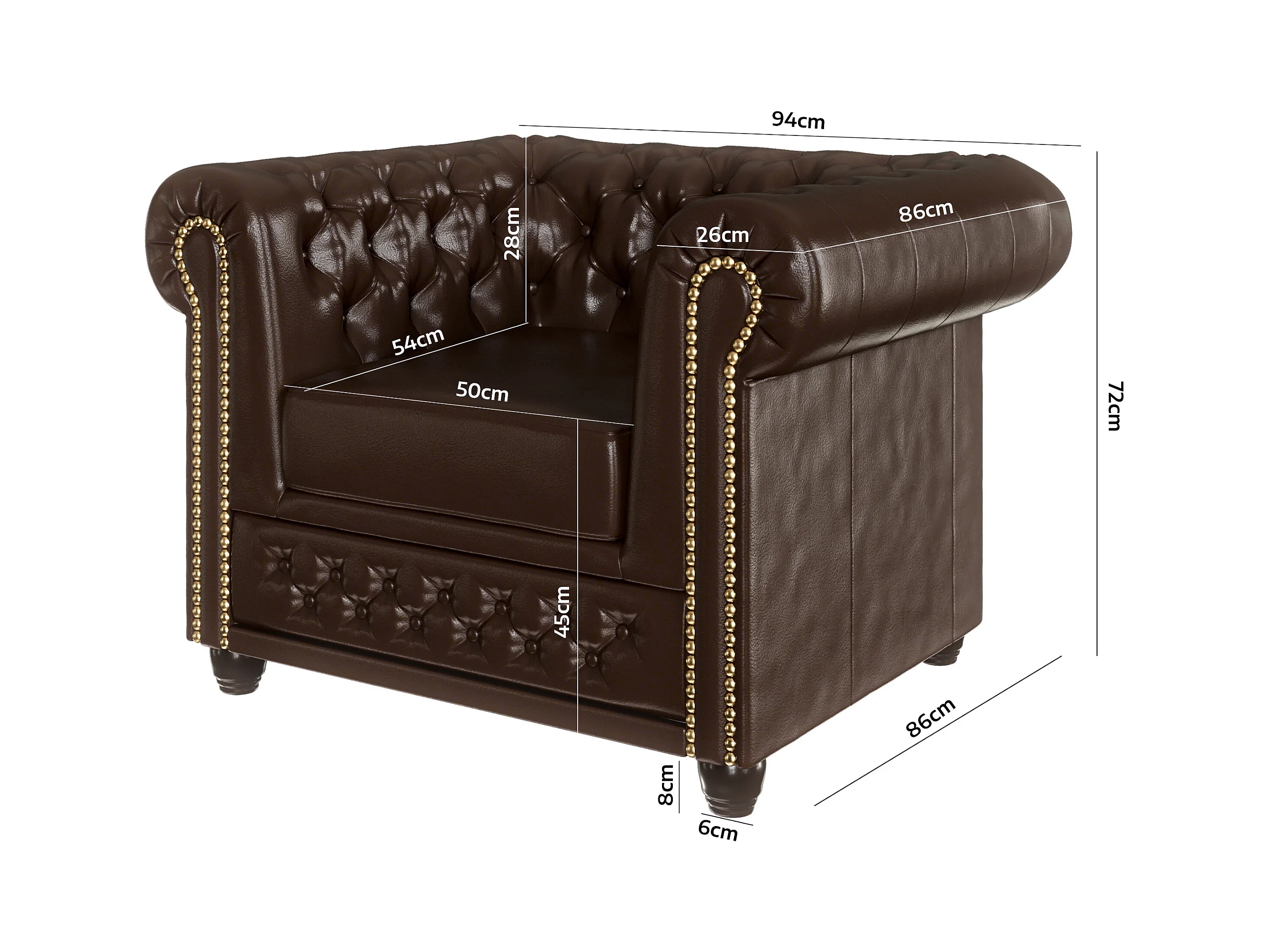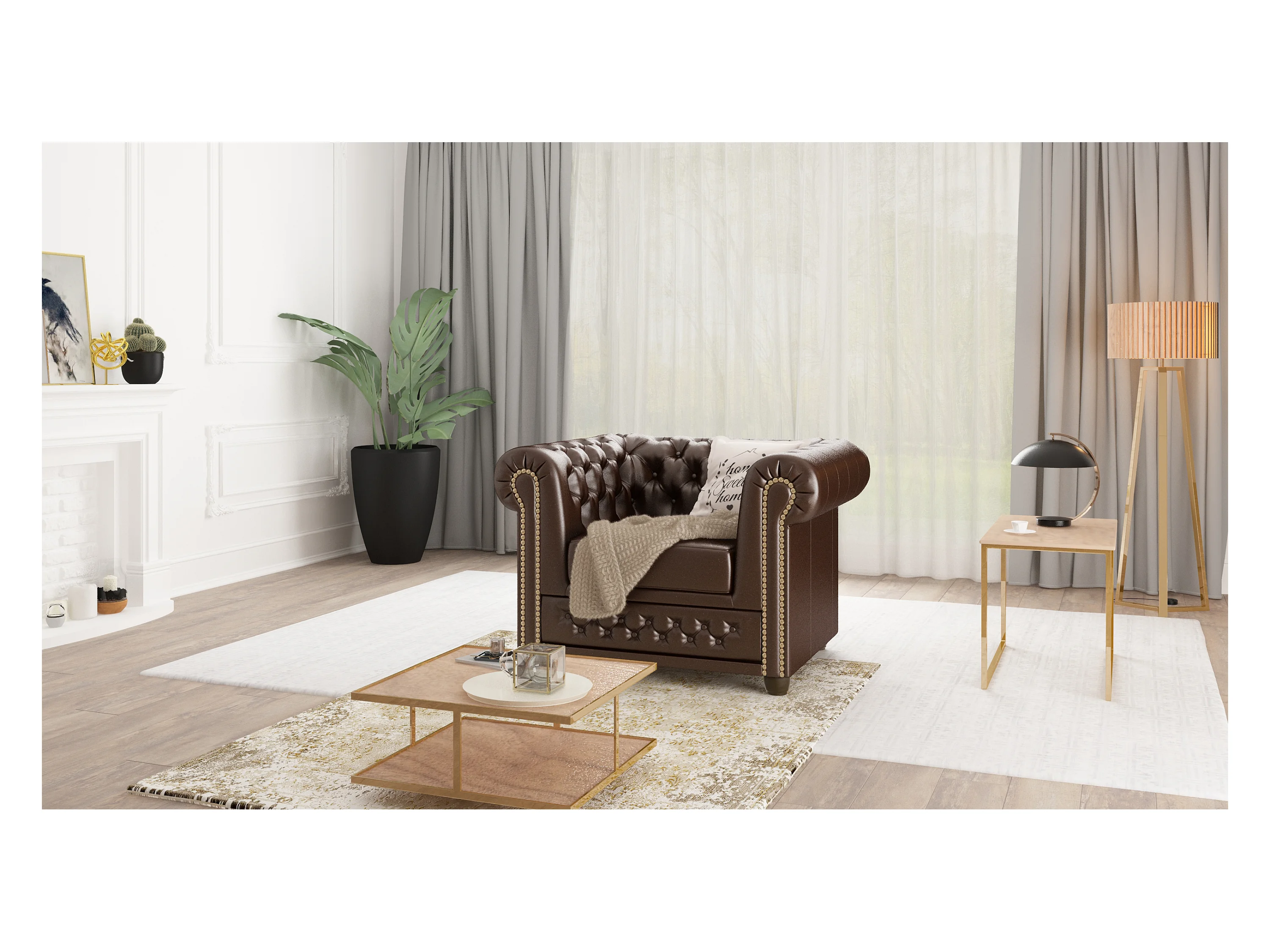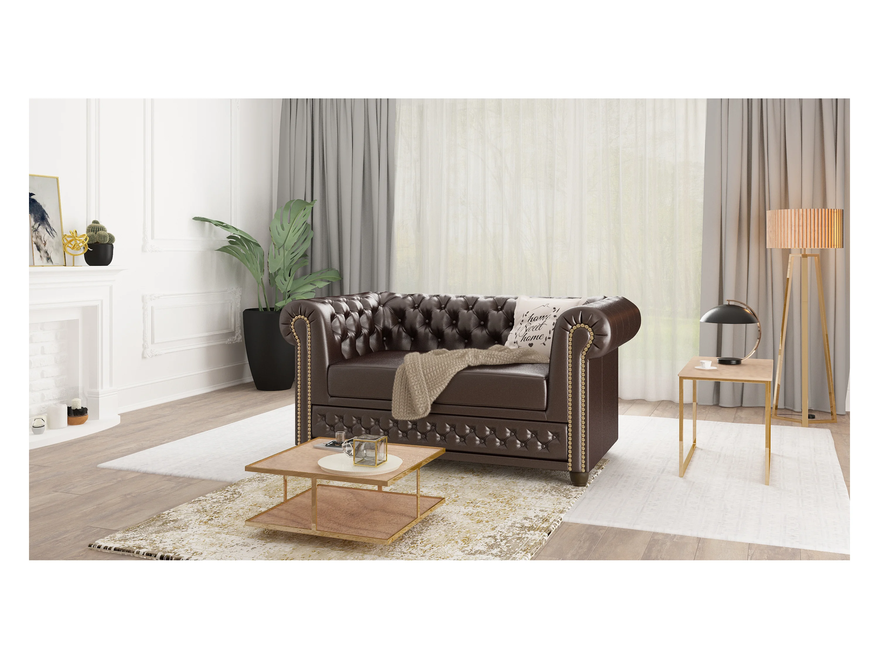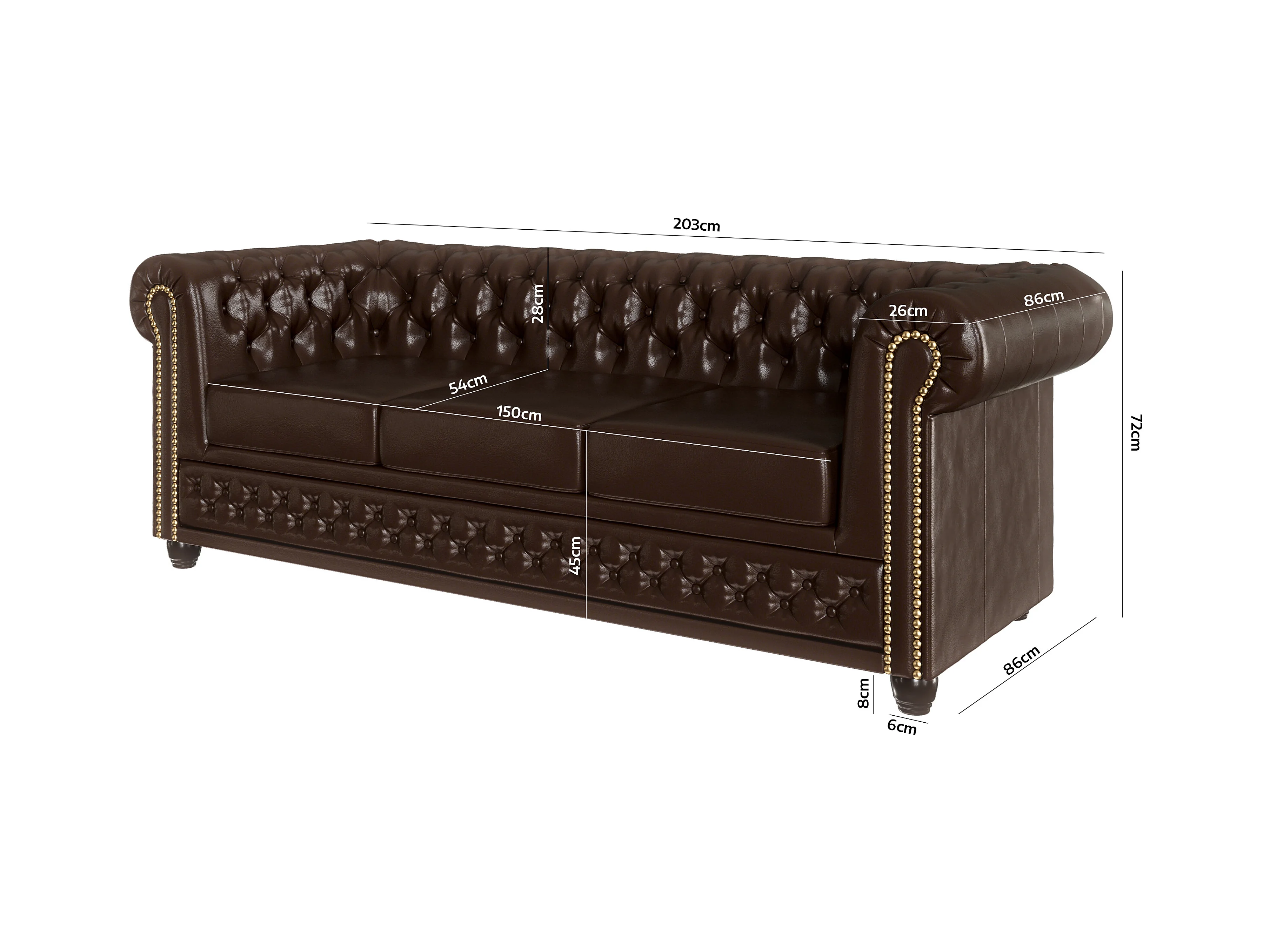 Chesterfield Polstergarnitur 3+2+1 mit Schlaffunktion aus veganem Leder mit Holzbeinen - Rex