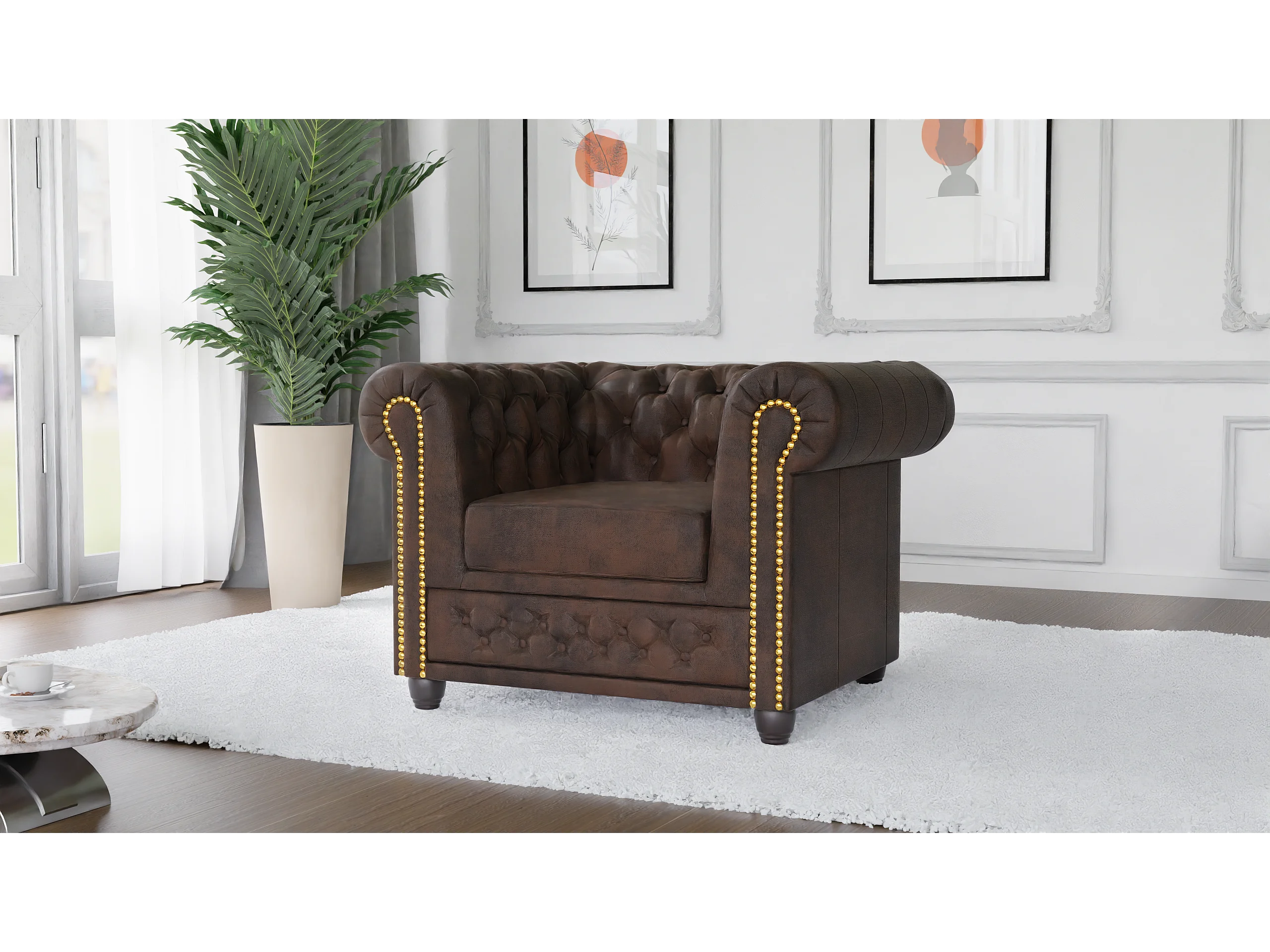 Chesterfield Selena Polstergarnitur mit Schlaffunktion 3+2+1 Vintage Optik Microfaser