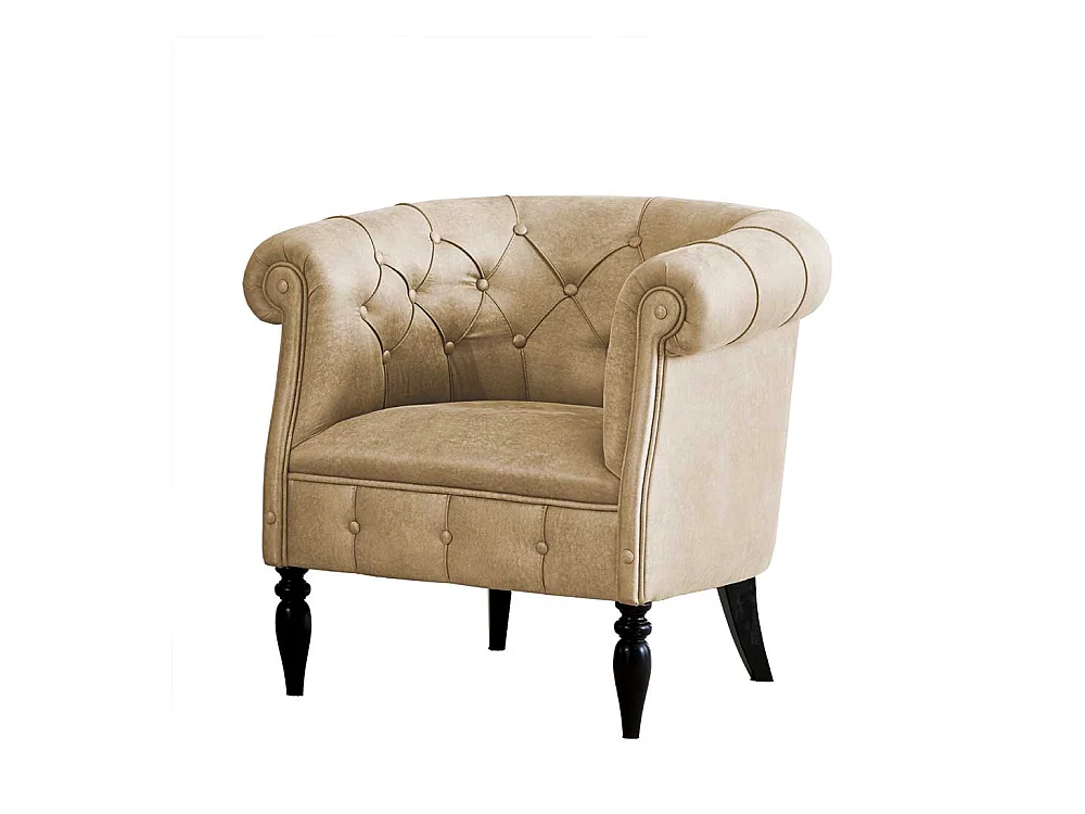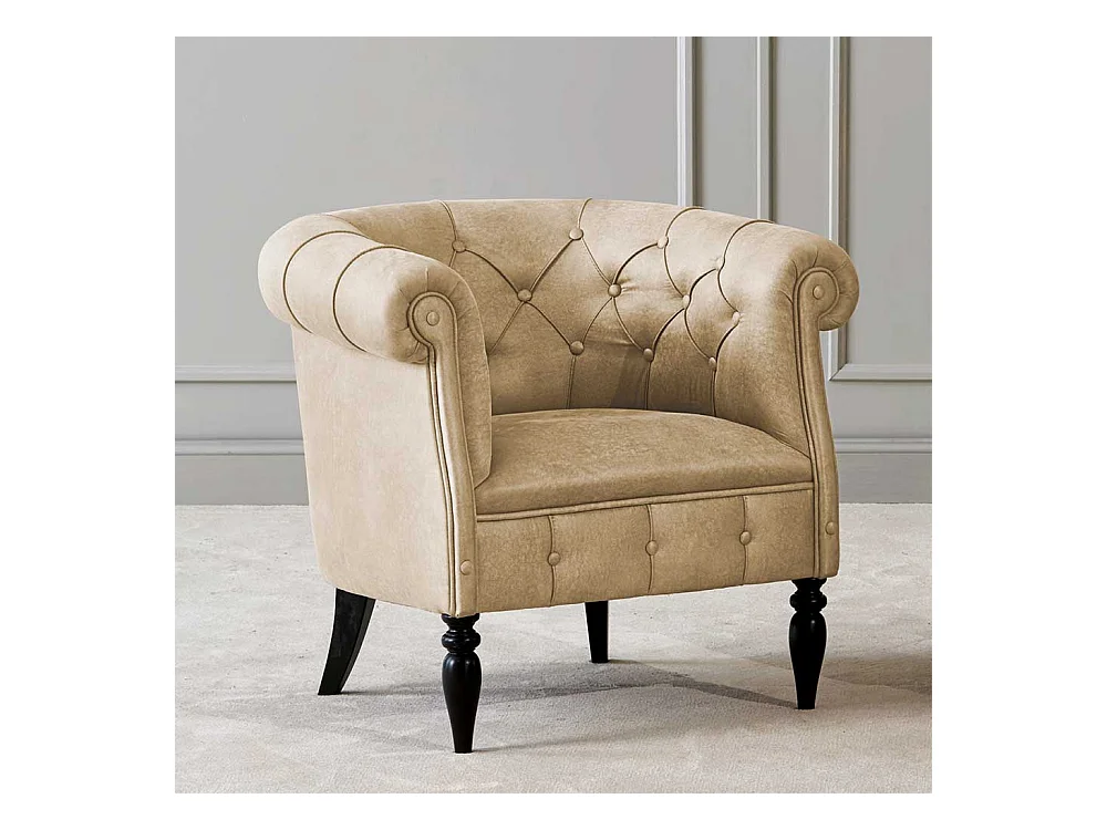 Chesterfield Sessel in Beige und Schwarz Vierfußgestell aus Holz