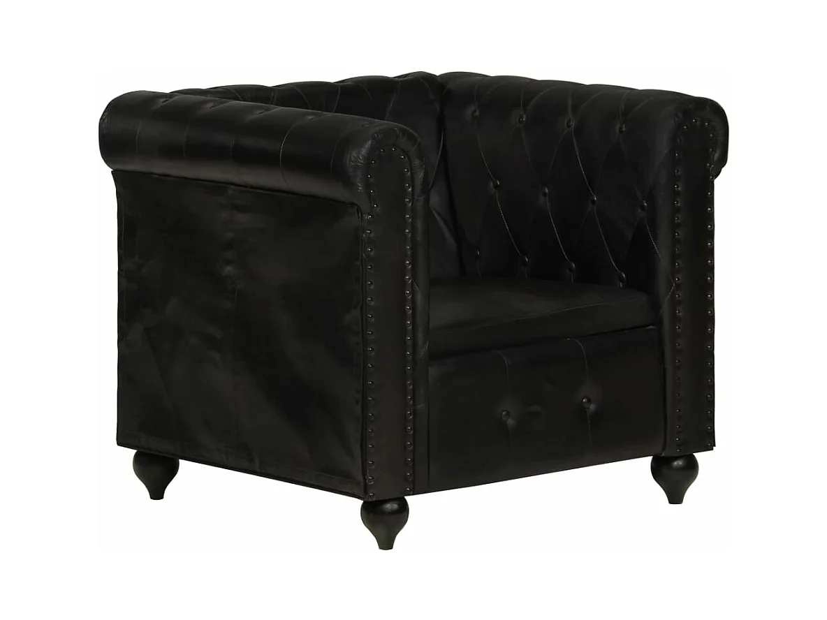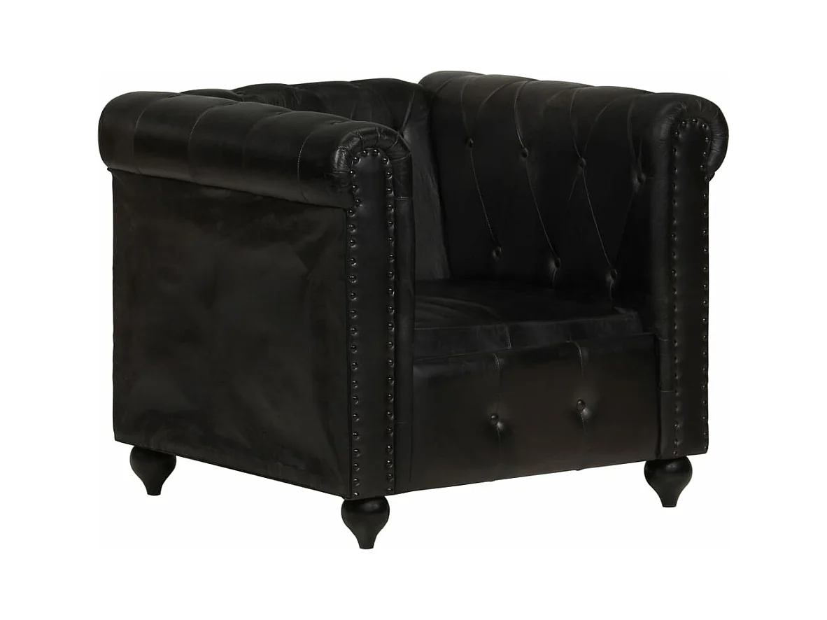Chesterfield-Sessel Schwarz Echtleder