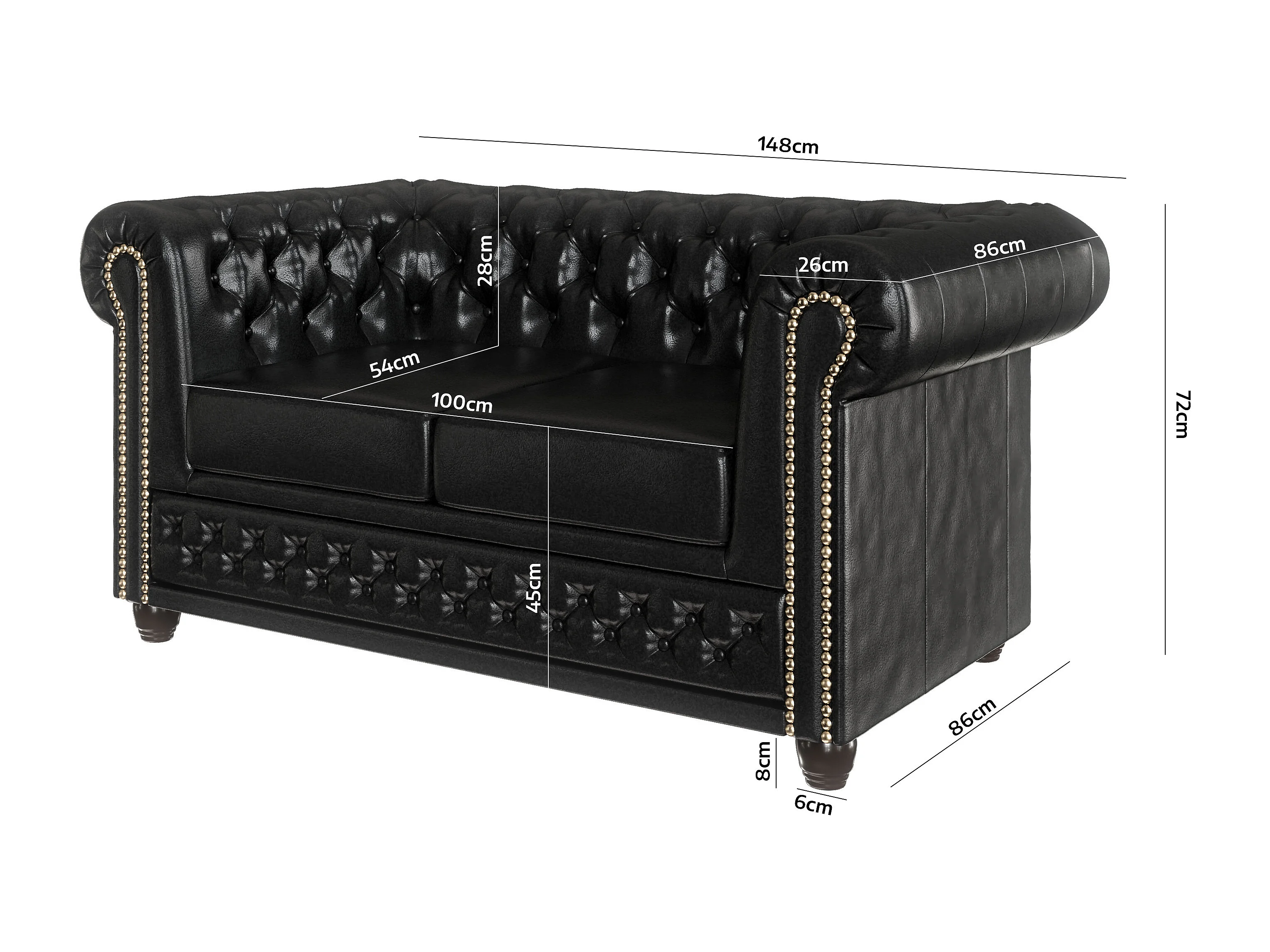 Chesterfield Sofa 2 sitzer aus veganem Leder mit Holzbeinen - Rex