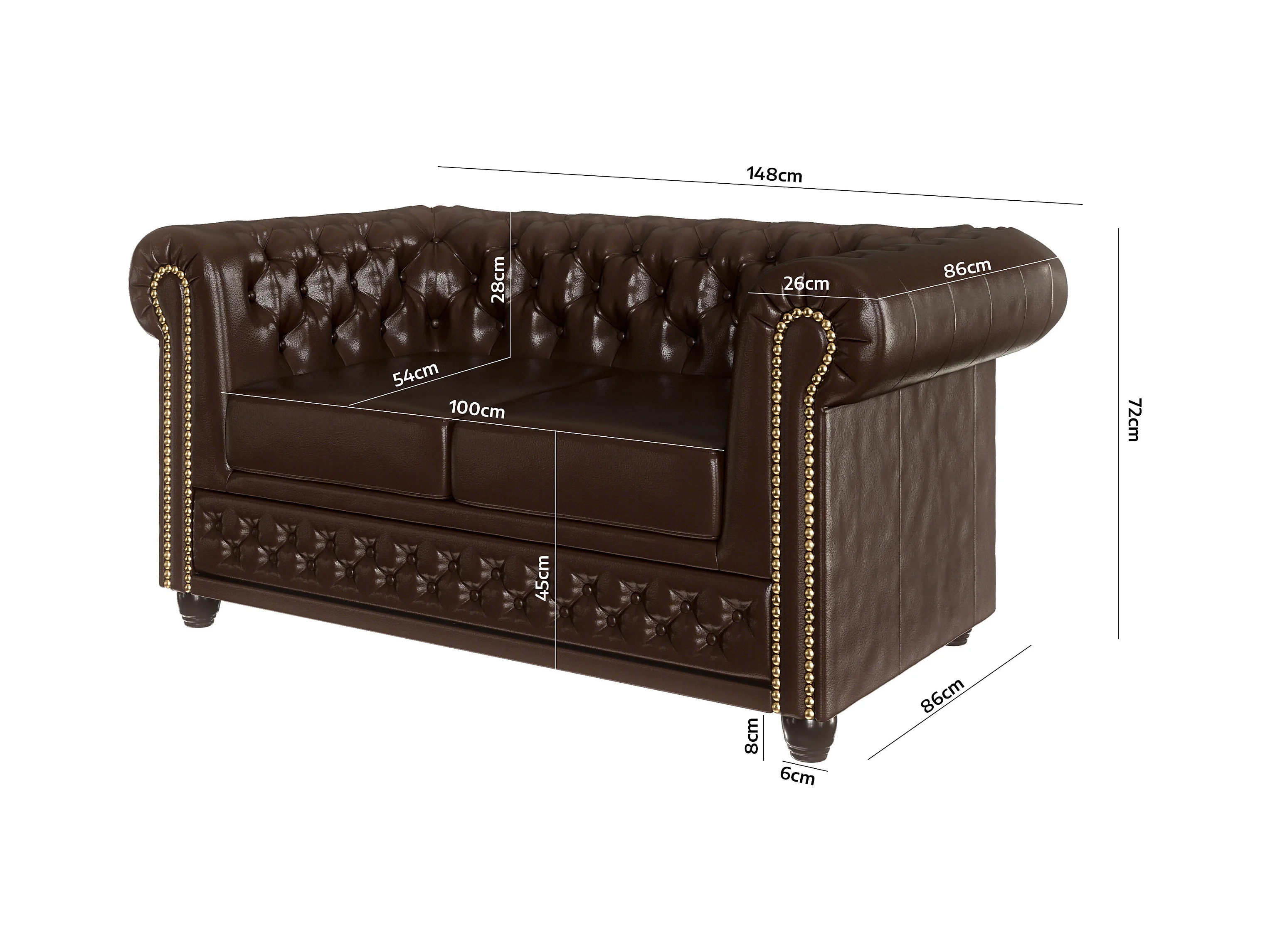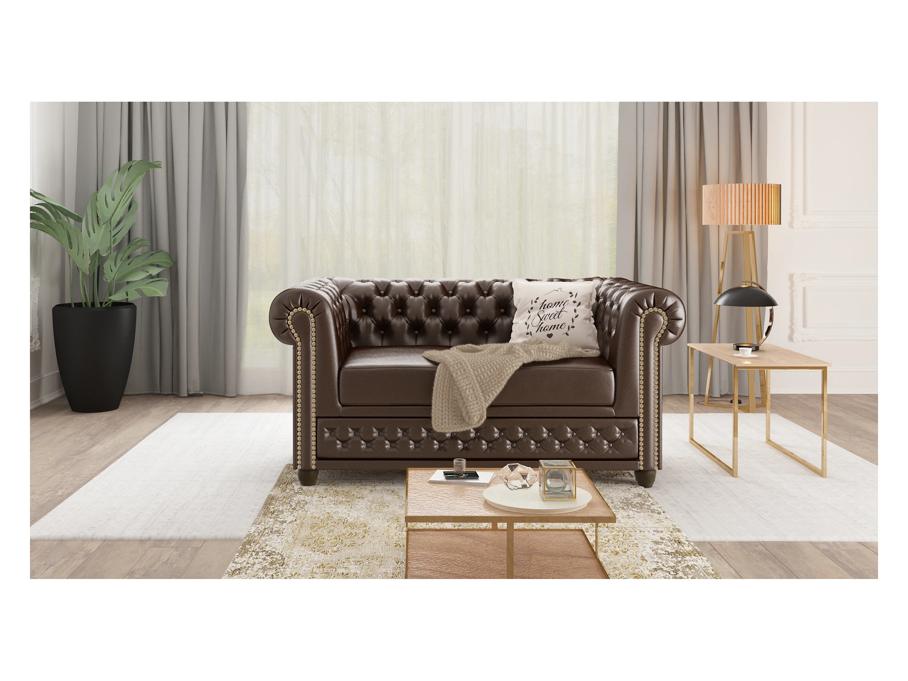 Chesterfield Sofa 2 sitzer mit Schlaffunktion aus veganem Leder mit Holzbeinen - Rex