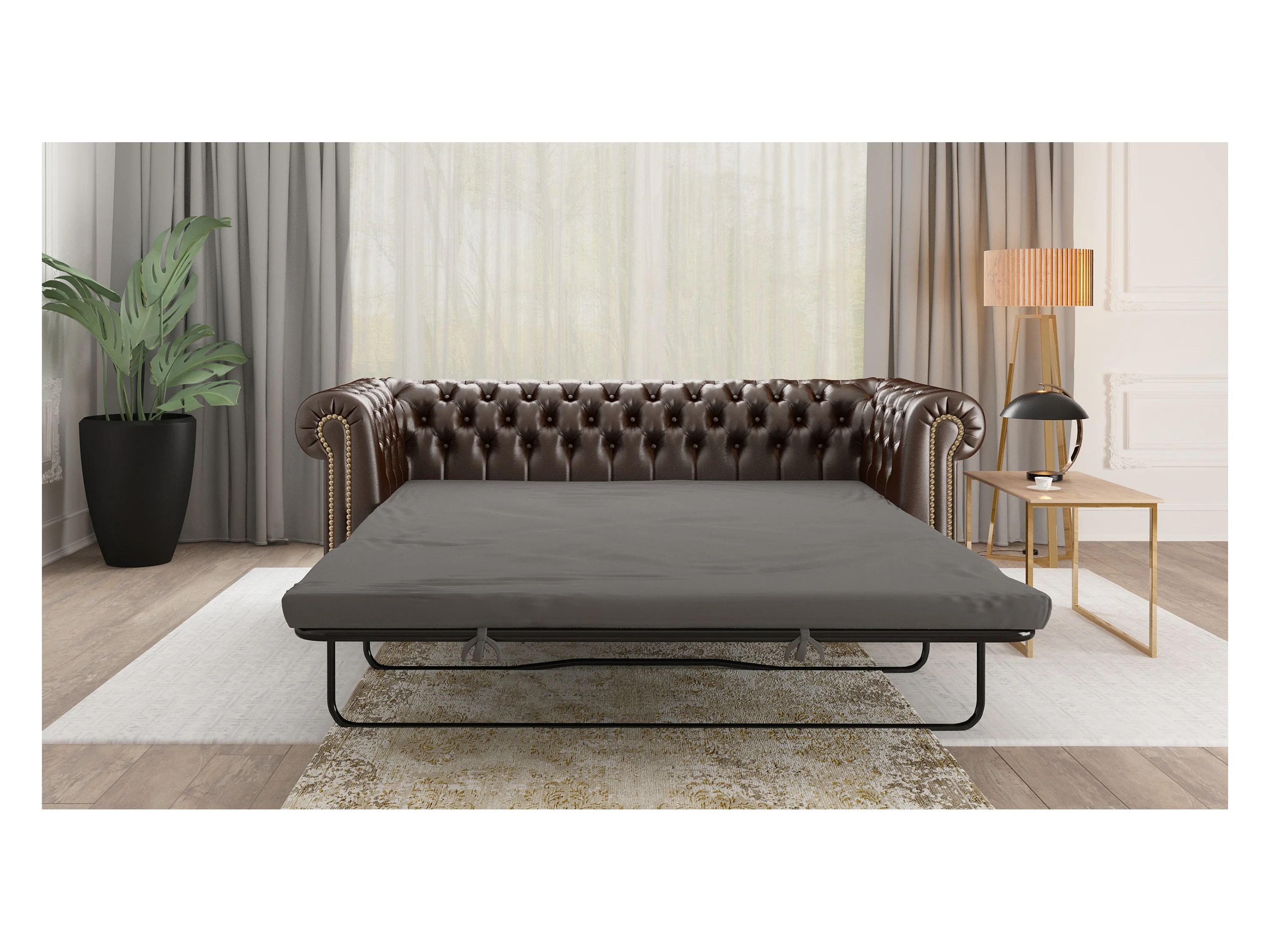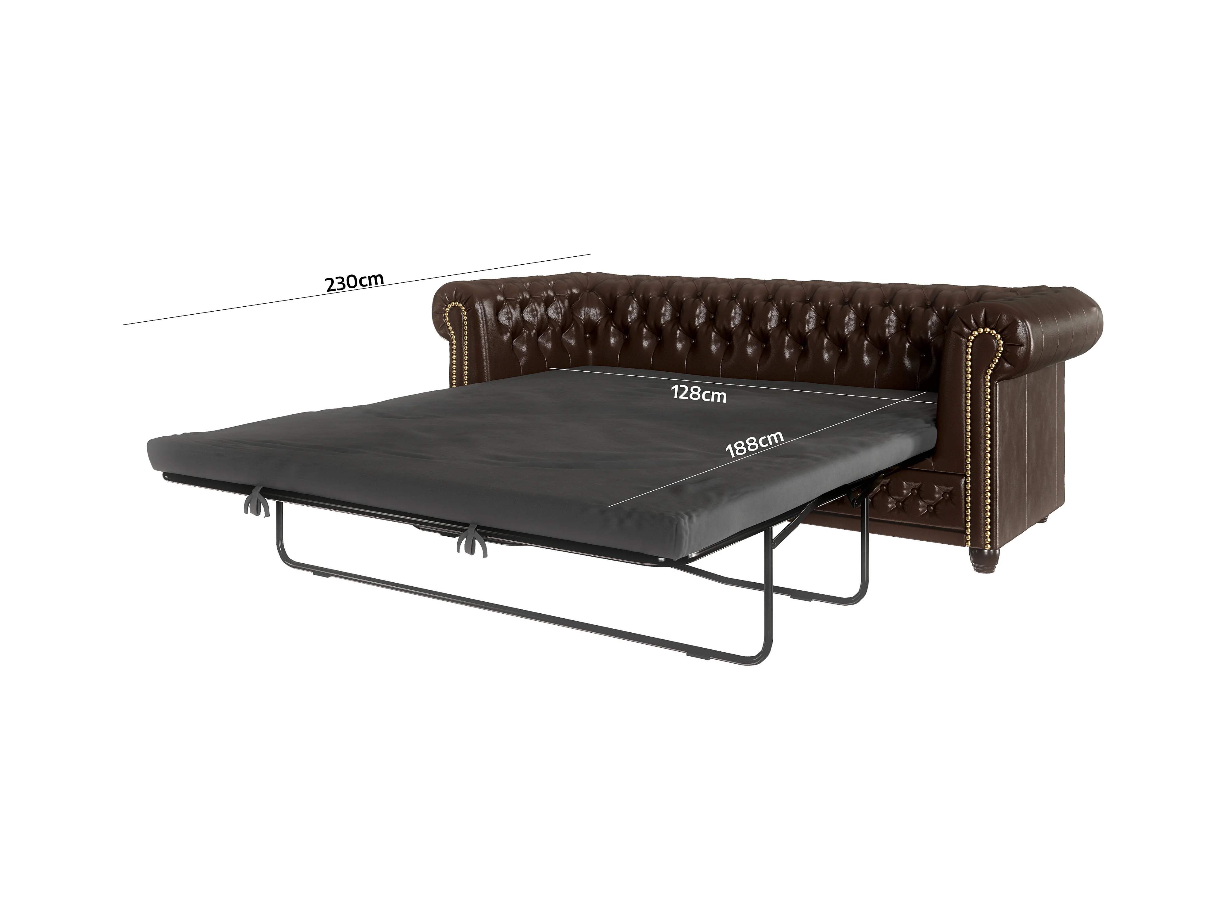 Chesterfield Sofa 3 sitzer mit Schlaffunktion aus veganem Leder mit Holzbeinen - Rex