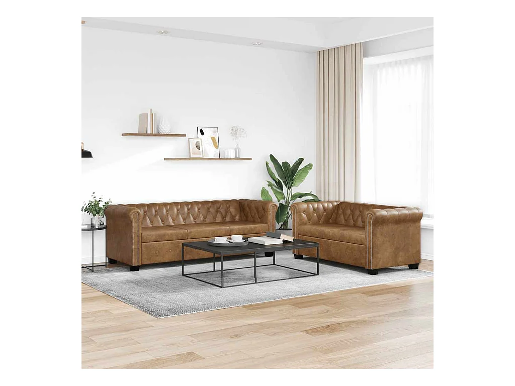 Chesterfield-Sofas 2-Sitzer und 3-Sitzer Braun