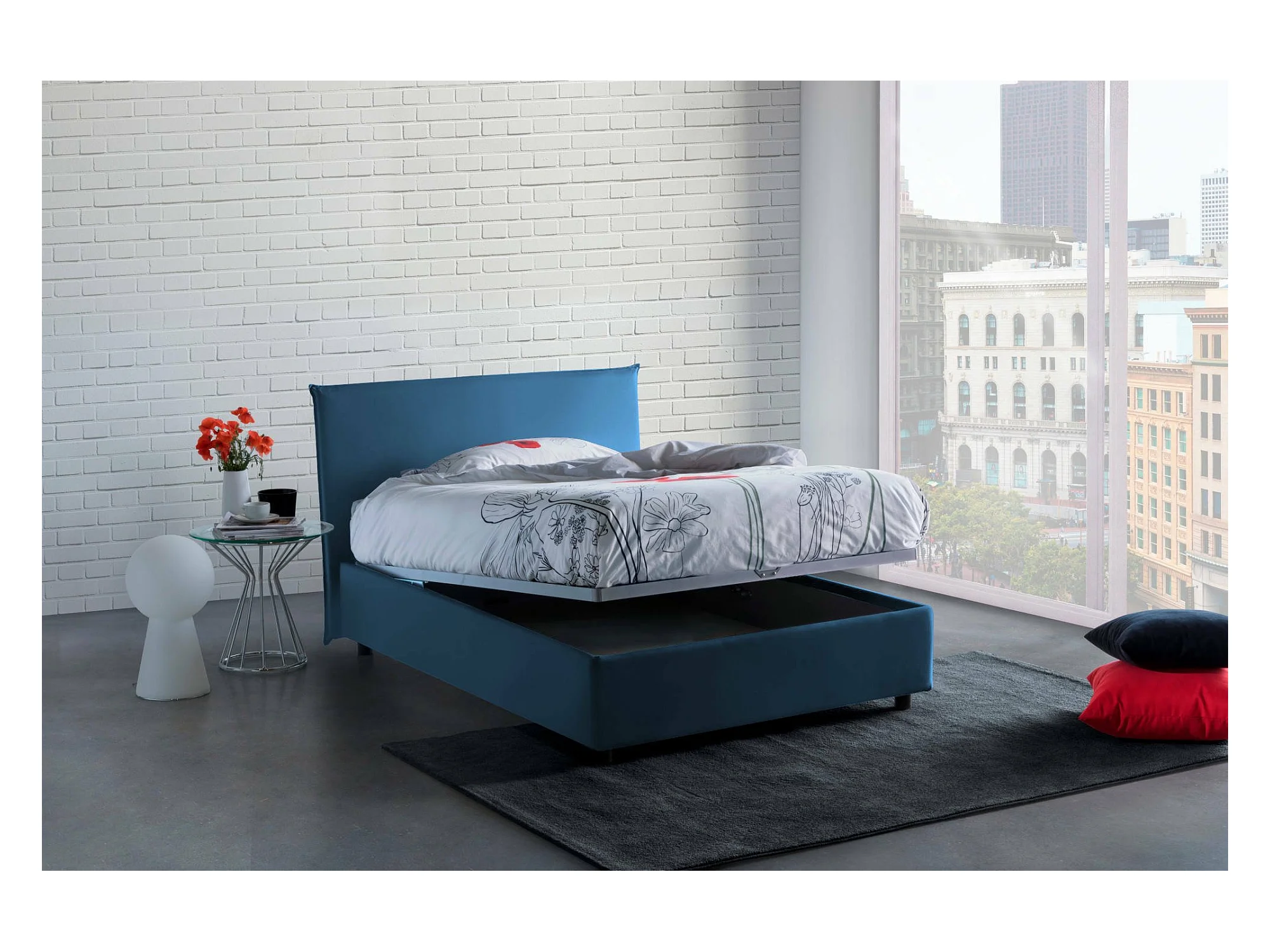 Chicca-Doppelbett, Bettkasten mit Stoffbezug, 100 % Made in Italy, Öffnung vorne, inklusive Matratze 120 x 200 cm, Blau