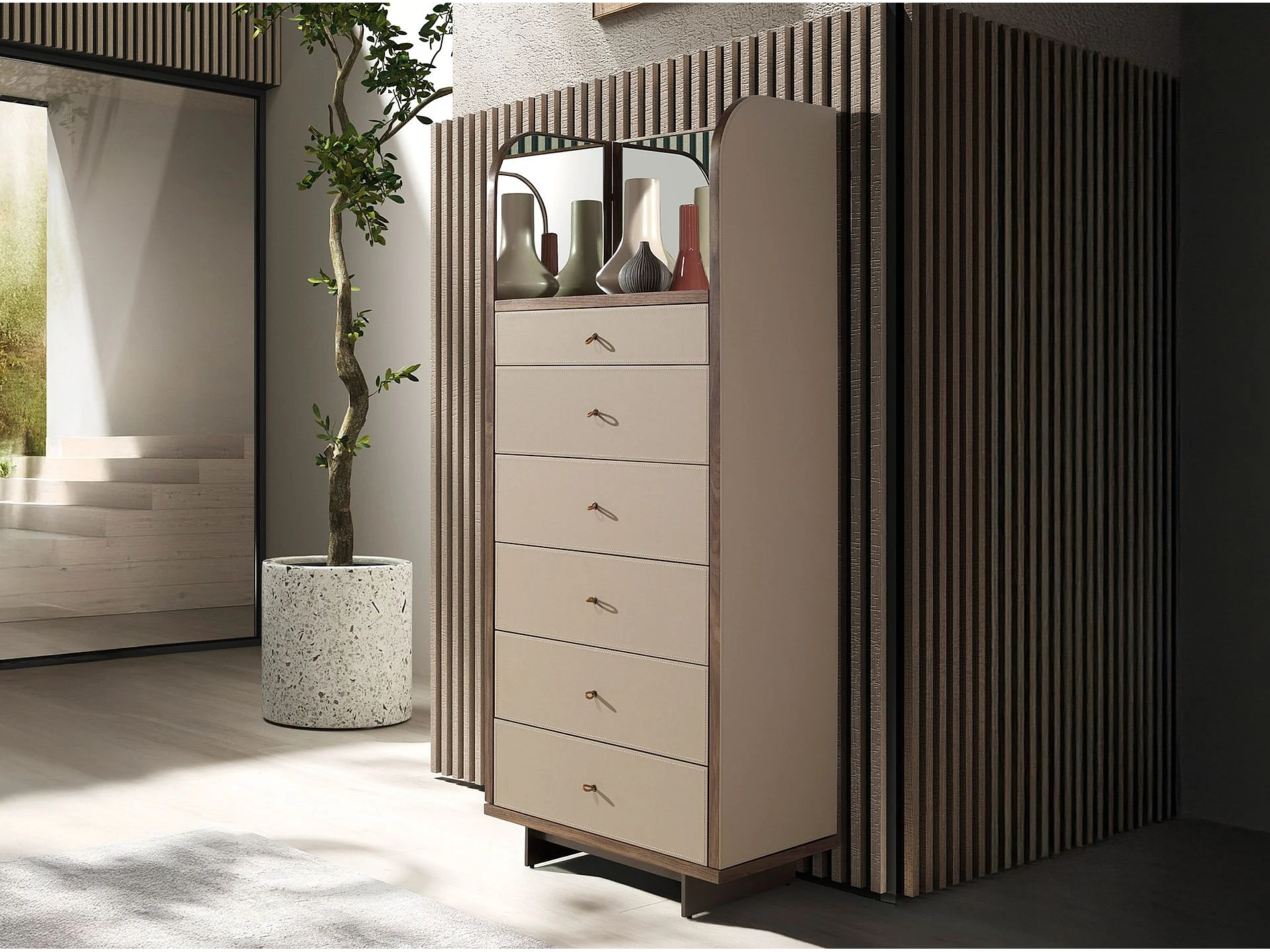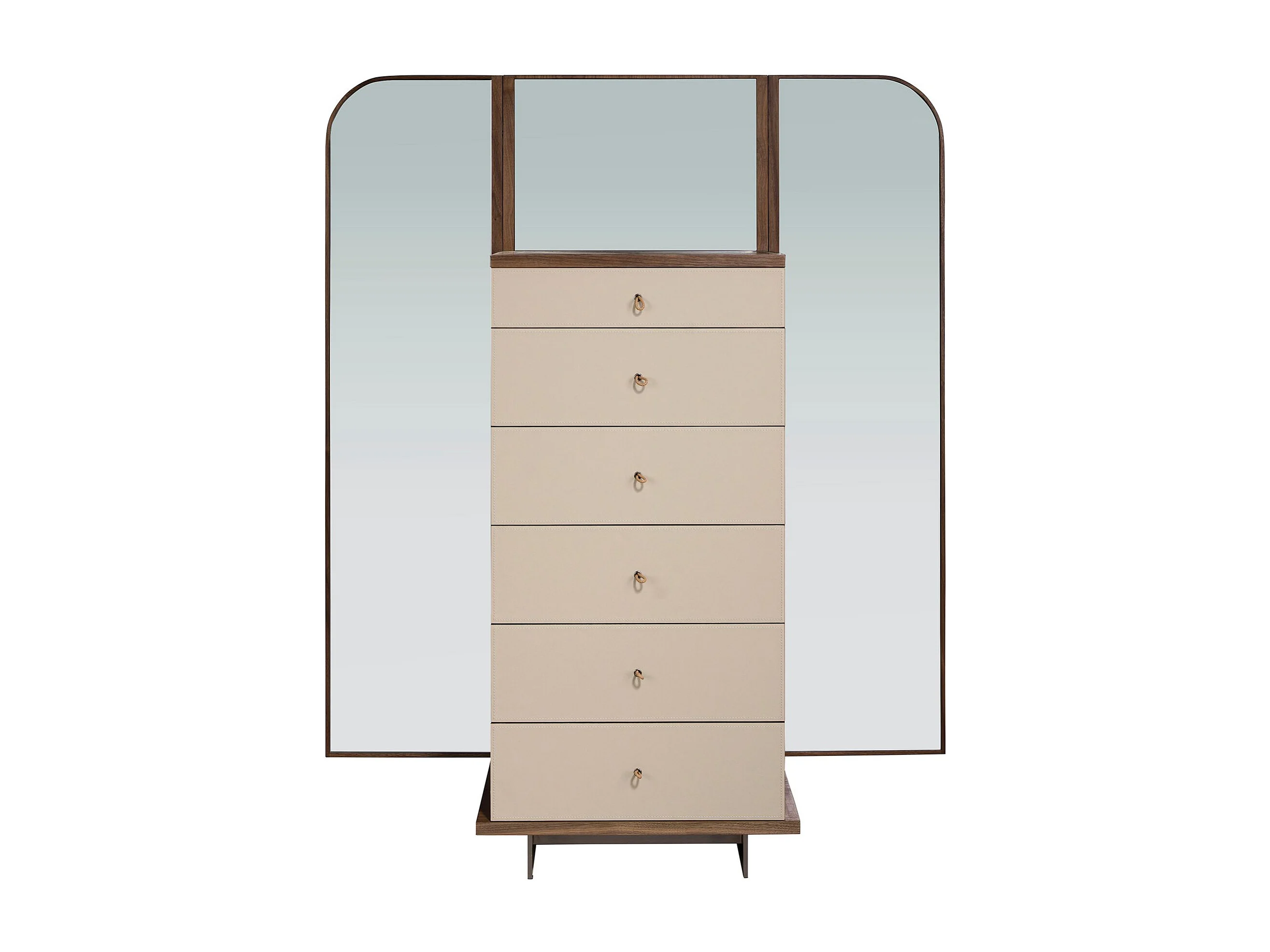 Kommode aus Kunstleder, Nussbaum und poliertem Stahl mit Spiegel 7206 ANGEL CERDA