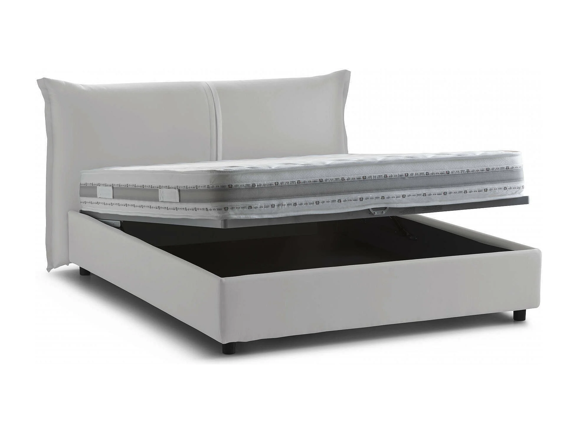 Cloide-Doppelbett, Bettkasten mit Stoffbezug, 100 % Made in Italy, Öffnung vorne, inklusive Matratze 160 x 200 cm, Weiß