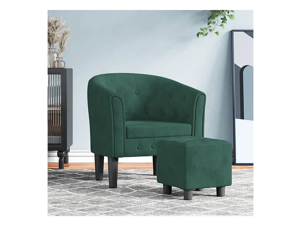 Clubsessel mit Fußhocker Dunkelgrün Samt