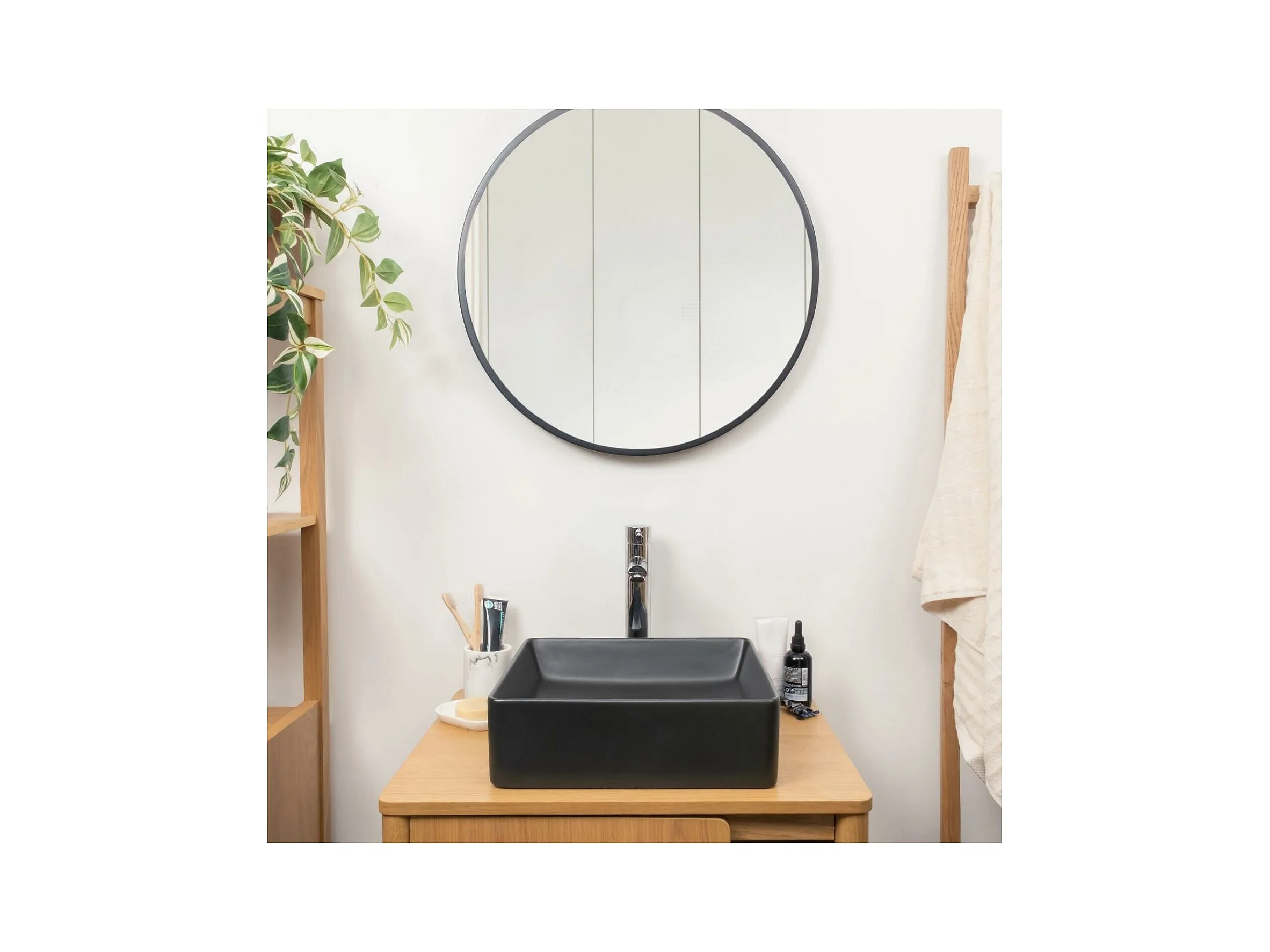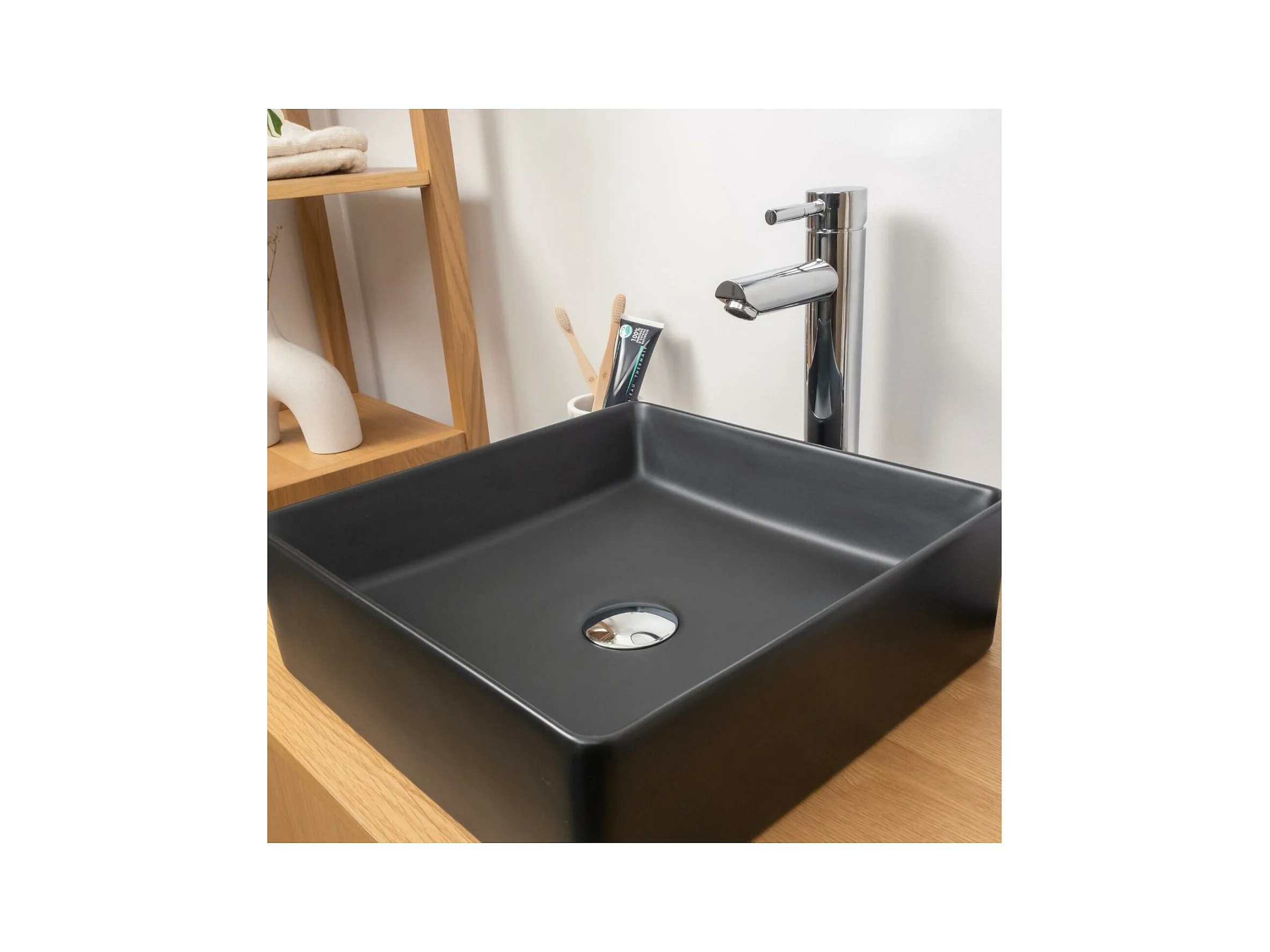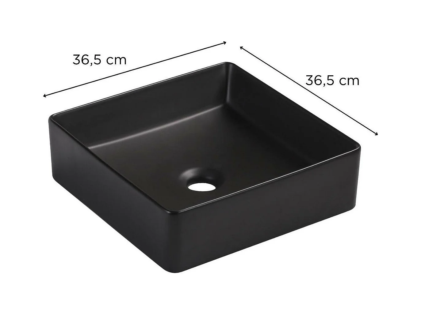 COMA 36,5 cm quadratisches Aufsatzwaschbecken aus schwarzer Keramik