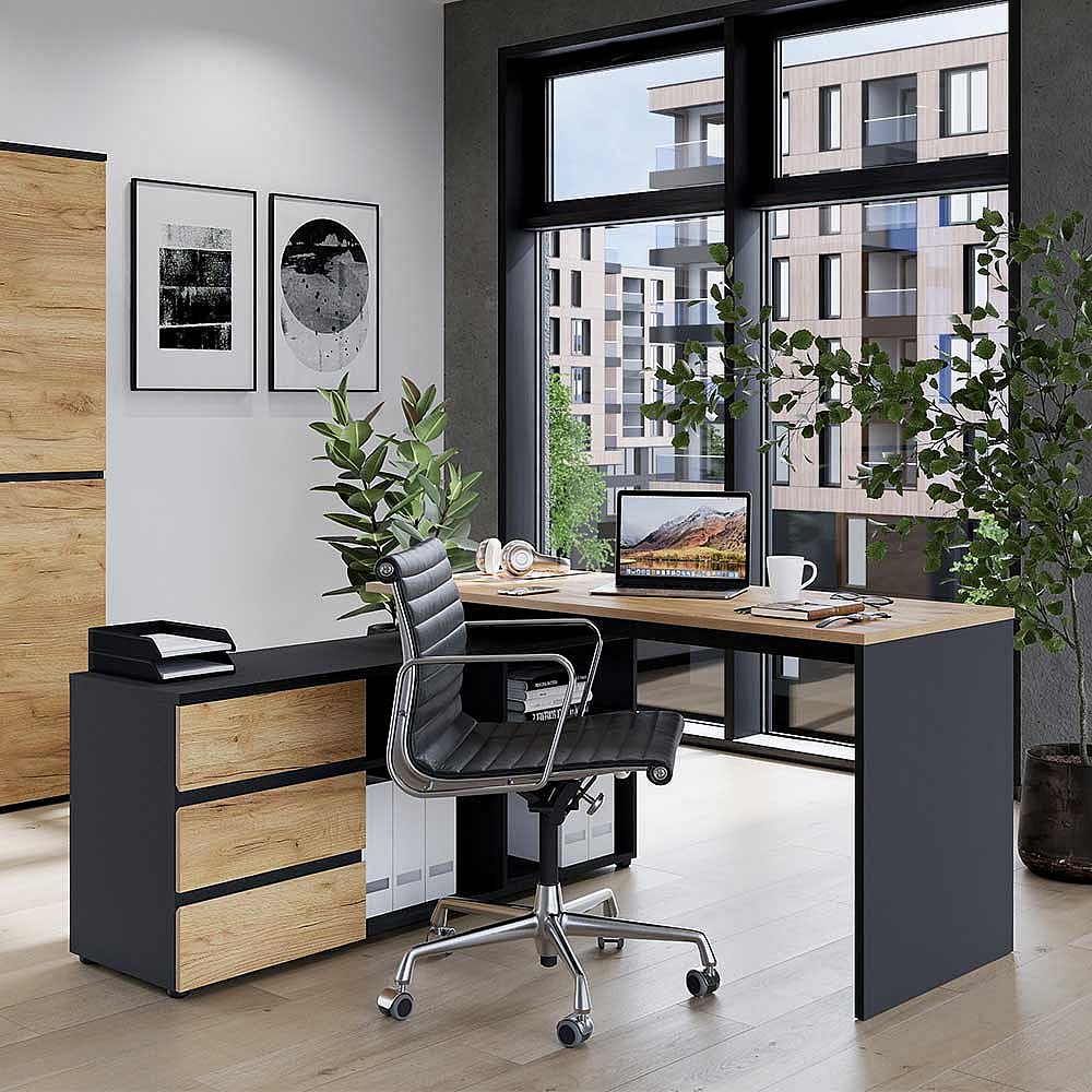 Computereckschreibtisch mit drei Schubladen 146 cm breit