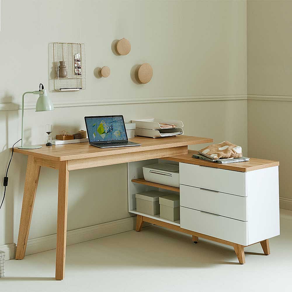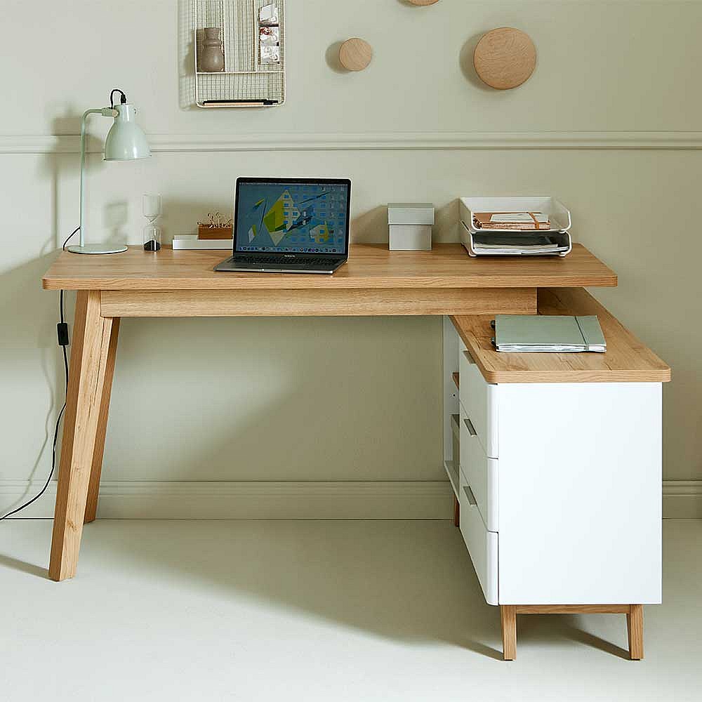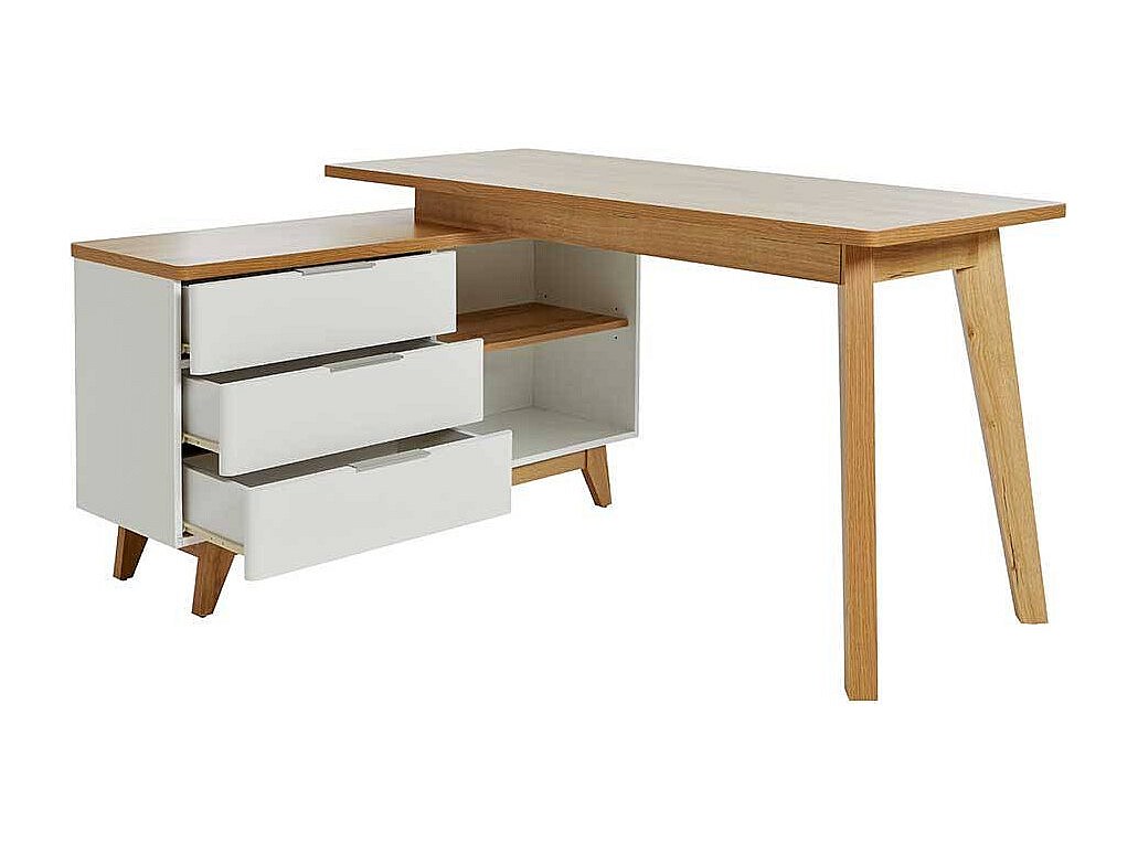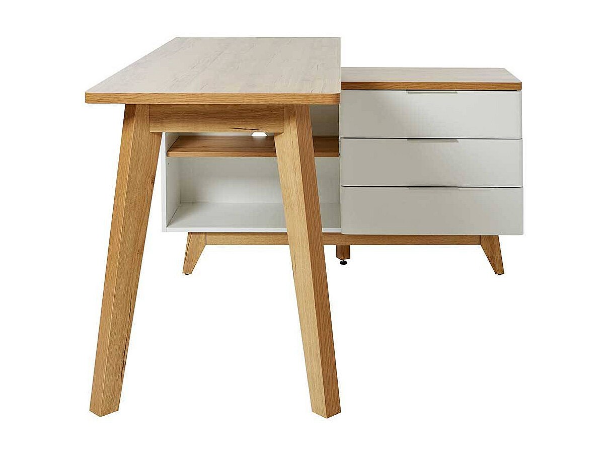 Computertisch Ecke Schreibtisch in Weiß und Kerneichefarben