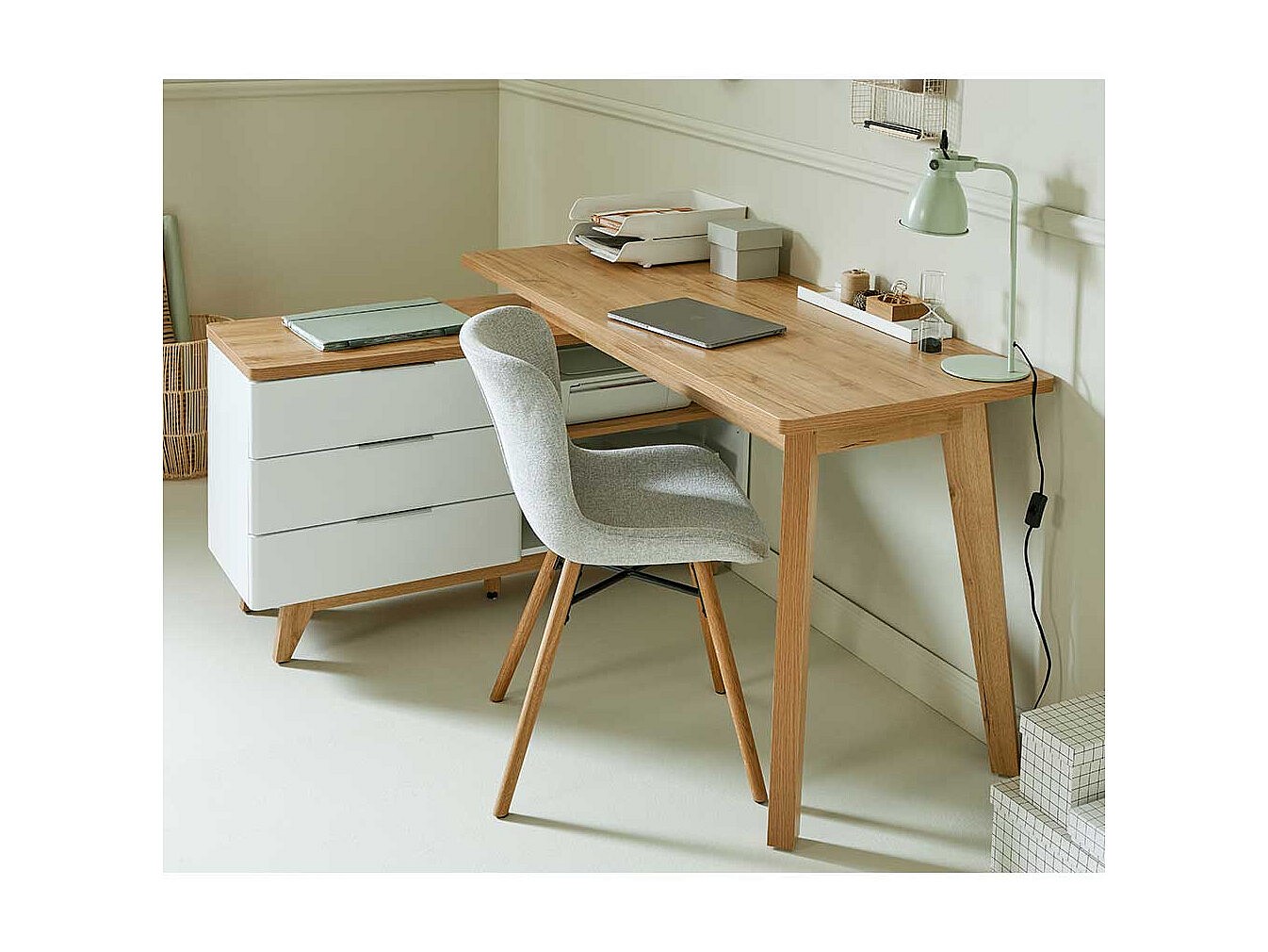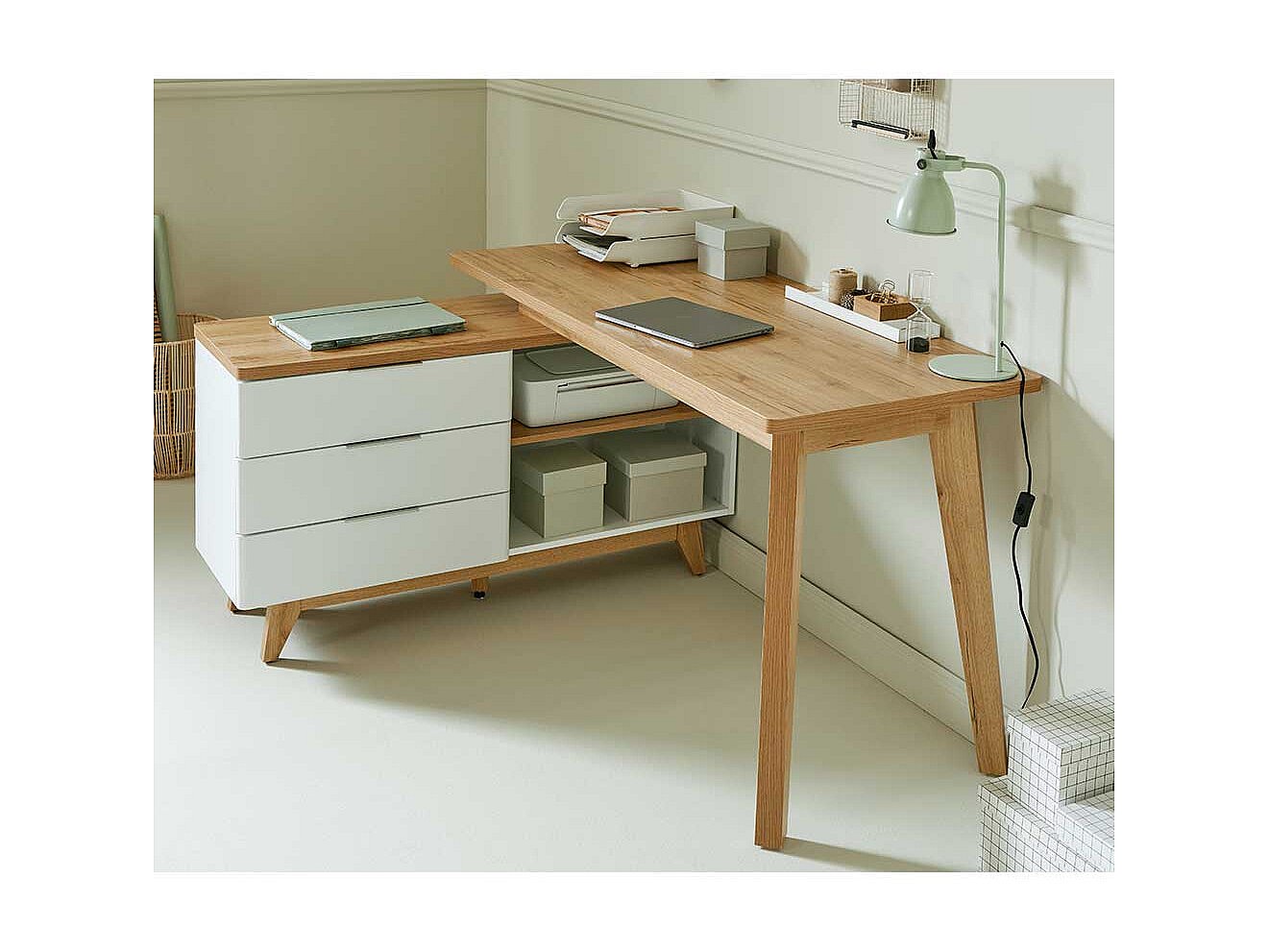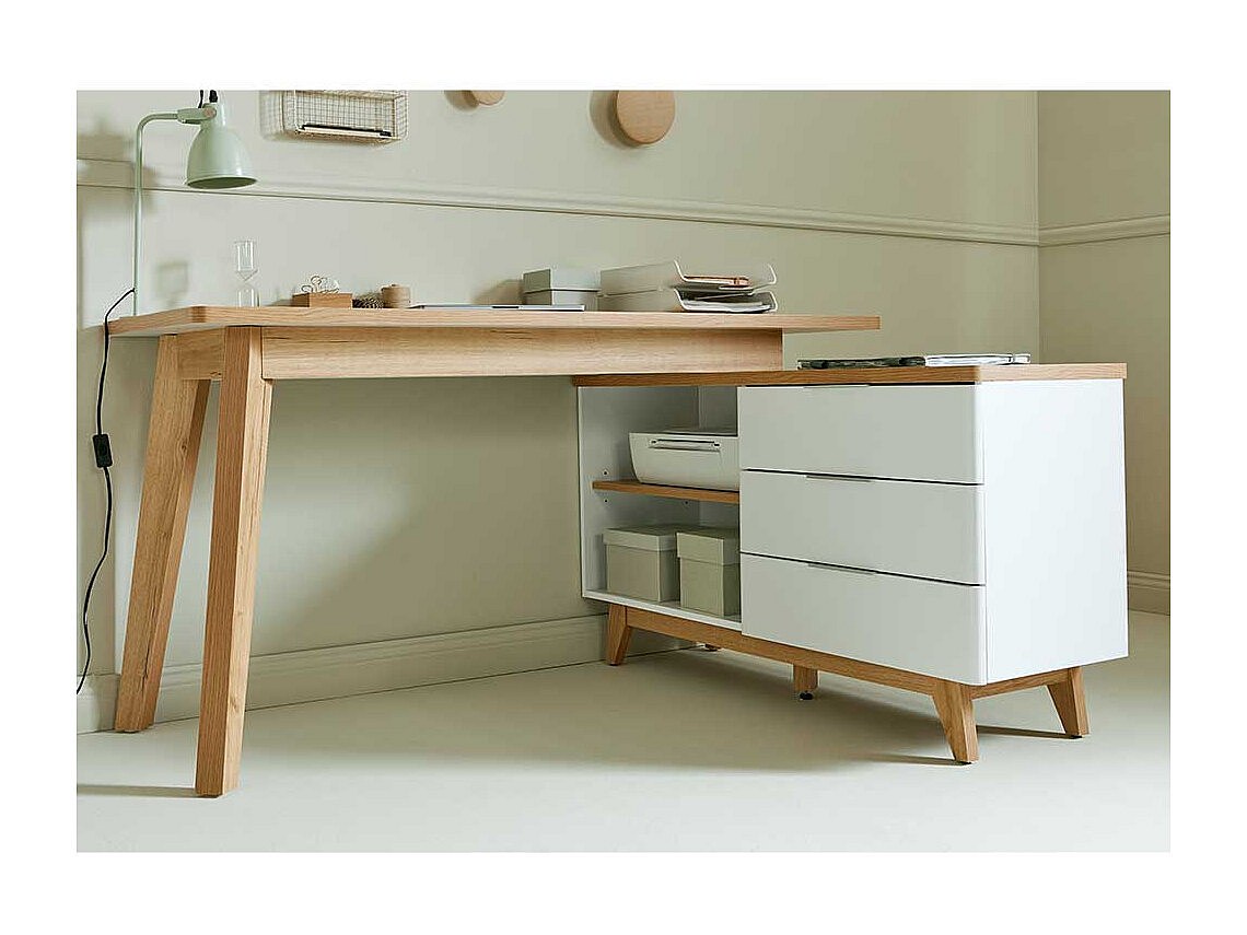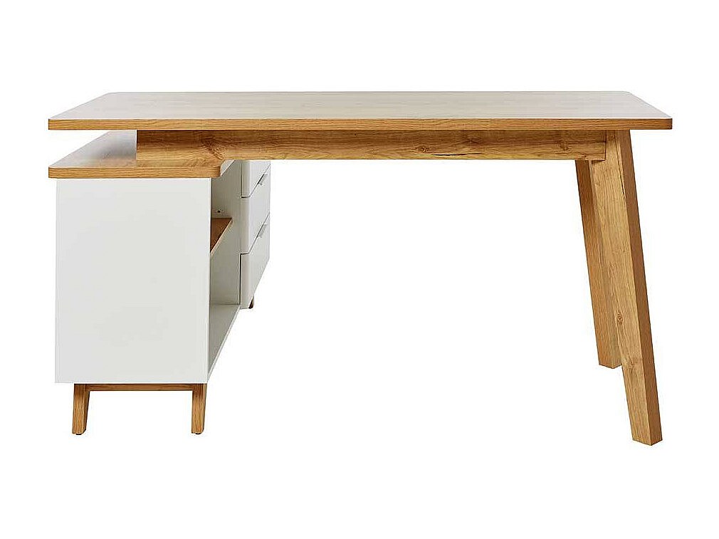 Computertisch Ecke Schreibtisch in Weiß und Kerneichefarben