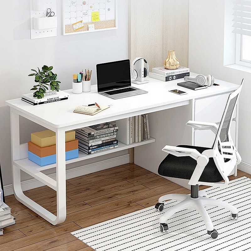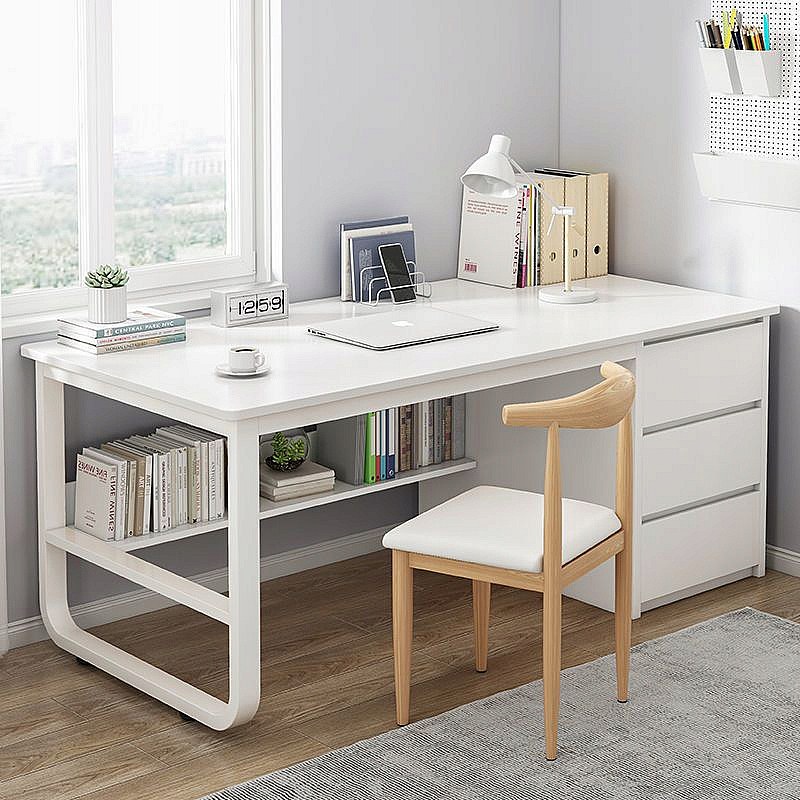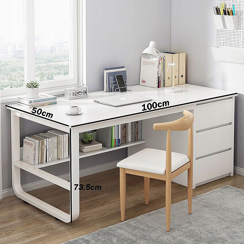 COMPUTERTISCH FÜR JUGENDLICHE, WEISS, SKANDINAVISCHER LOFT STIL, GROSSE REGALE, 100 CM