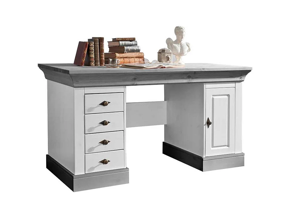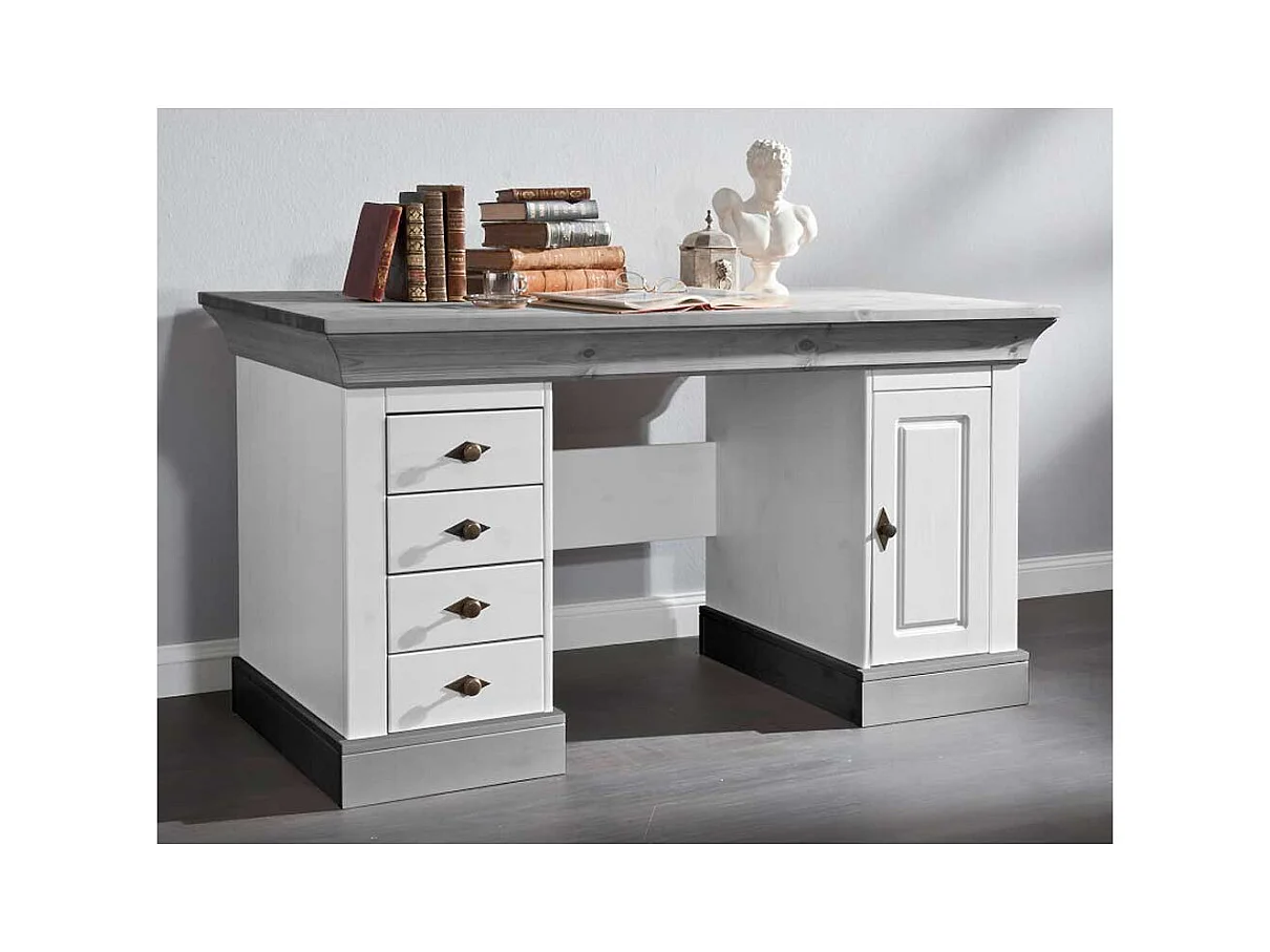 Computertisch in Weiß Grau Kiefer teilmassiv