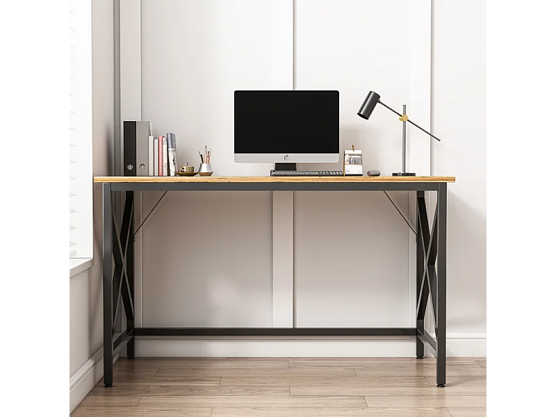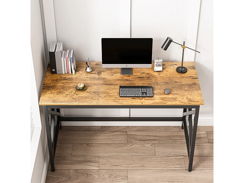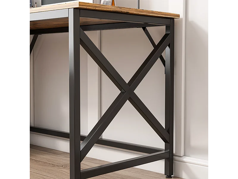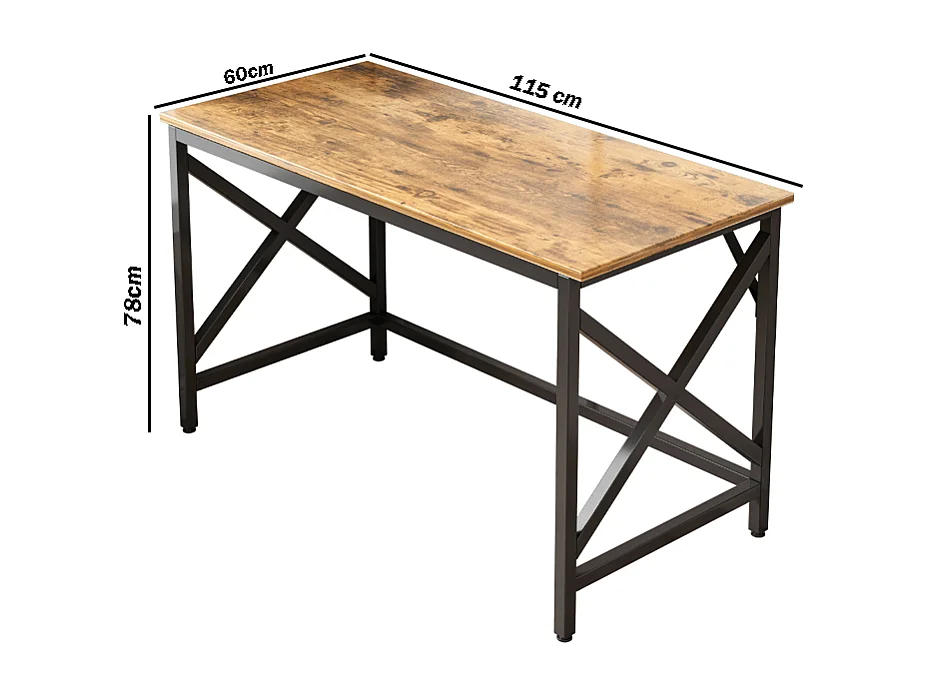 COMPUTERTISCH INDUSTRIELLER TISCH RUSTIKAL BRAUN METALLRAHMEN