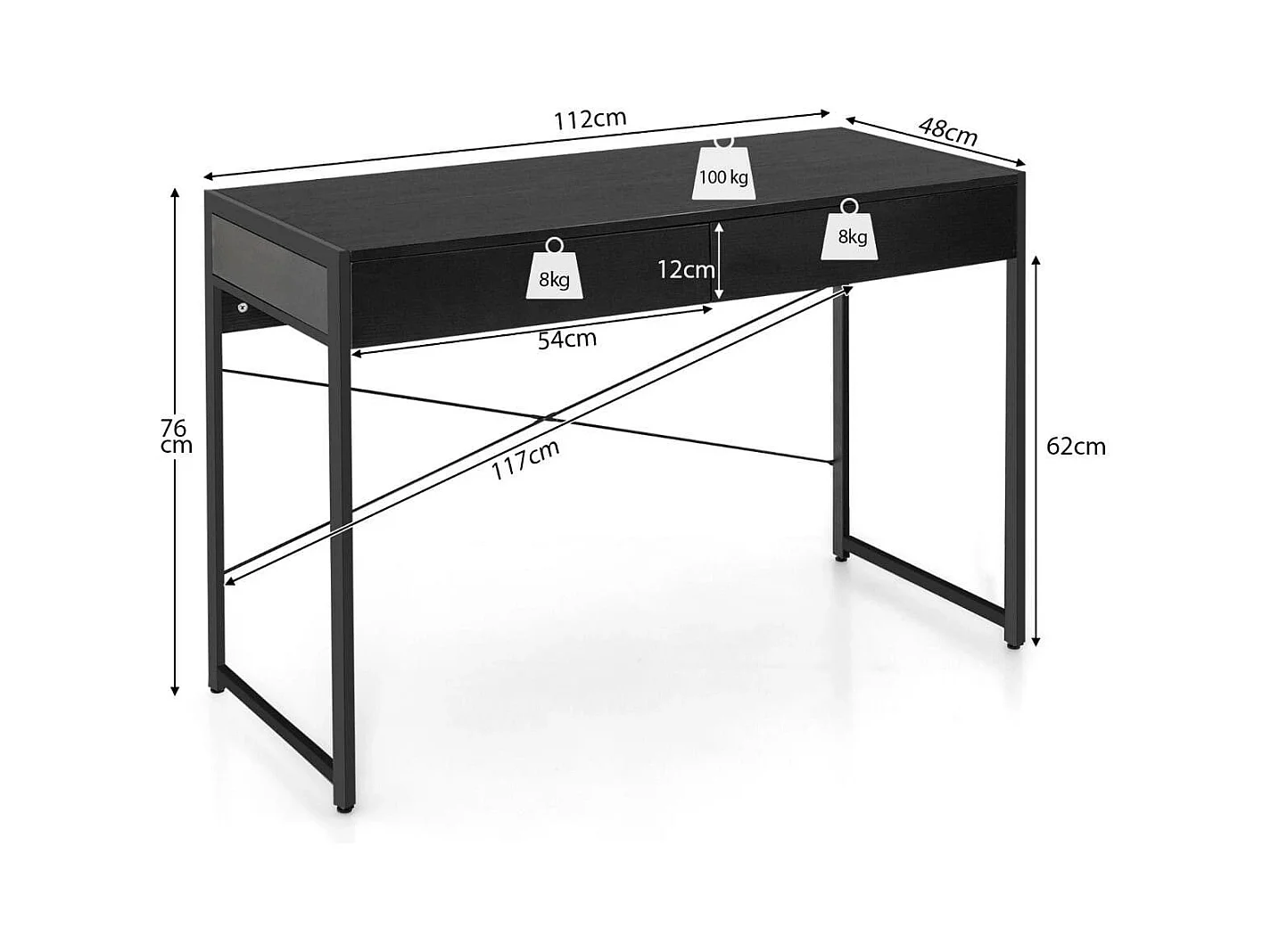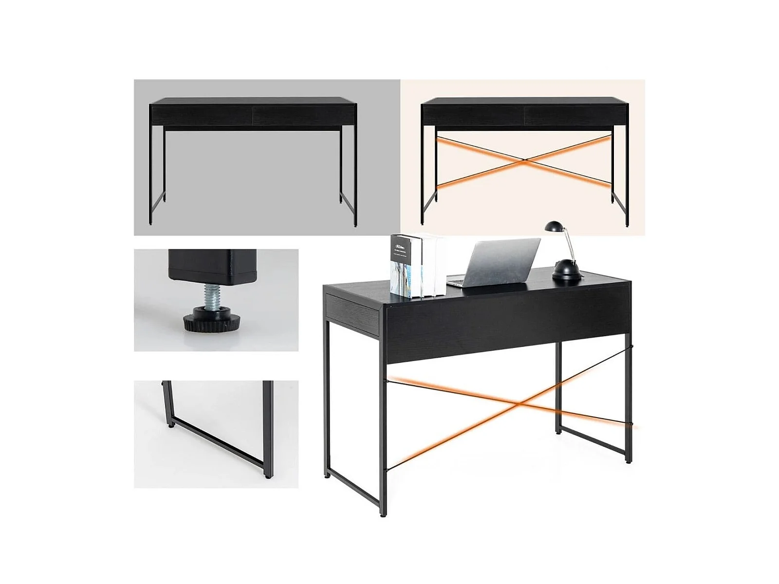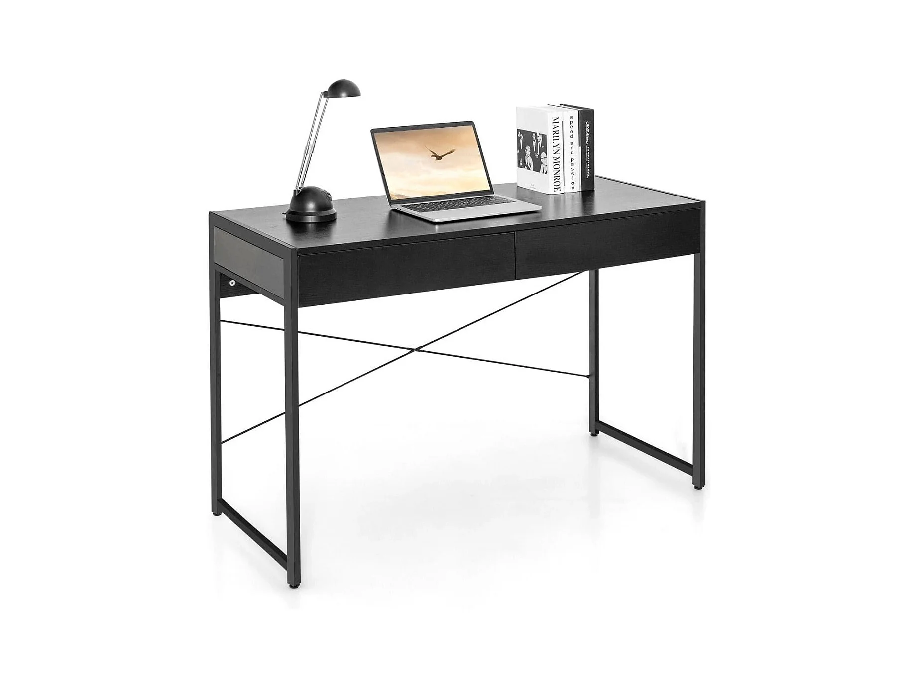 Schreibtisch Computertisch Bürotisch PC Tisch Arbeitstisch mit 2 Schubladen Schwarz