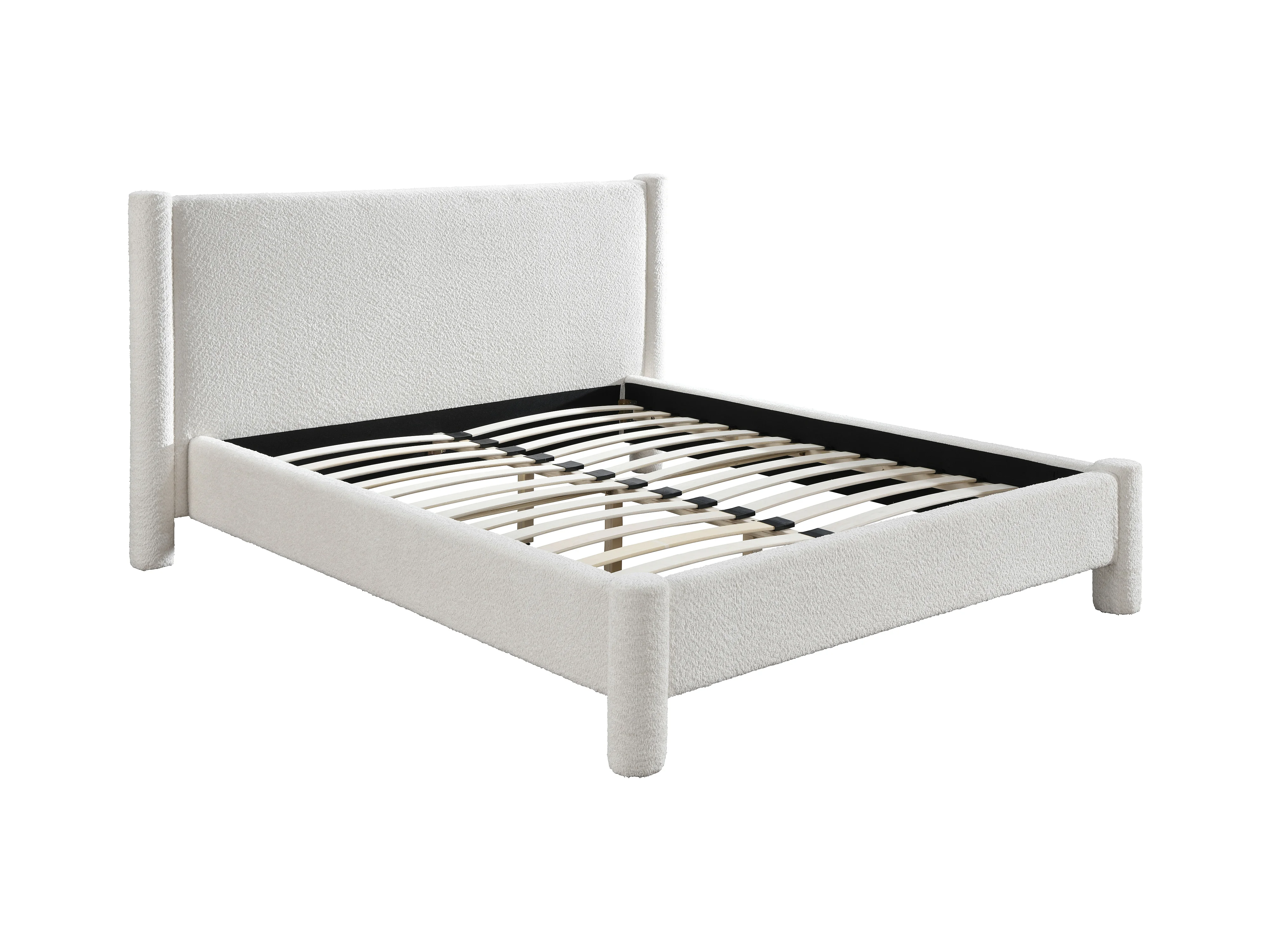 Bett - 160 x 200 cm - Bouclé-Stoff - Weiß - CONOMO