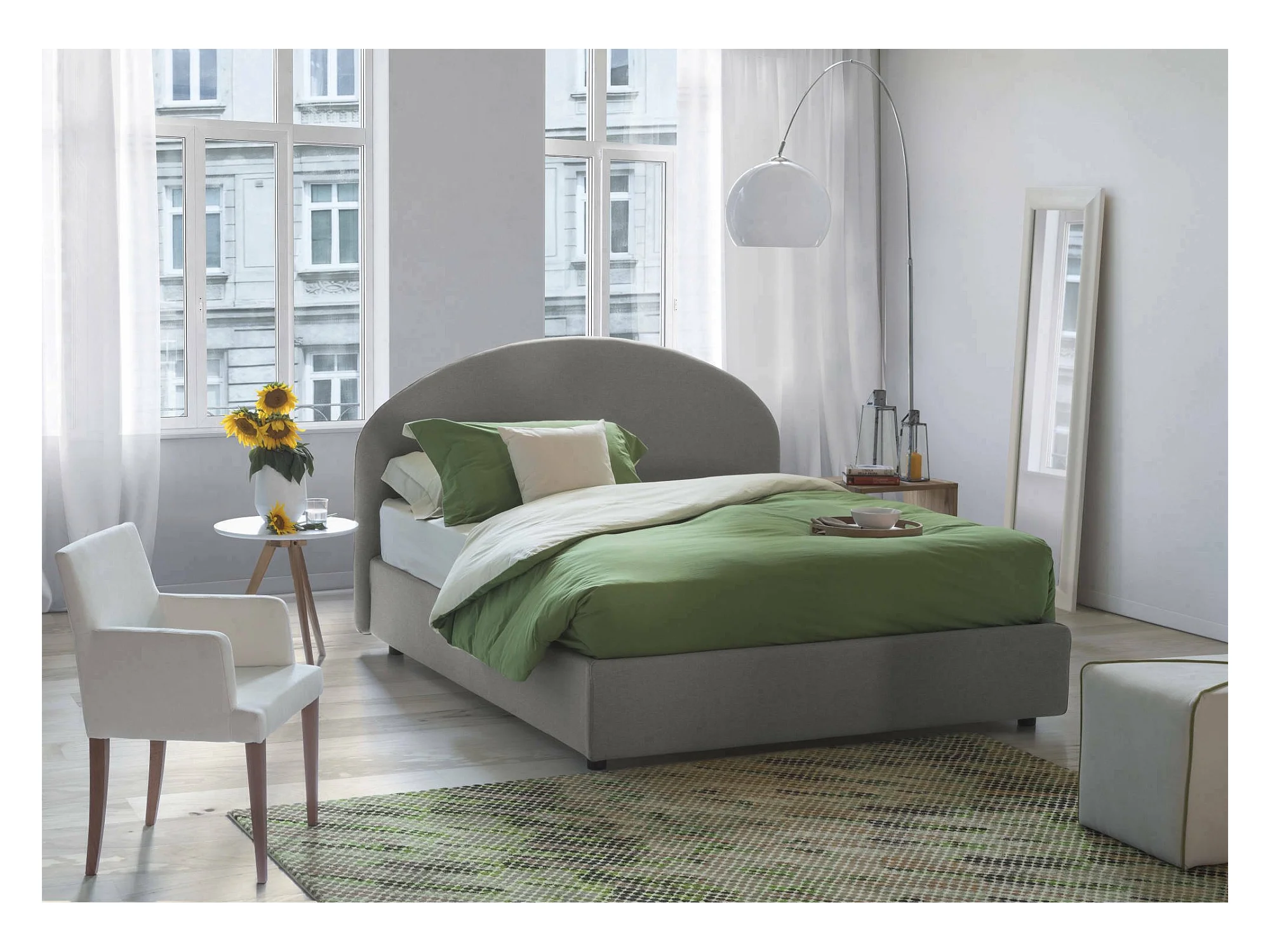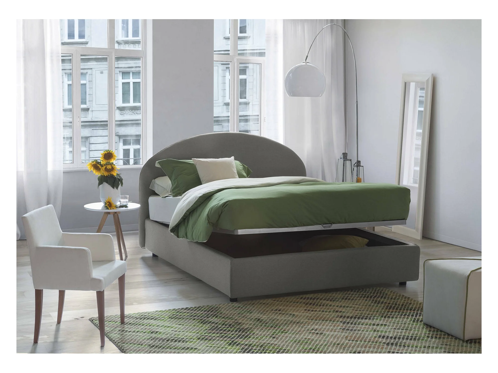 Cora Doppelbett, Bettkasten mit Stoffbezug, 100 % Made in Italy, Öffnung vorne, inklusive Matratze 160 x 190 cm, Grau