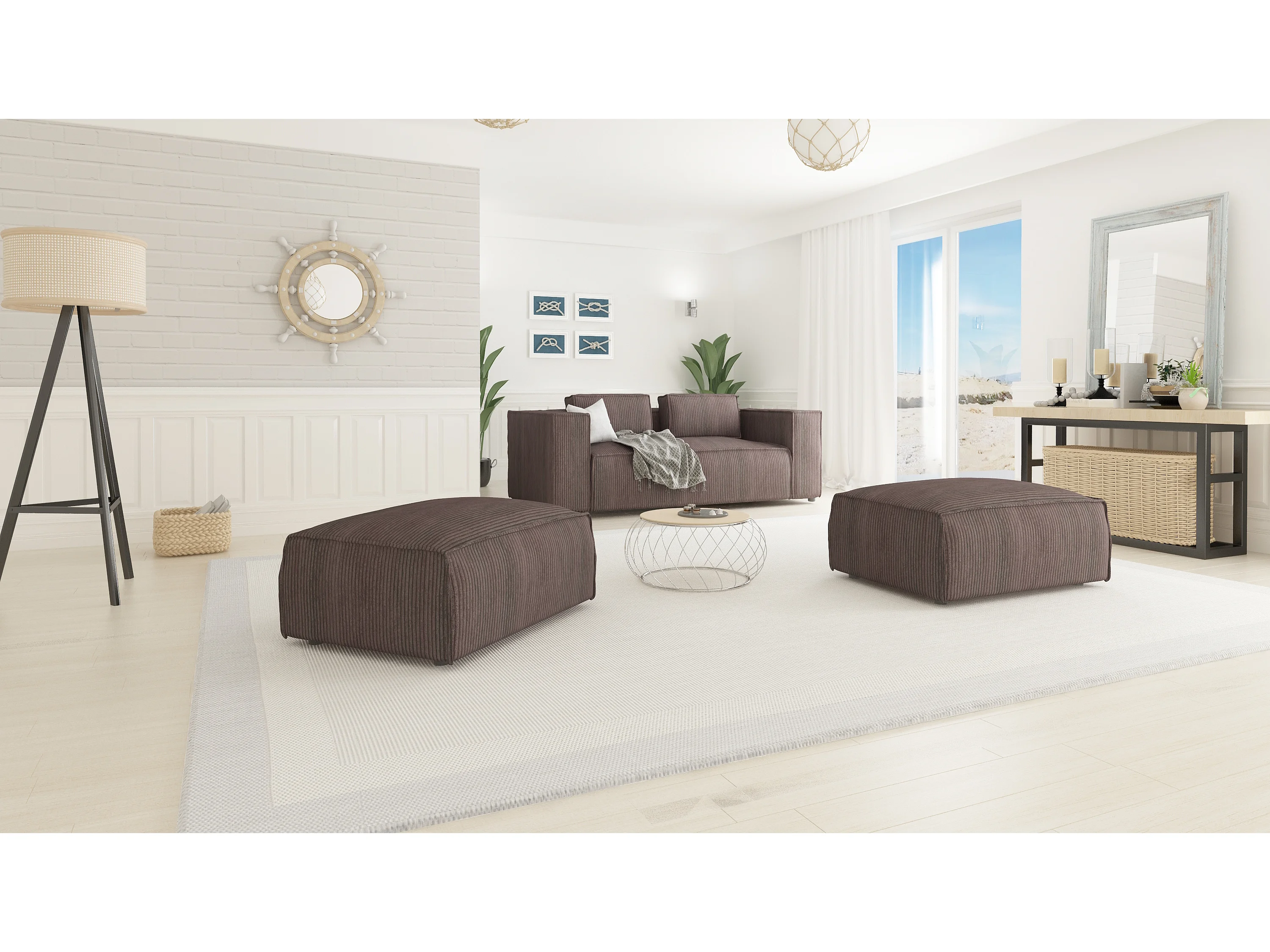 Moderner Fußhocker Vera aus Cord mit weichem Sitz